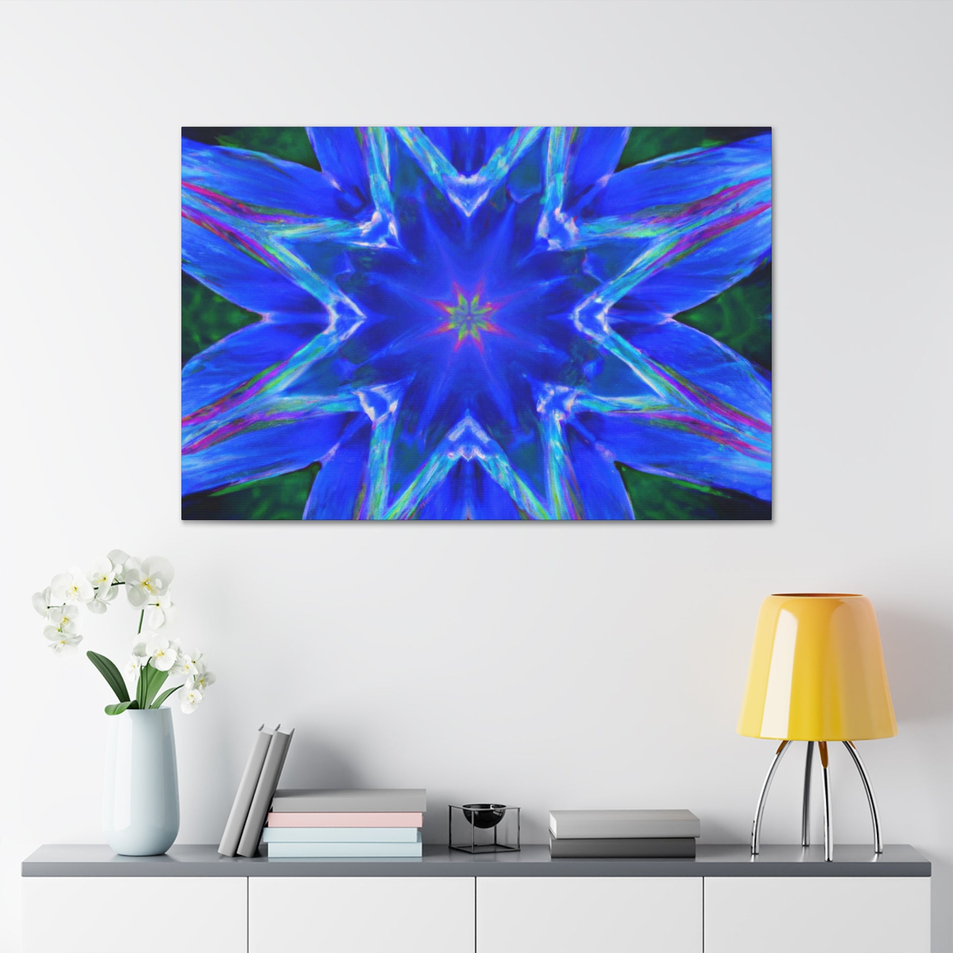 Meander through a cosmos of abstract wonders with this captivating canvas. Enjoy its psychedelic stars, kaleidoscope patterns, and vibrant digital art in HD. Its symmetrical design and vibrant colors will add a sparkle of wonder to your home decor. #trippystars #kaleidoscope #abstractart #digitalart #vibrantcolors #HD #symmetrical #wallart #canvasdecor #abstractdecor #visualheaven