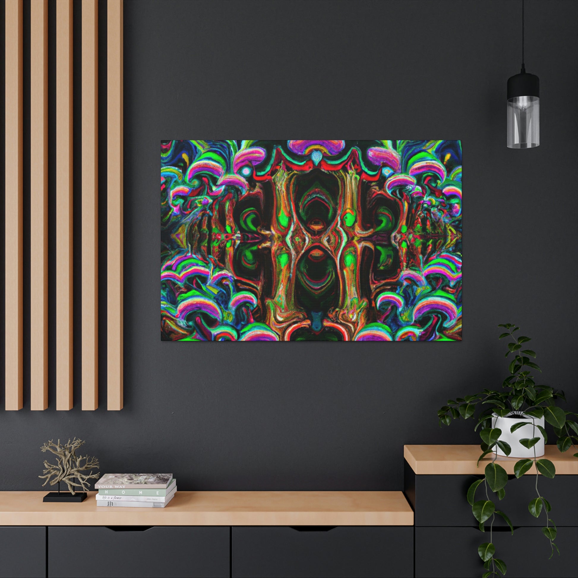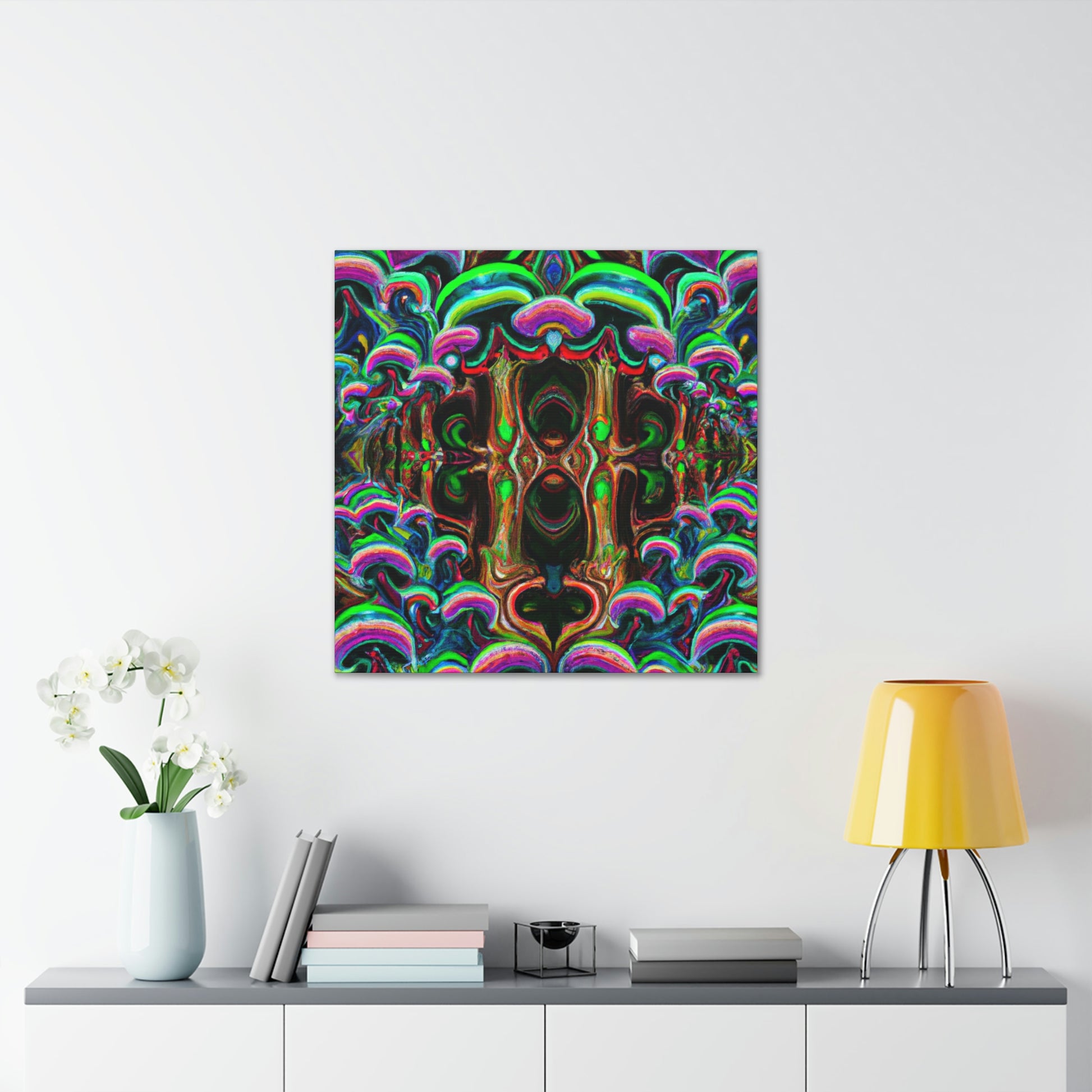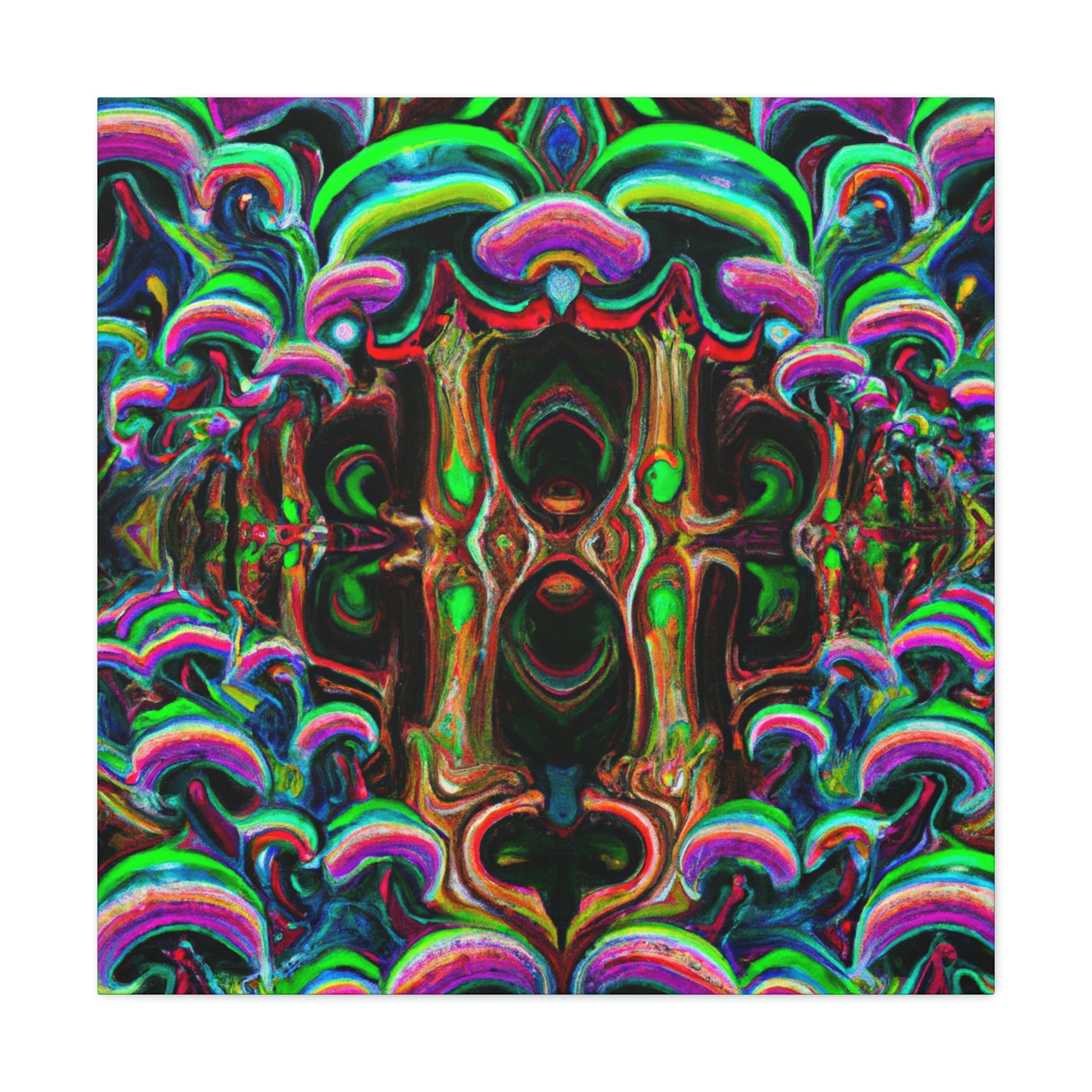 This canvas of trippy mushrooms, kaleidoscope, abstract, digital art, and vibrant colors will enhance any space. The intricate design of 3D lines gives extra depth to the artwork and creates a unique bedroom or living room statement piece. Who doesn't love a psychedelic display of rainbow colors? Experience an explosion of creativity with this amazing digital art. #3DArt #TrippyMushrooms #KaleidoscopeArt #DigitalArt #AbstractArt #VibrantColors #AbstractDigitalArt #Kaleidoscope #PsychedelicArt #3DLines #RainbowColors