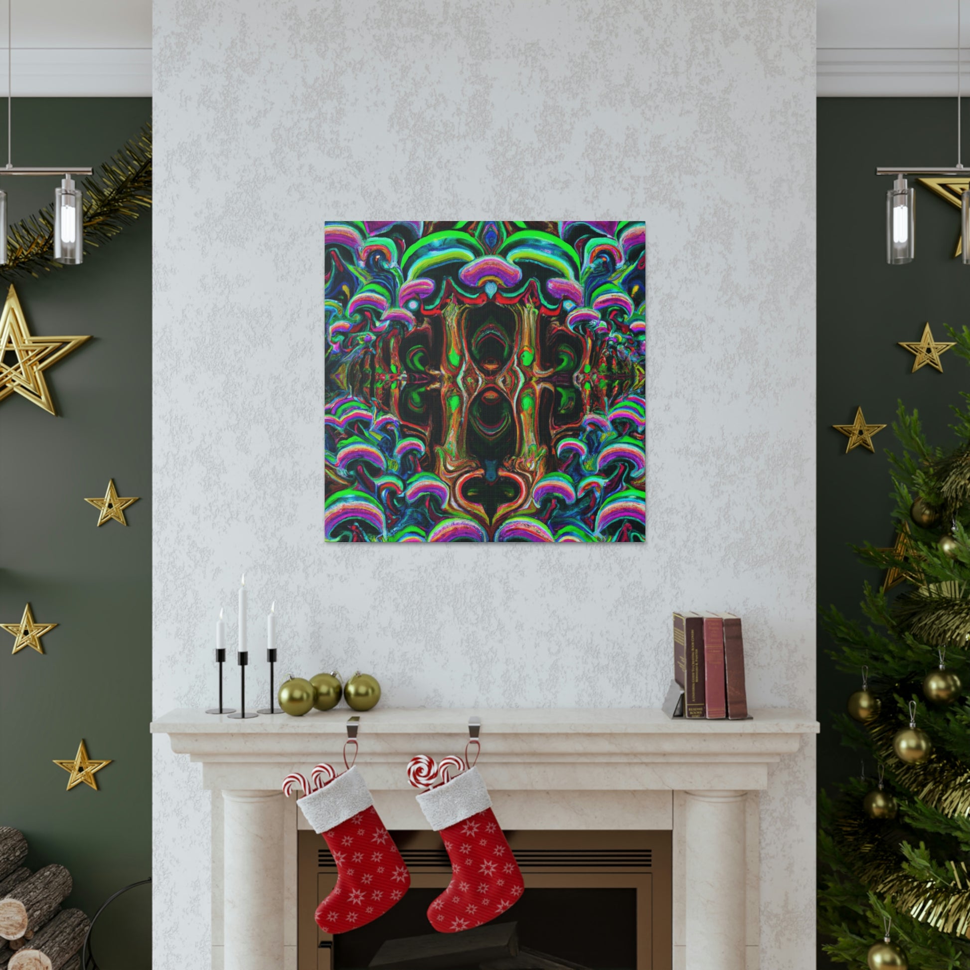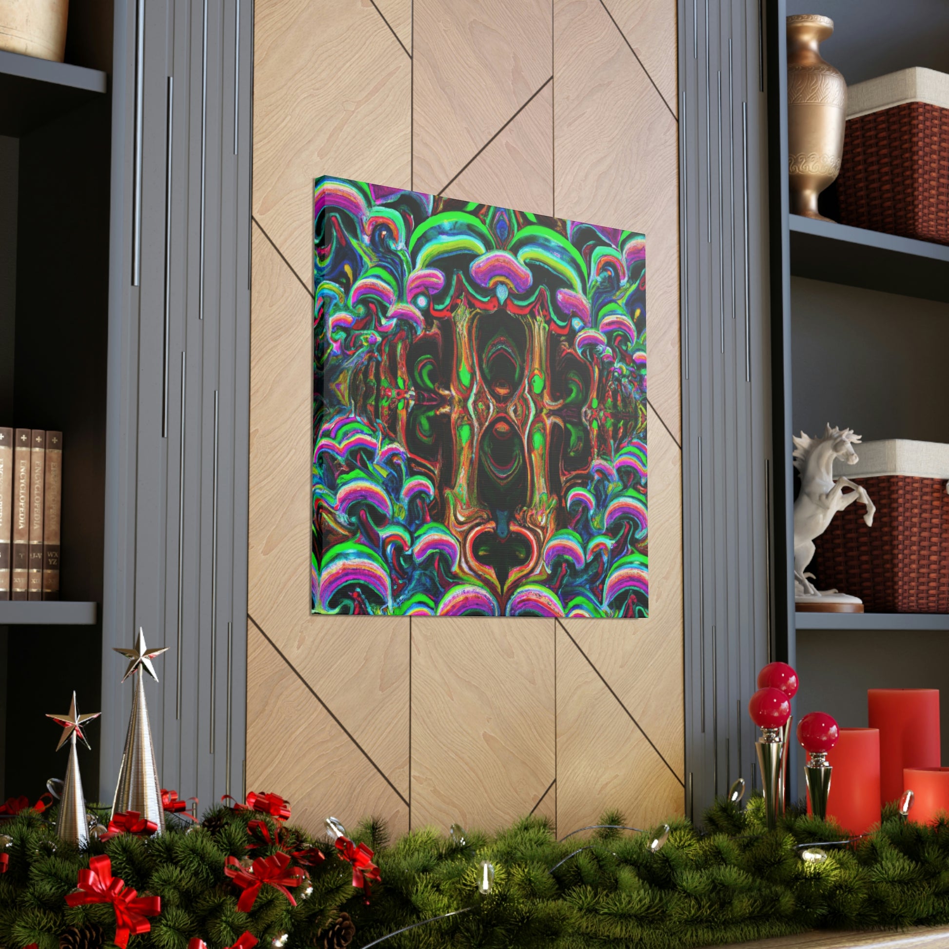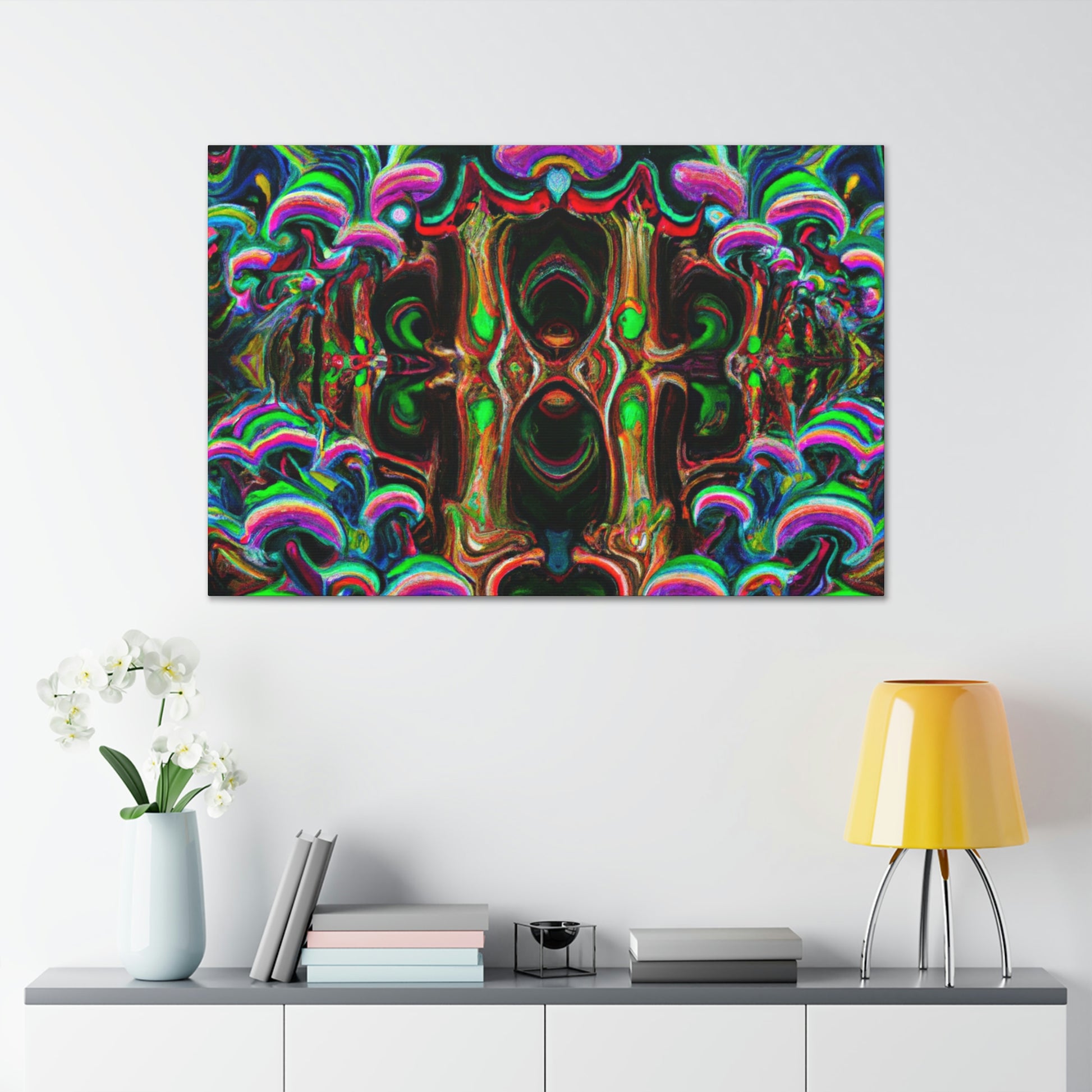 This canvas of trippy mushrooms, kaleidoscope, abstract, digital art, and vibrant colors will enhance any space. The intricate design of 3D lines gives extra depth to the artwork and creates a unique bedroom or living room statement piece. Who doesn't love a psychedelic display of rainbow colors? Experience an explosion of creativity with this amazing digital art. #3DArt #TrippyMushrooms #KaleidoscopeArt #DigitalArt #AbstractArt #VibrantColors #AbstractDigitalArt #Kaleidoscope #PsychedelicArt #3DLines #RainbowColors