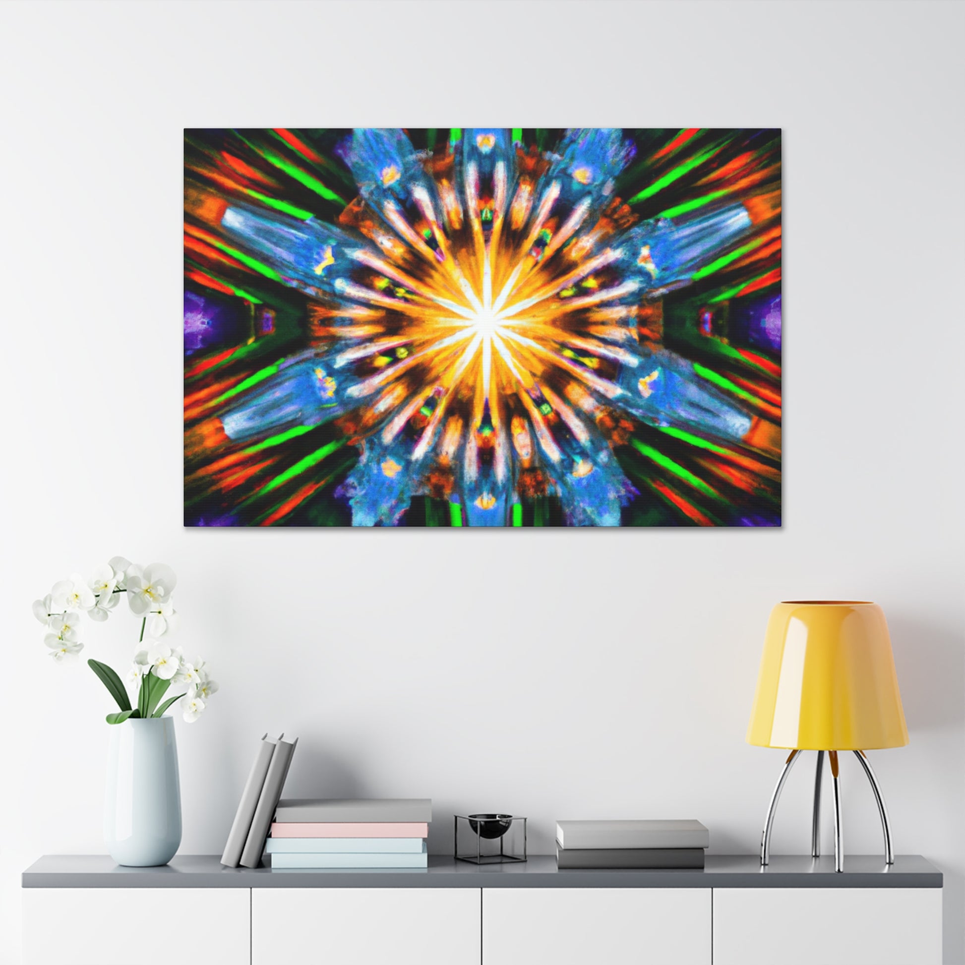 This vibrant abstract canvas will transport you into a symphony of colors. Rich HD digital art features a trippy stars kaleidoscope that is both symmetrical and mesmerizing. The sharp colors and tones are sure to be a striking addition to any room in your home. #abstractart #trippydigitalart #vibrantcanvas #hdcanvas #kaleidoscopeart #starscanvas #symmetricalart #modernart #artdeco #abstractdecor #homeart