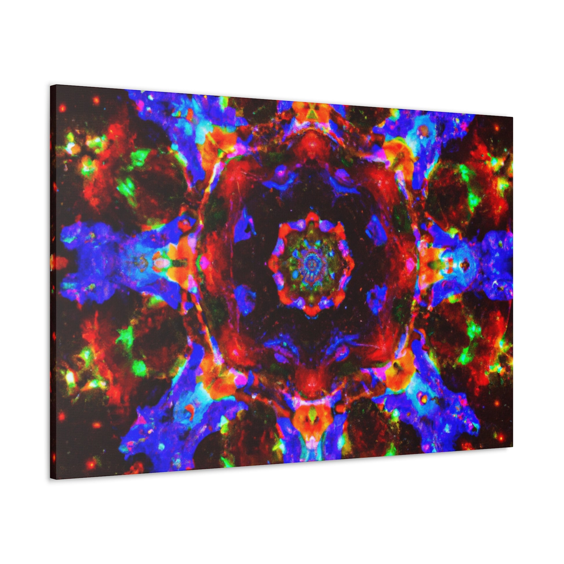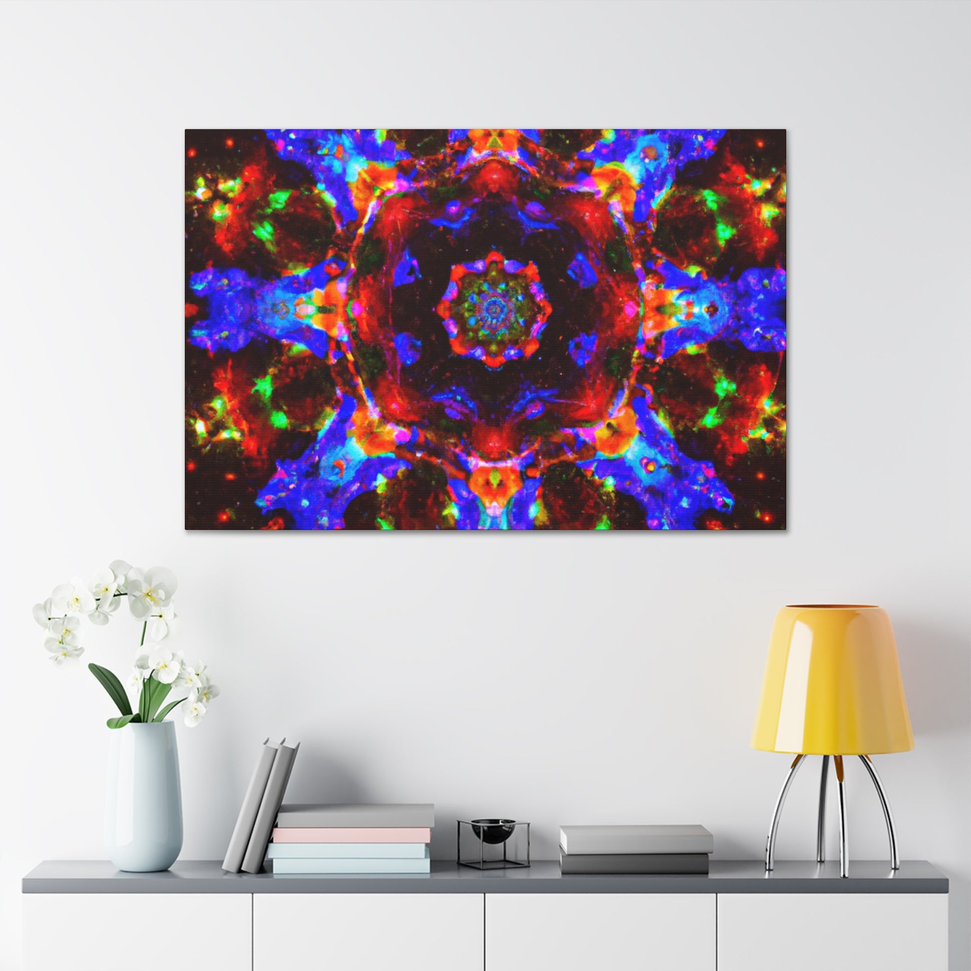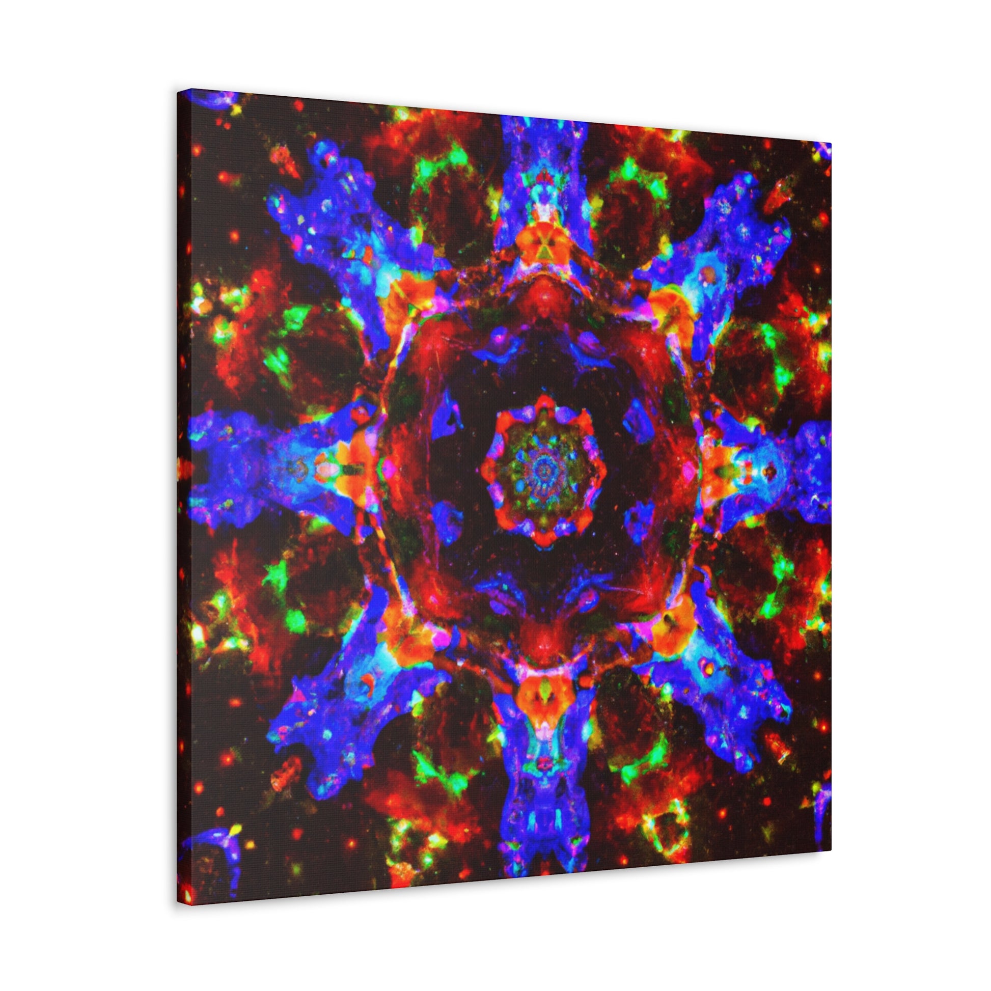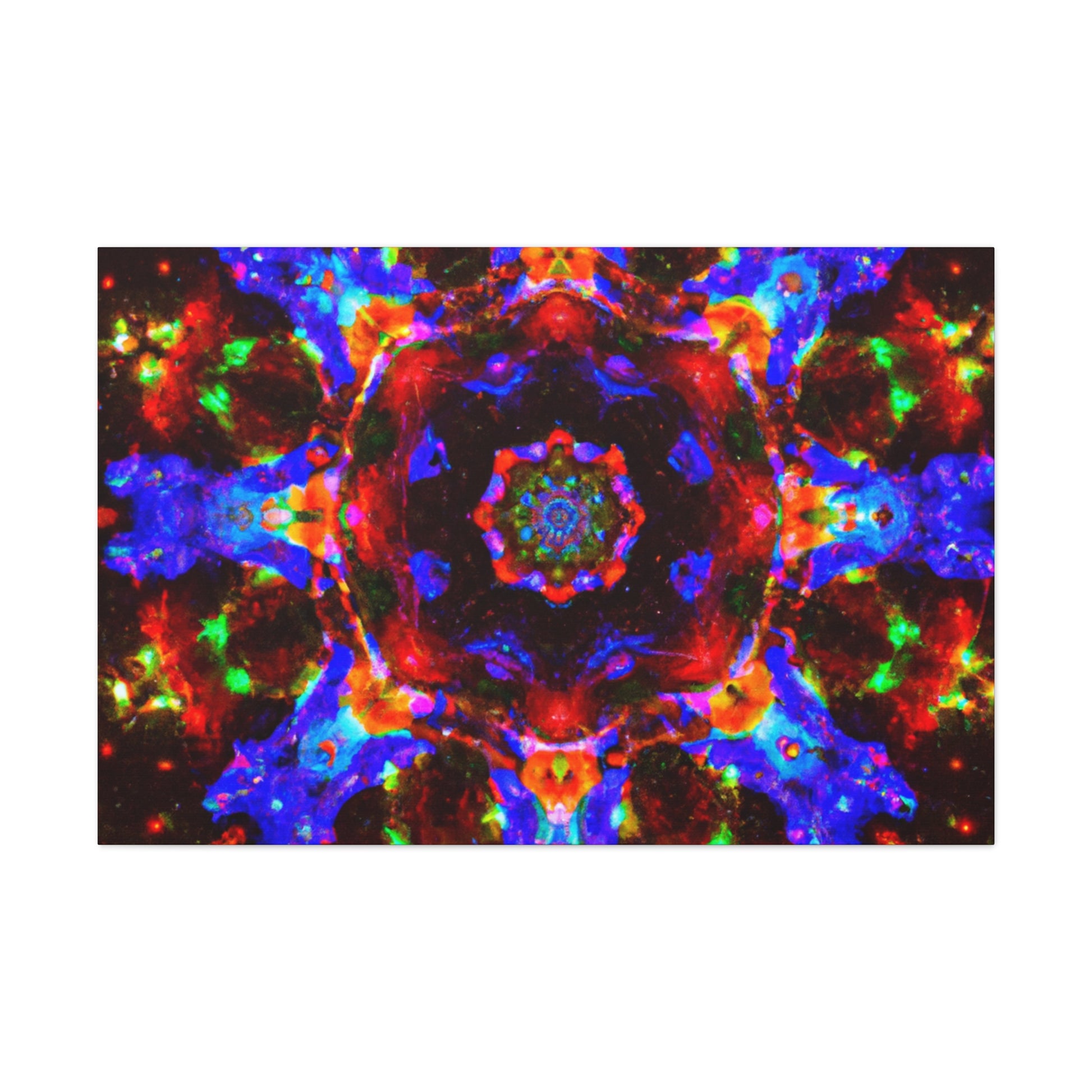 This beautiful digital abstract art piece will be the perfect eye-catching addition to your home. Featuring vivid, bright colors, an array of kaleidoscope stars, and a symmetrical pattern, this HD canvas will bring a unique trippy energy to your space. Hang it up and enjoy its beauty! #canvas #art #abstract #digital #trippy #kaleidoscope #stars #symmetrical #vivid #bright #HD