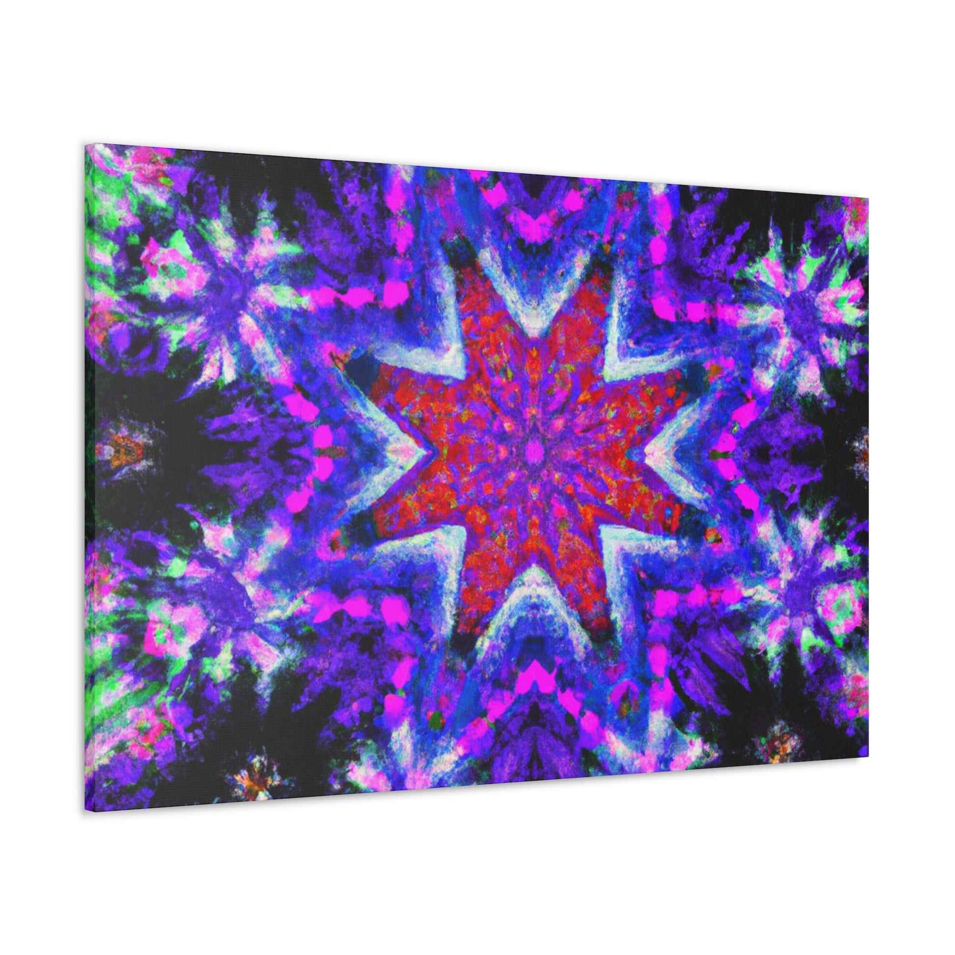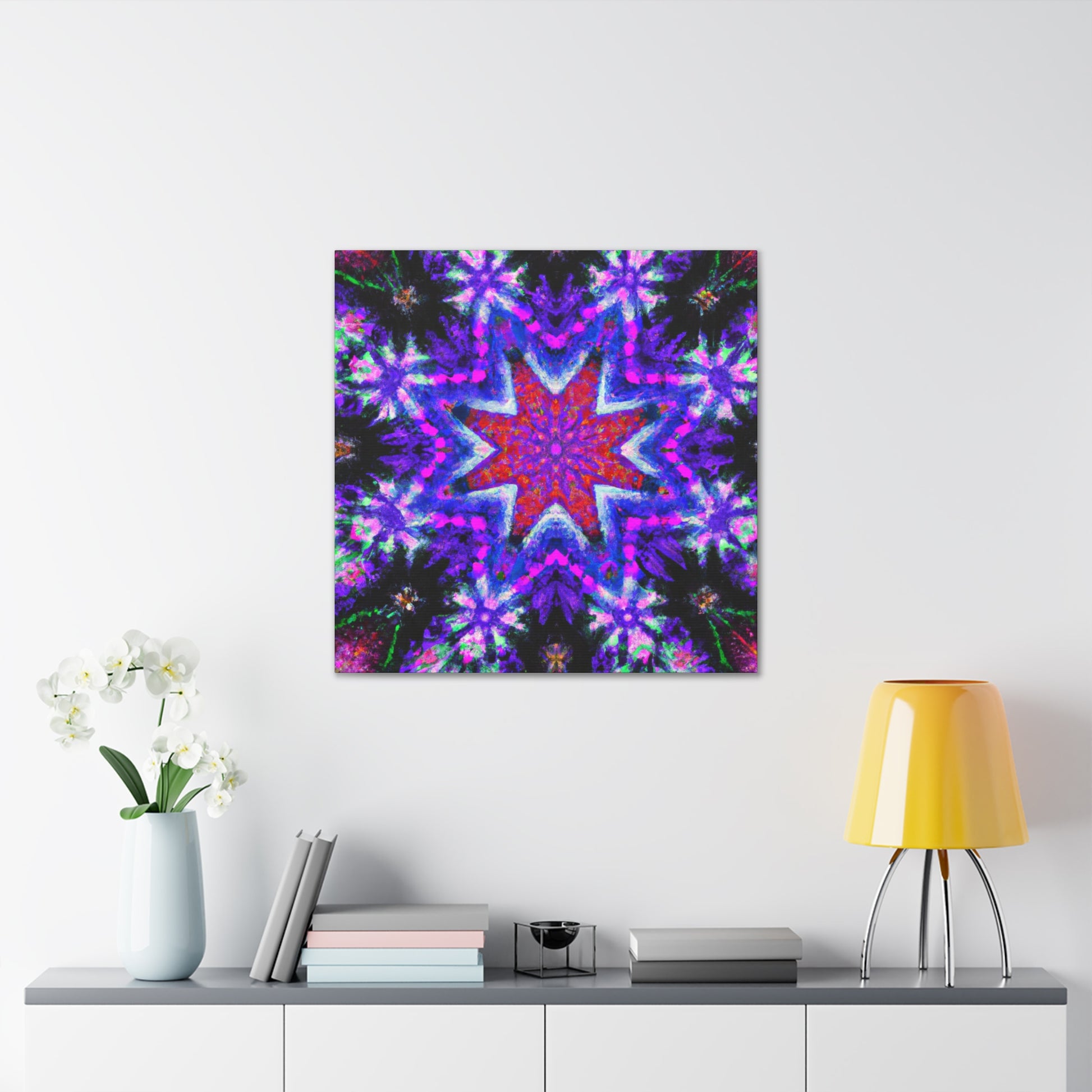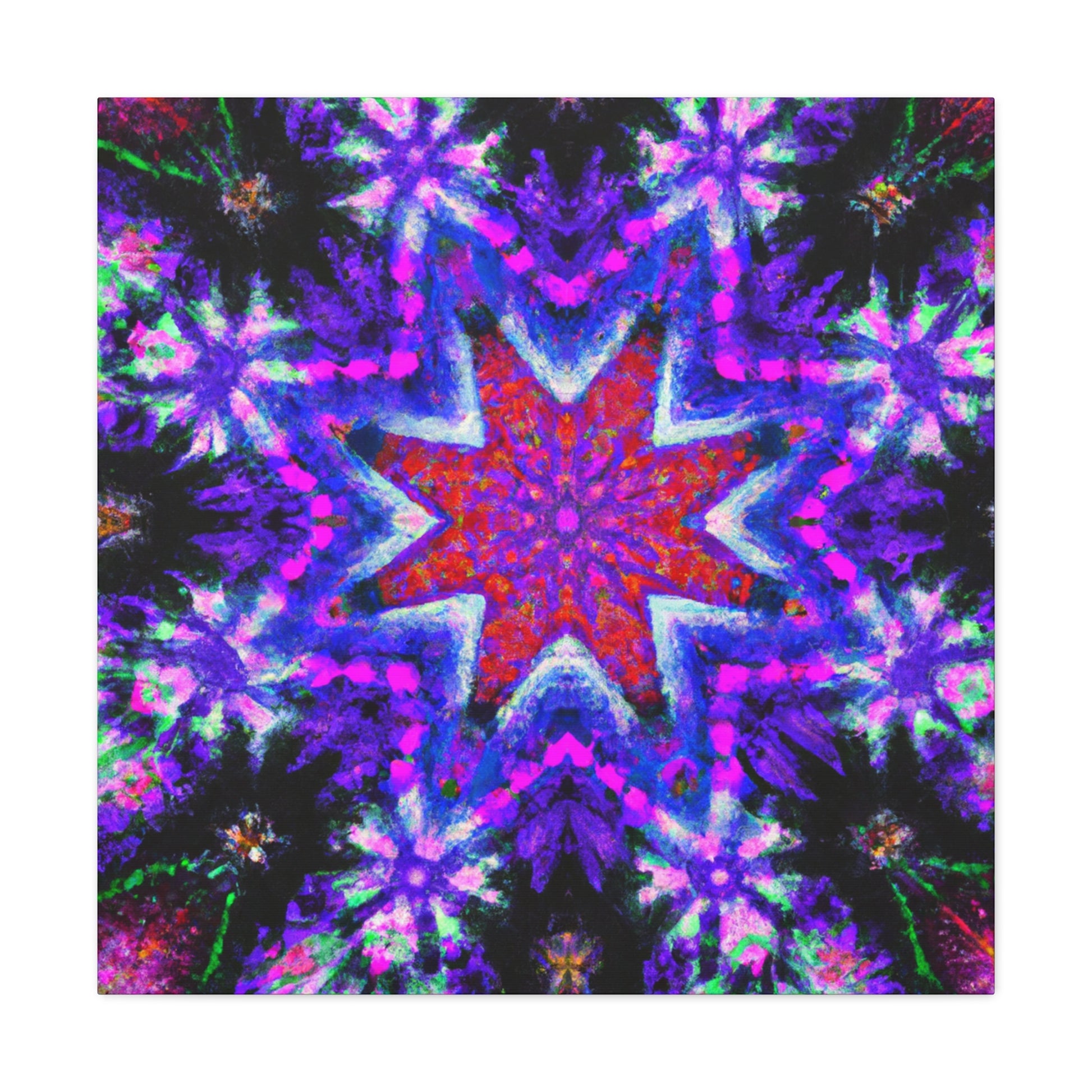 This vibrant and symmetrical canvas of Trippy stars, kaleidoscope, abstract, digital art, and vibrant colors in HD will fill any room with fun energy. Hang it in your living room, bedroom, or office and pair it with other colors and textures to make your space stand out! #AbstractArt #HDCanvas #VibrantColors #DigitalArt #TrippyStars #Kaleidoscope #Symmetrical #AbstractPainting #Decor #InteriorDesign #ArtCanvas
