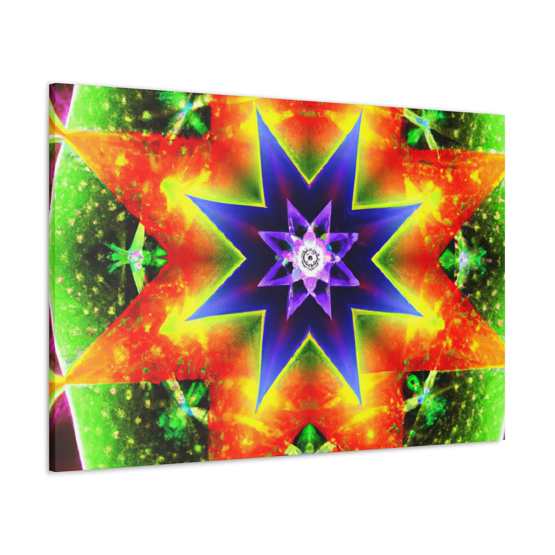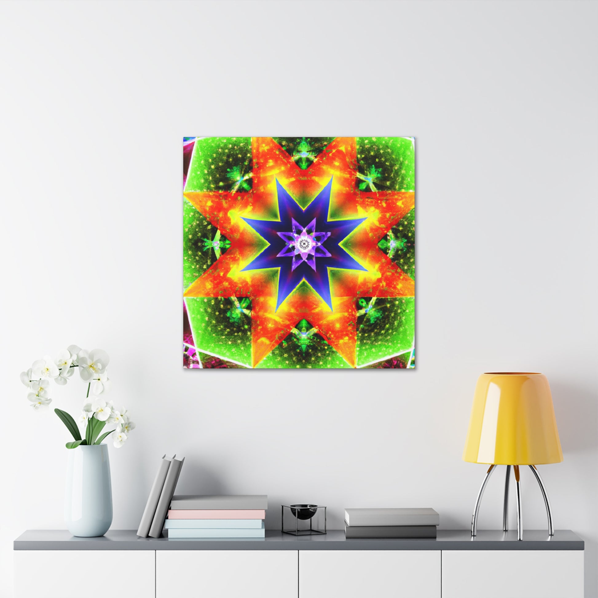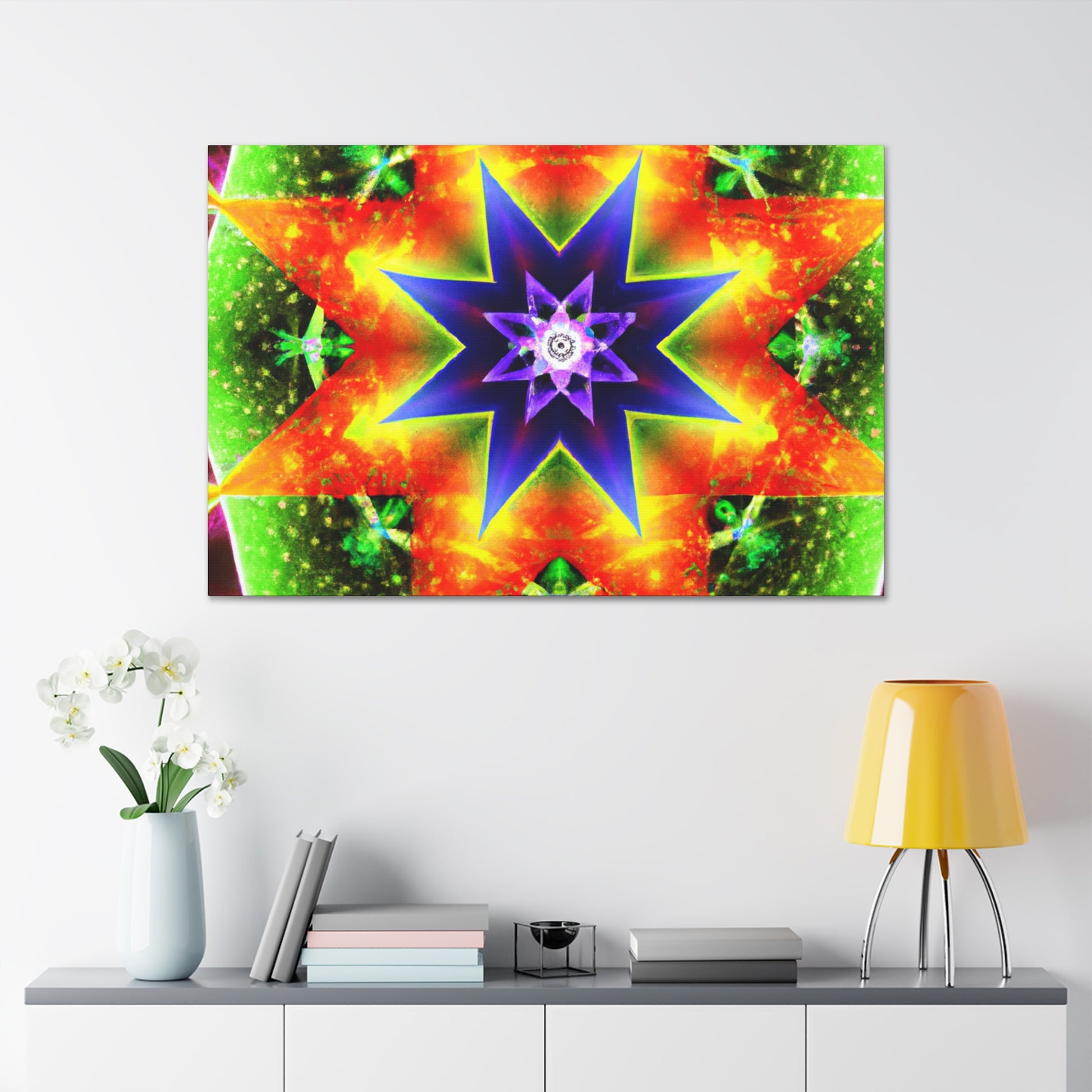 This unique canvas of trippy stars, kaleidoscope, abstract, digital art features a visual experience like no other. With its vibrant colors and HD quality, it creates a perfect symmetrical shape to the eye. Add a pop of color to your wall décor while being in awe of its dynamic colorful design. #Canvas #DigitalArt #Stars #Kaleidoscope #Trippy #Abstract #Vibrancy #Symmetry #HD #Artwork #Colors