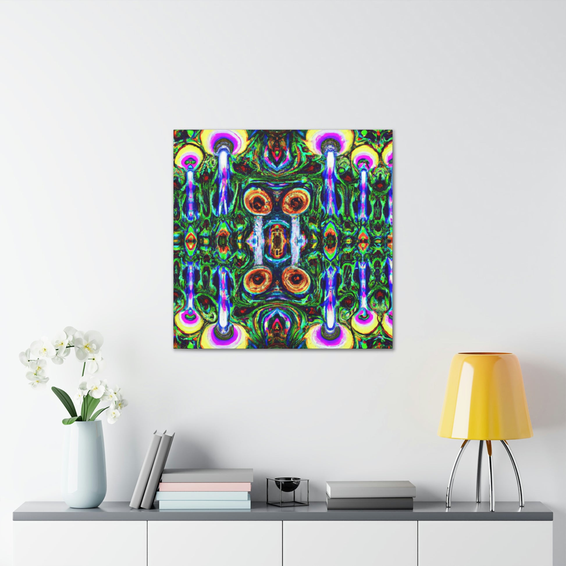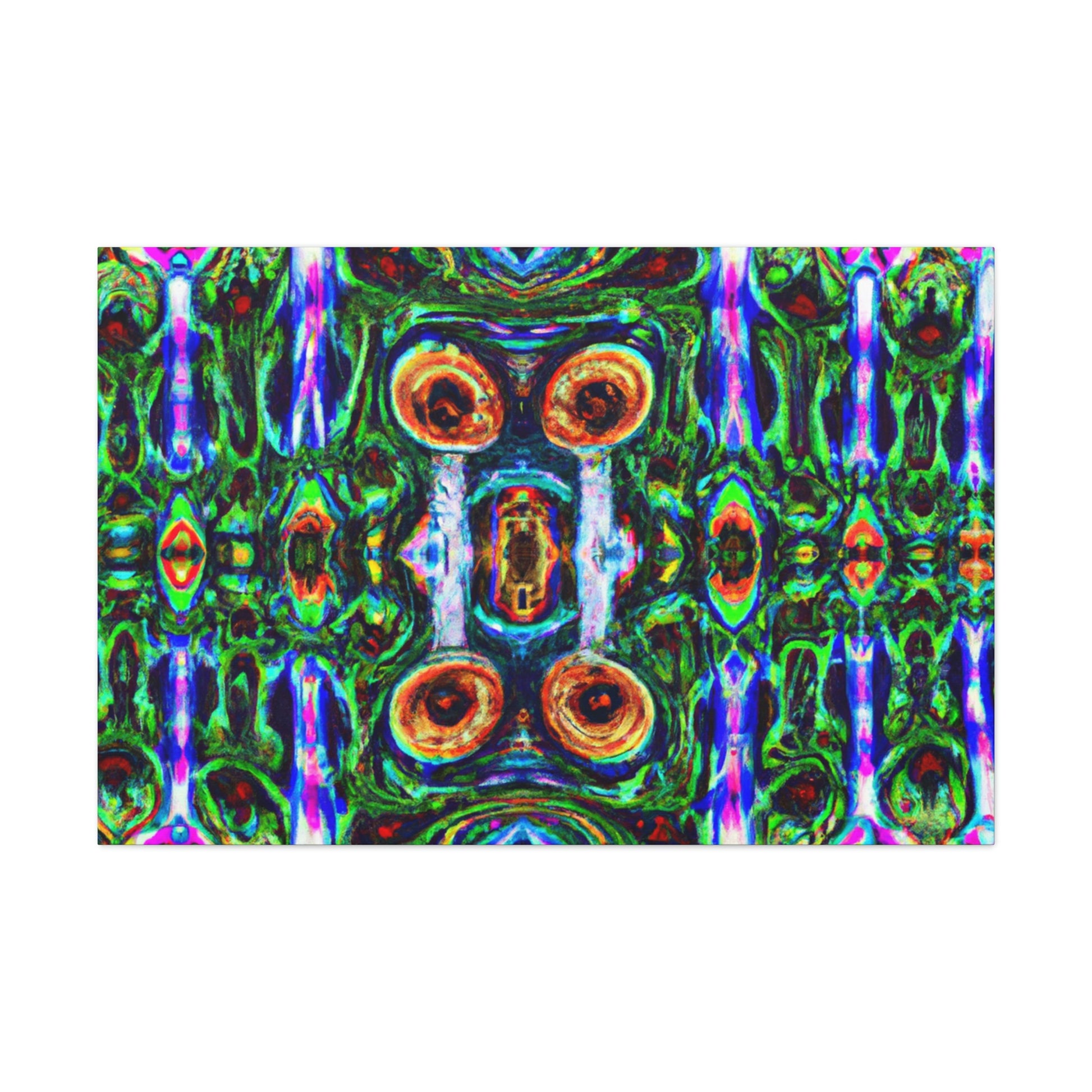 This digital art canvas is sure to bring a smile and a splash of color to any space. Showcasing vivid colors, 3D lines, trippy mushrooms, and a kaleidoscope of abstract shapes, this piece will make a unique addition to any room. Bring a mesmerizing atmosphere to your home with this special canvas. #VibrantArt #AbstractArt #DigitalArt #TrippyMushroom #CanvasArt #3DLines #Kaleidoscope #Mesmerizing #VividColors #StatementPiece #HomeDecor