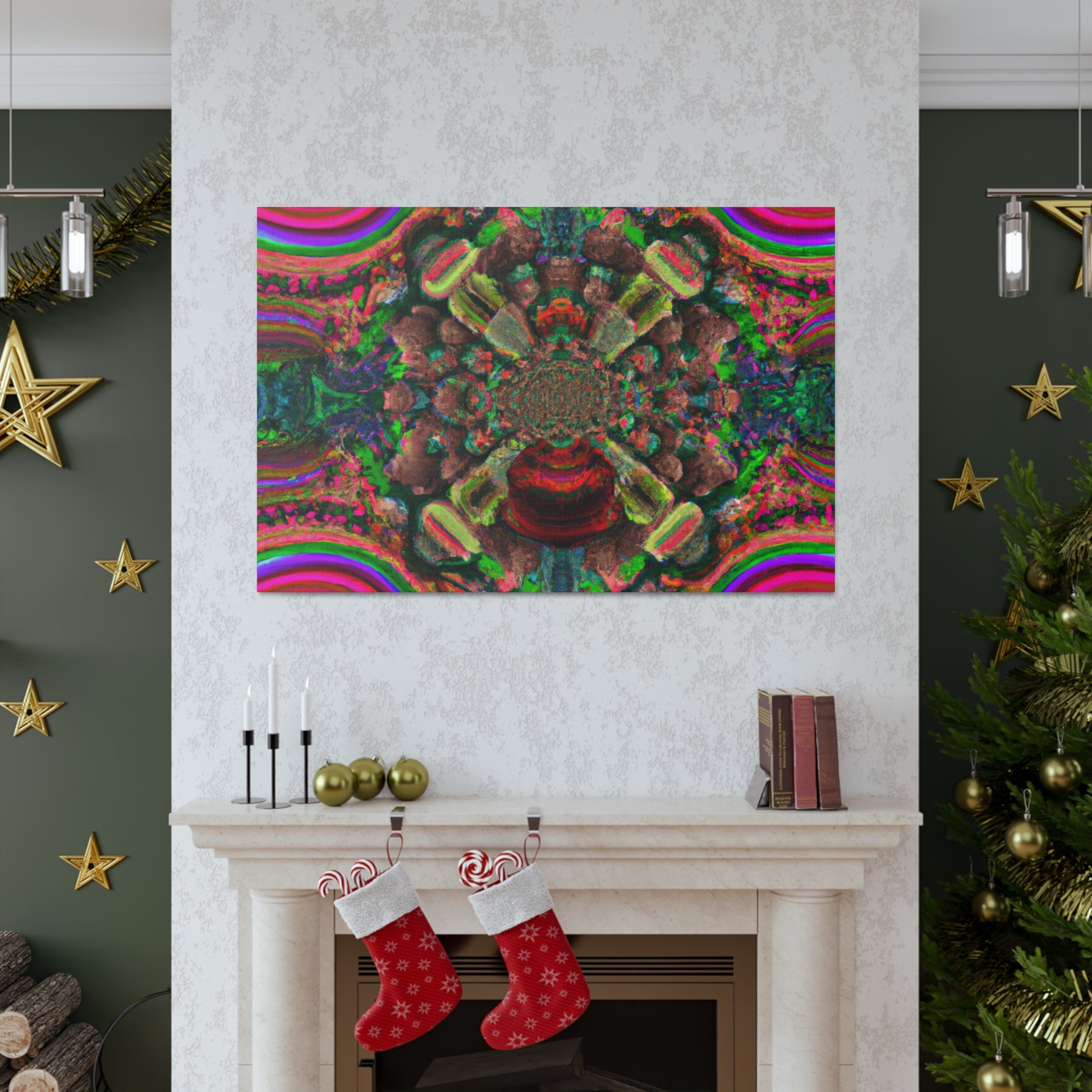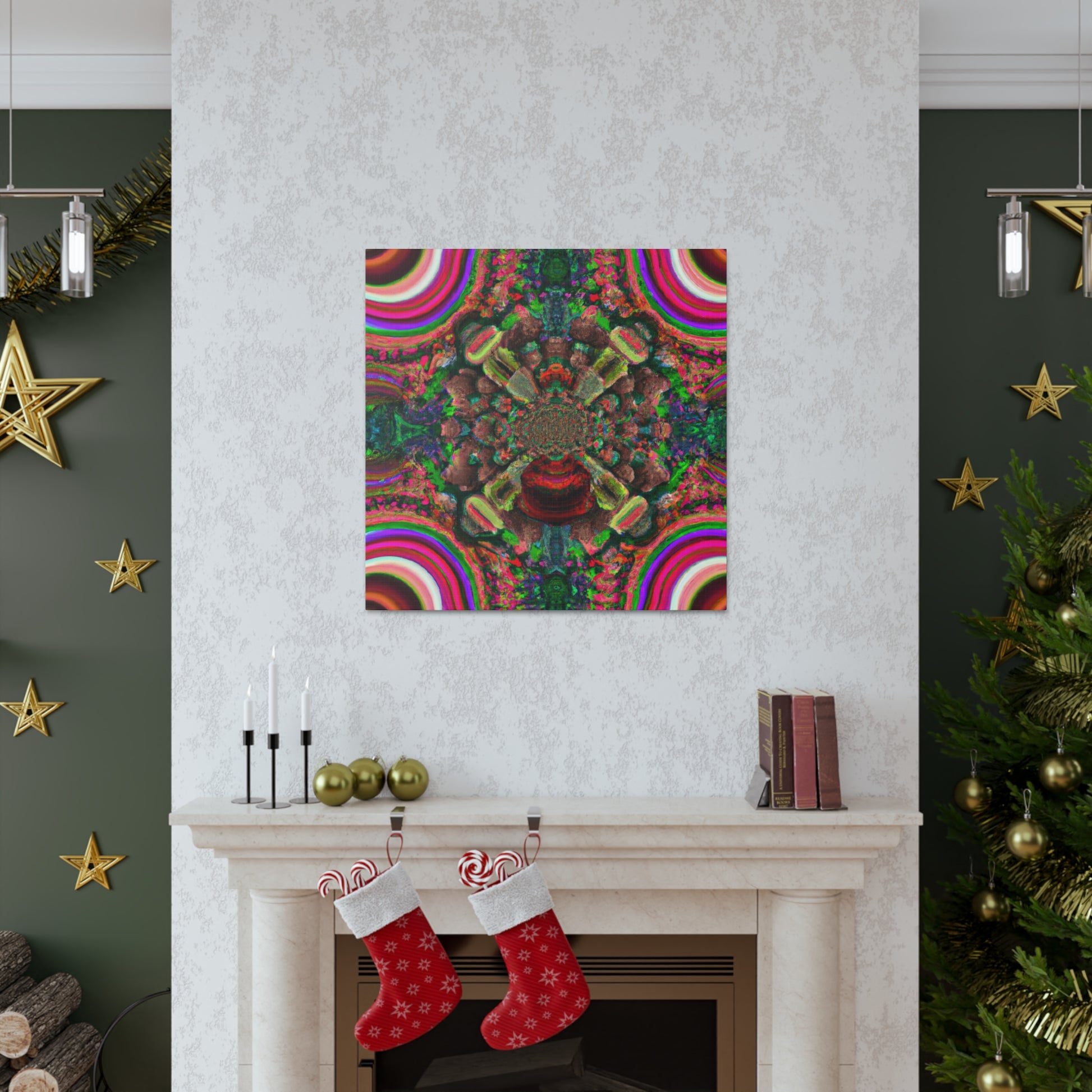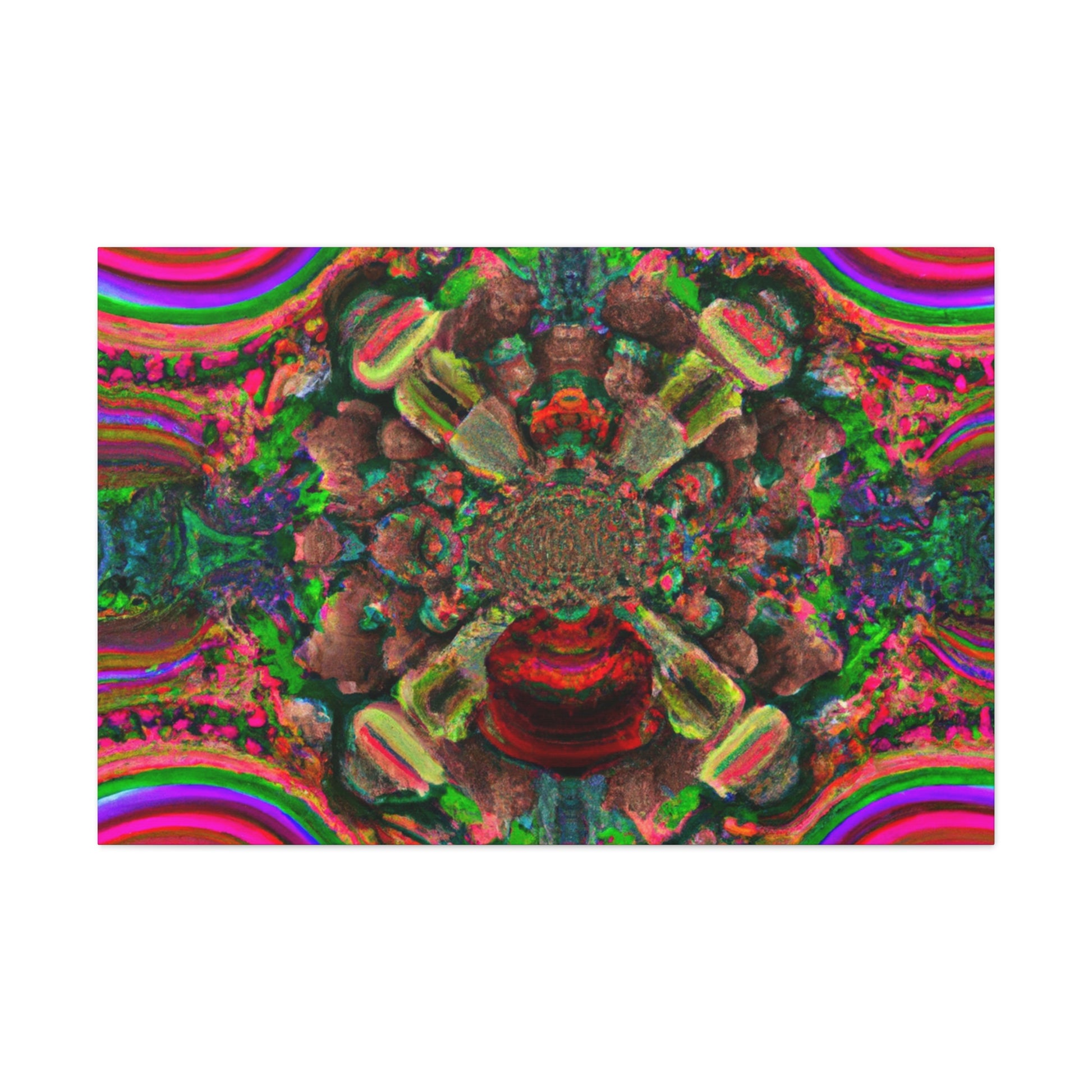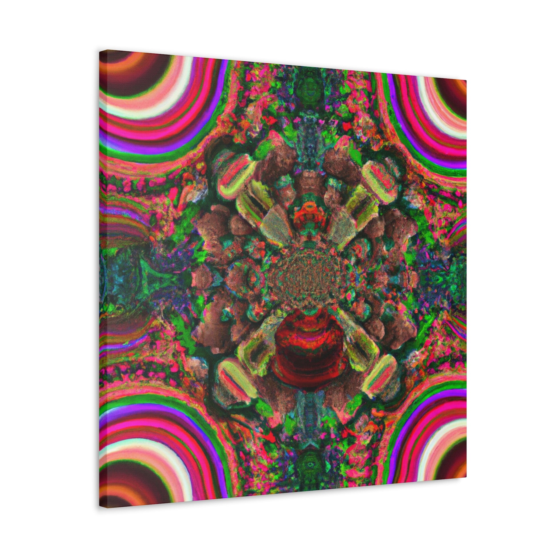 This awe-inspiring digital artwork is sure to bring an eye-catching visual to any space. Let your imagination run wild with trippy mushrooms, kaleidoscope fades, abstract shapes, vibrant colors and 3D lines that make this canvas a show stopping piece. Instantly add some positive vibes to your home or office and enjoy the energy the artwork exudes! #artwork #canvas #mushrooms #kaleidoscope #abstract #digitalart #vibrantcolors #3Dlines #trippyart #homedecor #interiordesign
