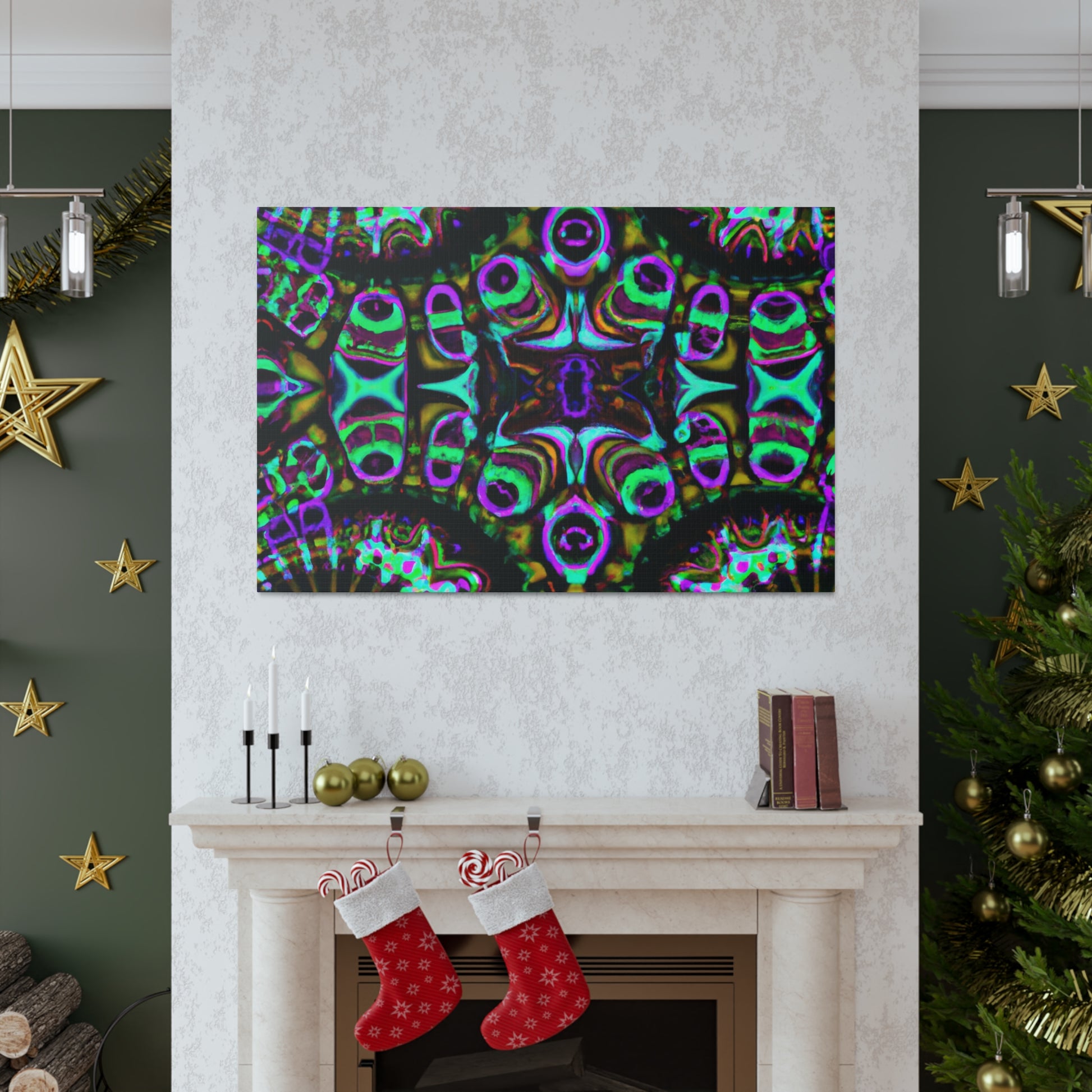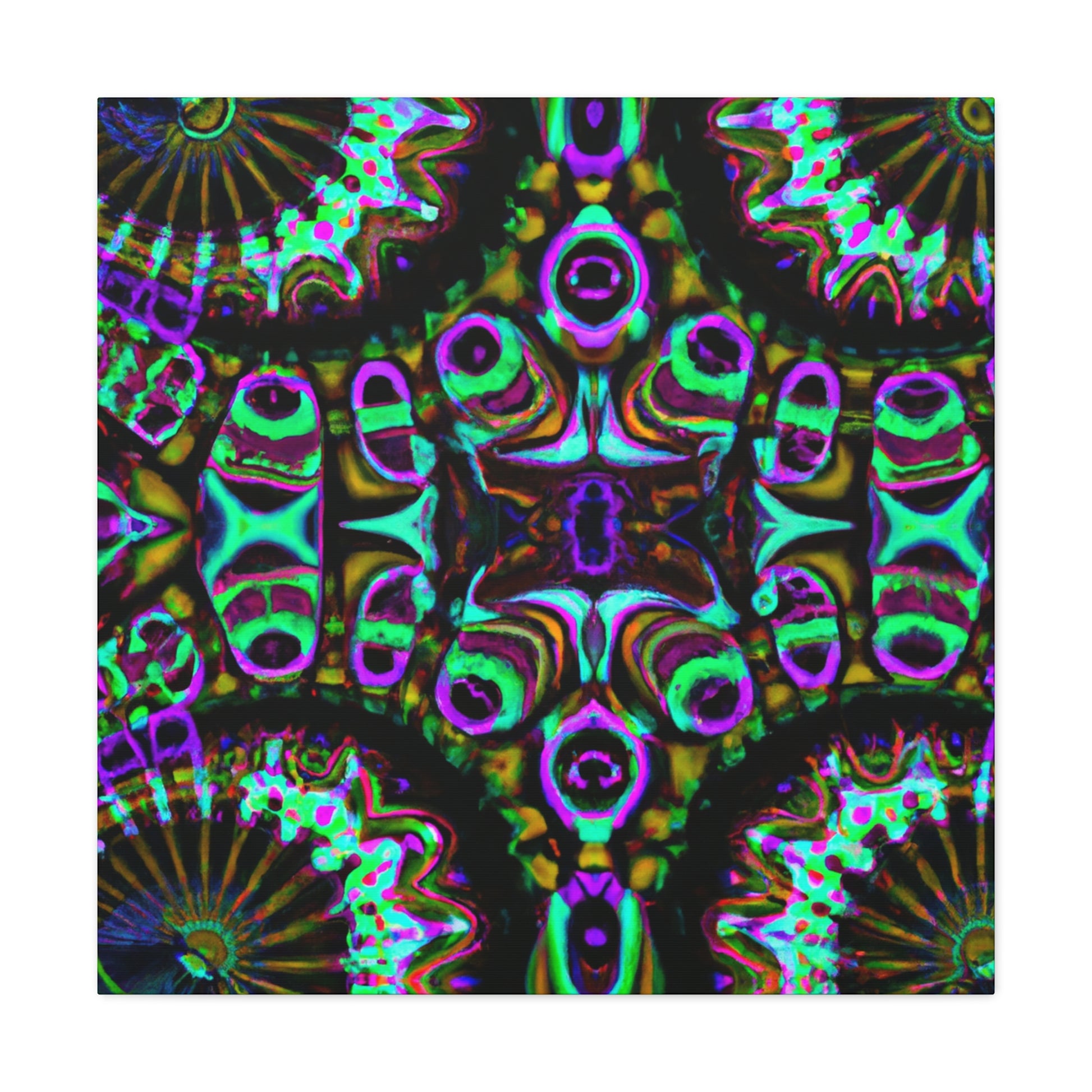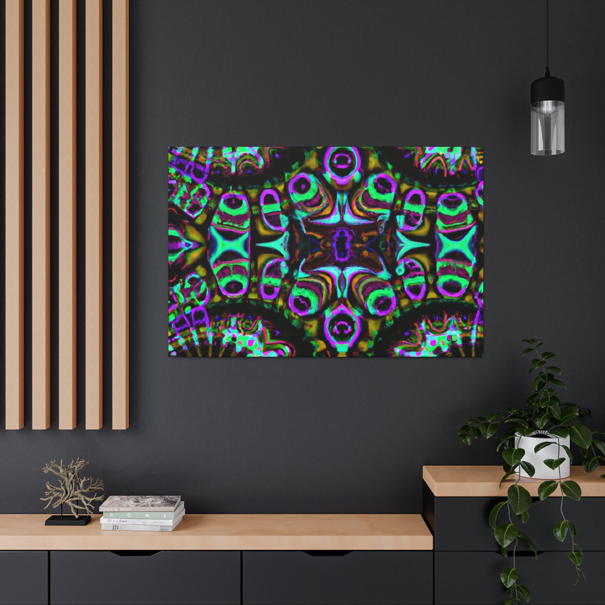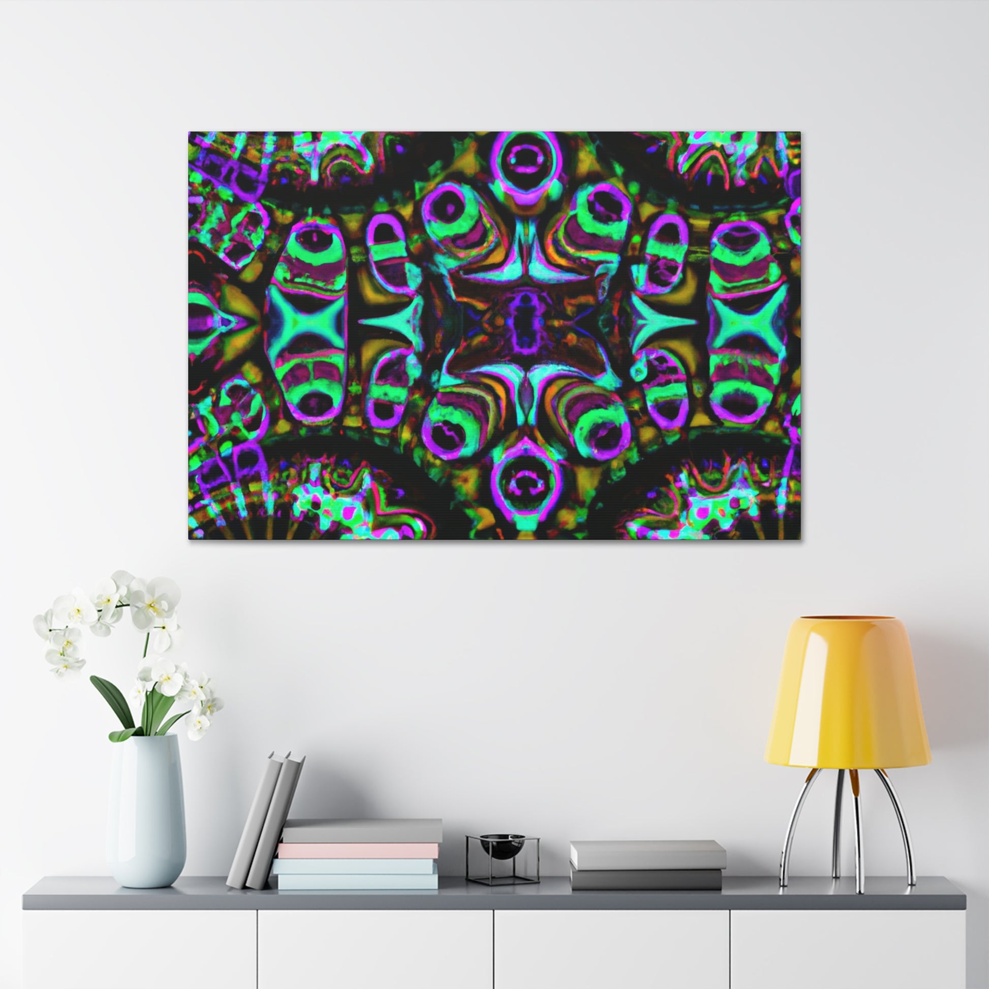 This cutting-edge digital art brings vibrance and life to the space - a trippy, kaleidoscope abstract featuring three dimensions of captivating lines and intense colors. It's sure to be a conversation starter, and is sure to bring a calming atmosphere. #abstract #digitalart #canvas #art #3dlines #mushrooms #kaleidoscope #vibrant #vibrantcolors #trippy #digital