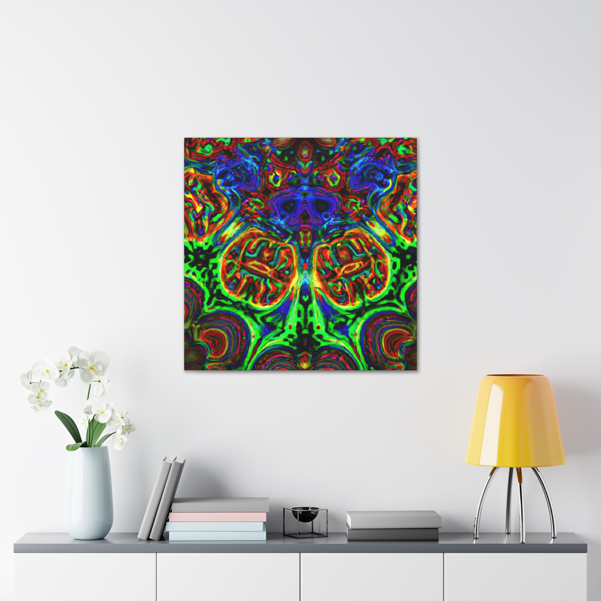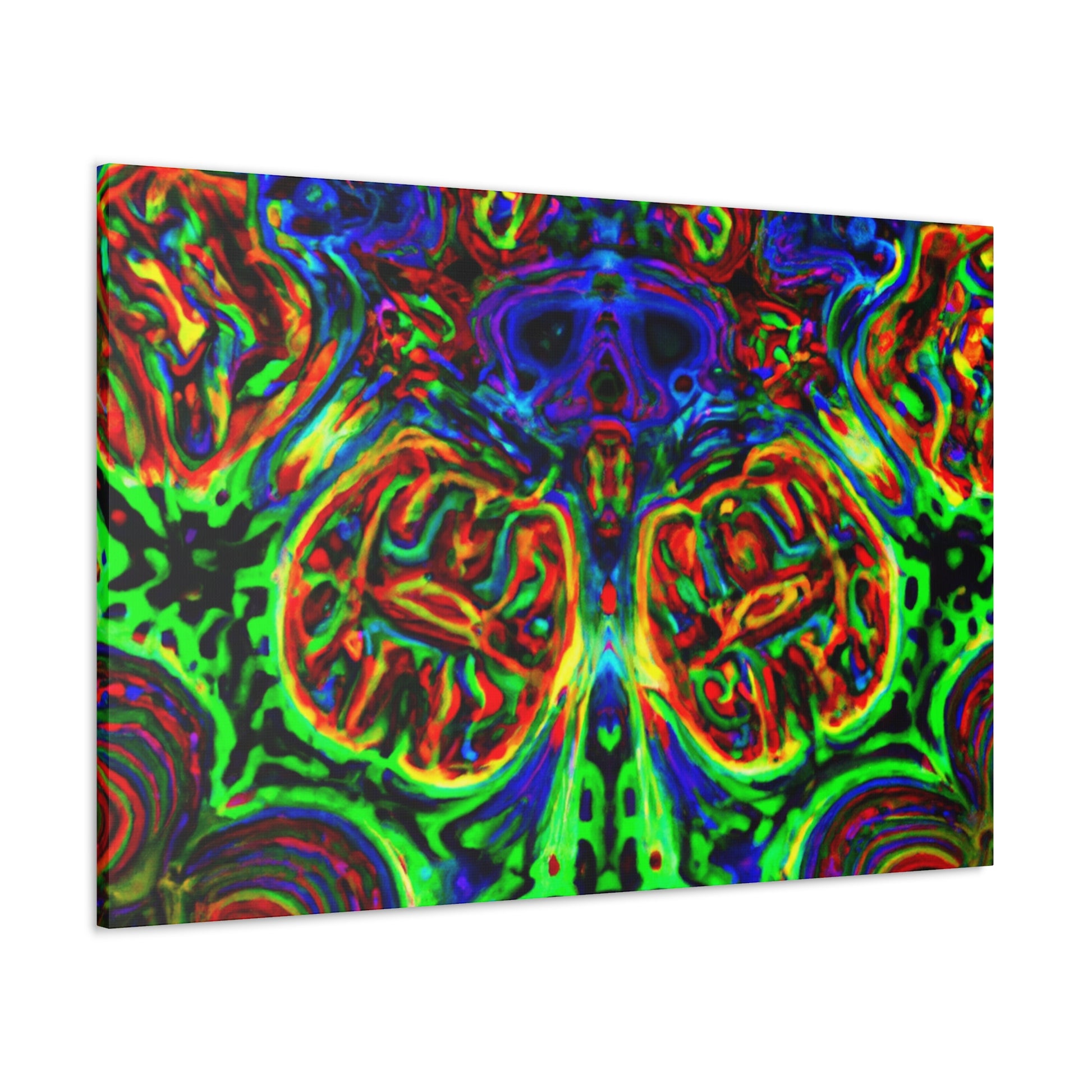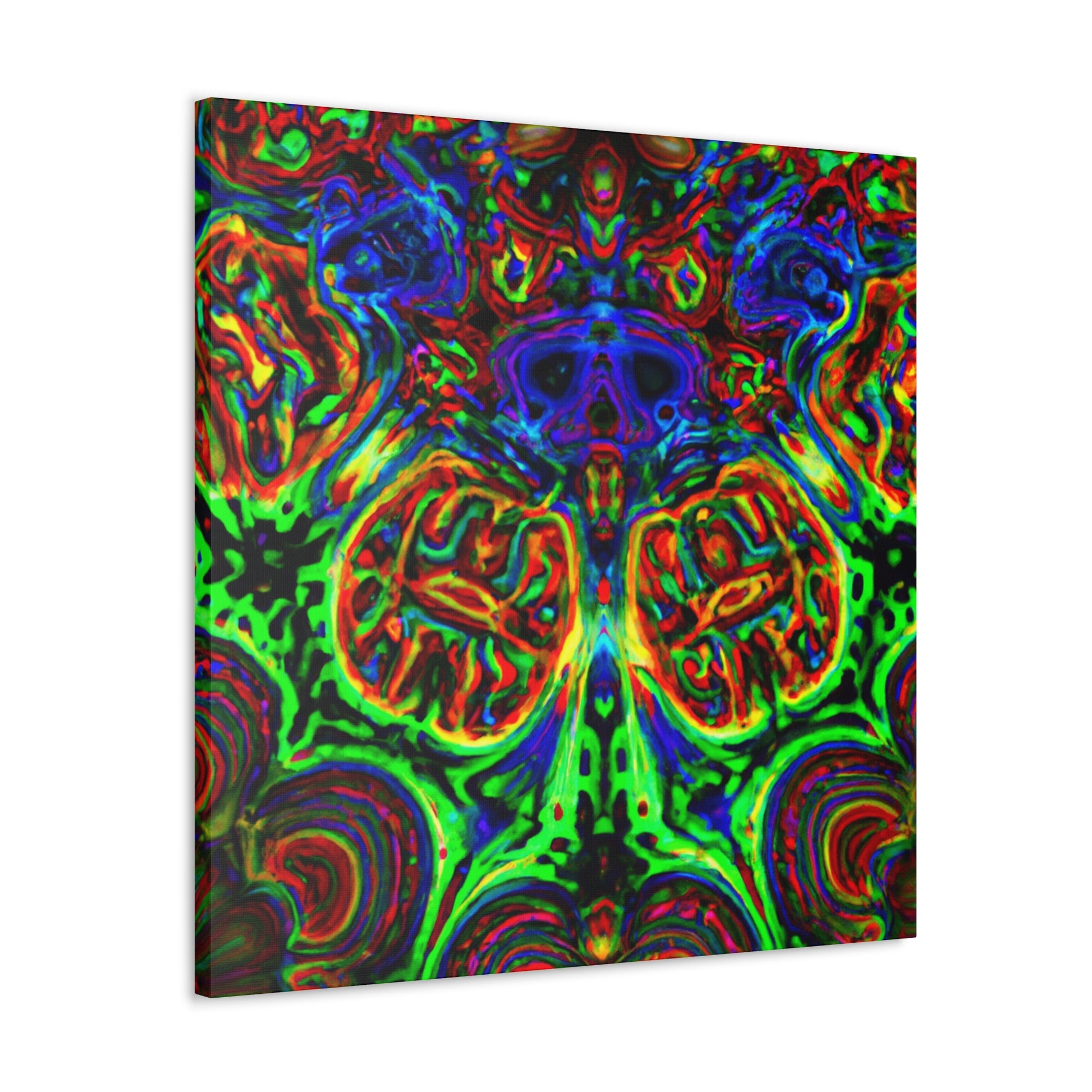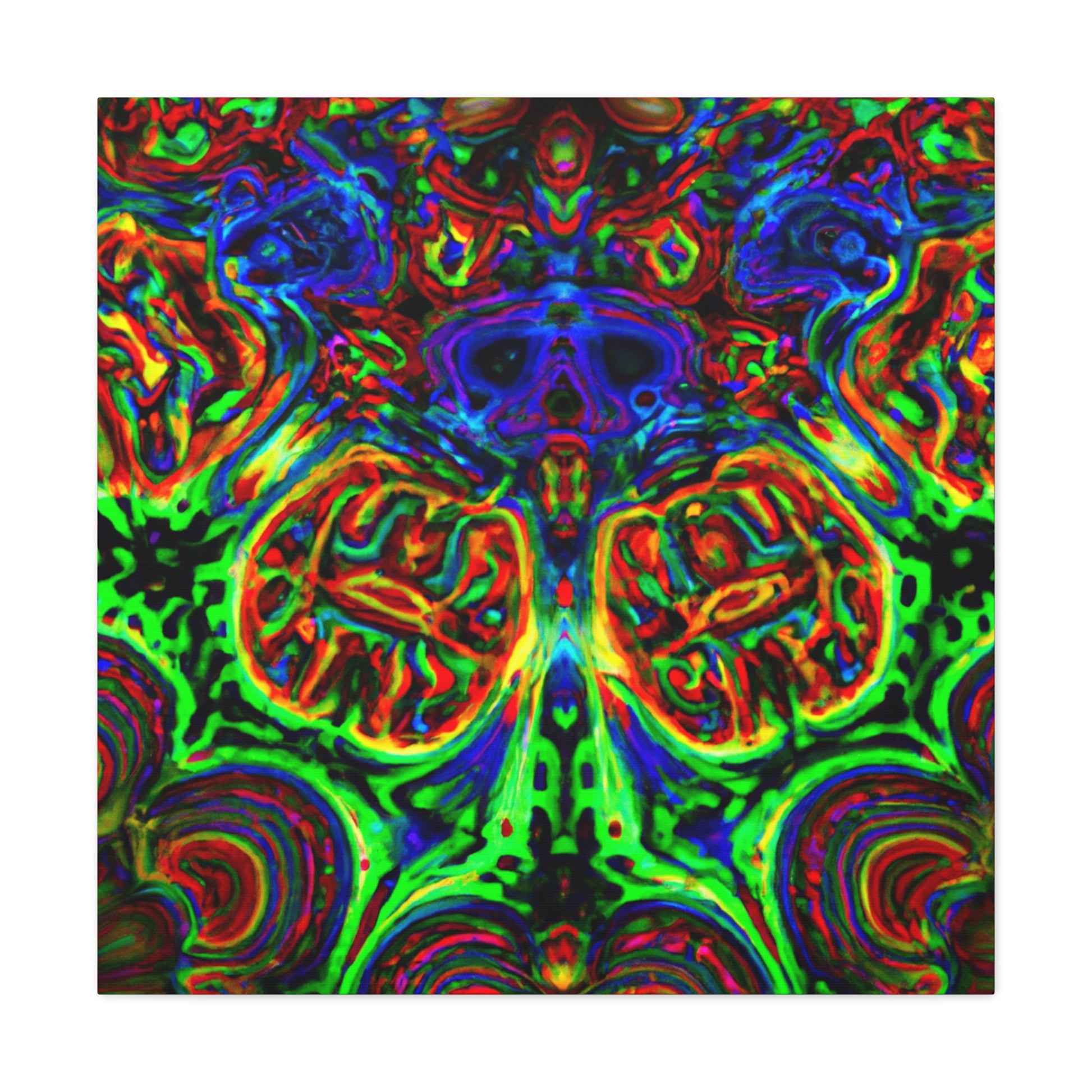 This one-of-a-kind canvas features a trippy mix of mushrooms, kaleidoscope abstract, digital art, and 3D lines in vibrant colors. Its surreal design brings to life depth and movement in the artwork for a truly mesmerizing art experience. Hang it in your home and enjoy a unique piece of art every day. #digitalart #canvas #uniqueart #mushrooms #kaleidoscope #abstract #3Dlines #vibrant #surreal #homeart #dailyinspo