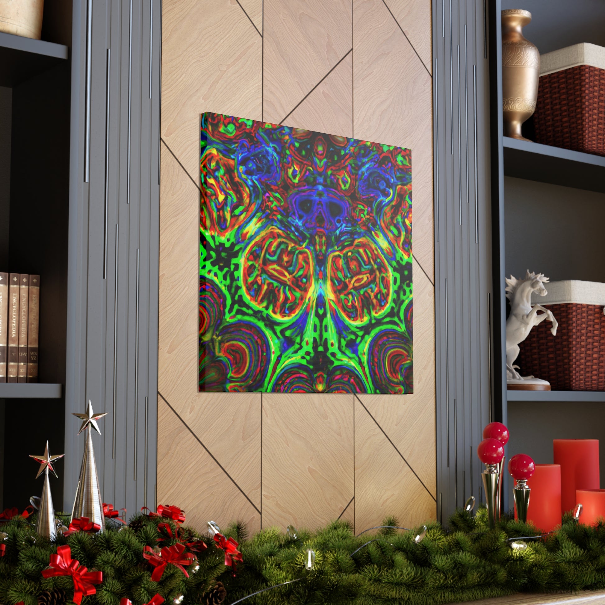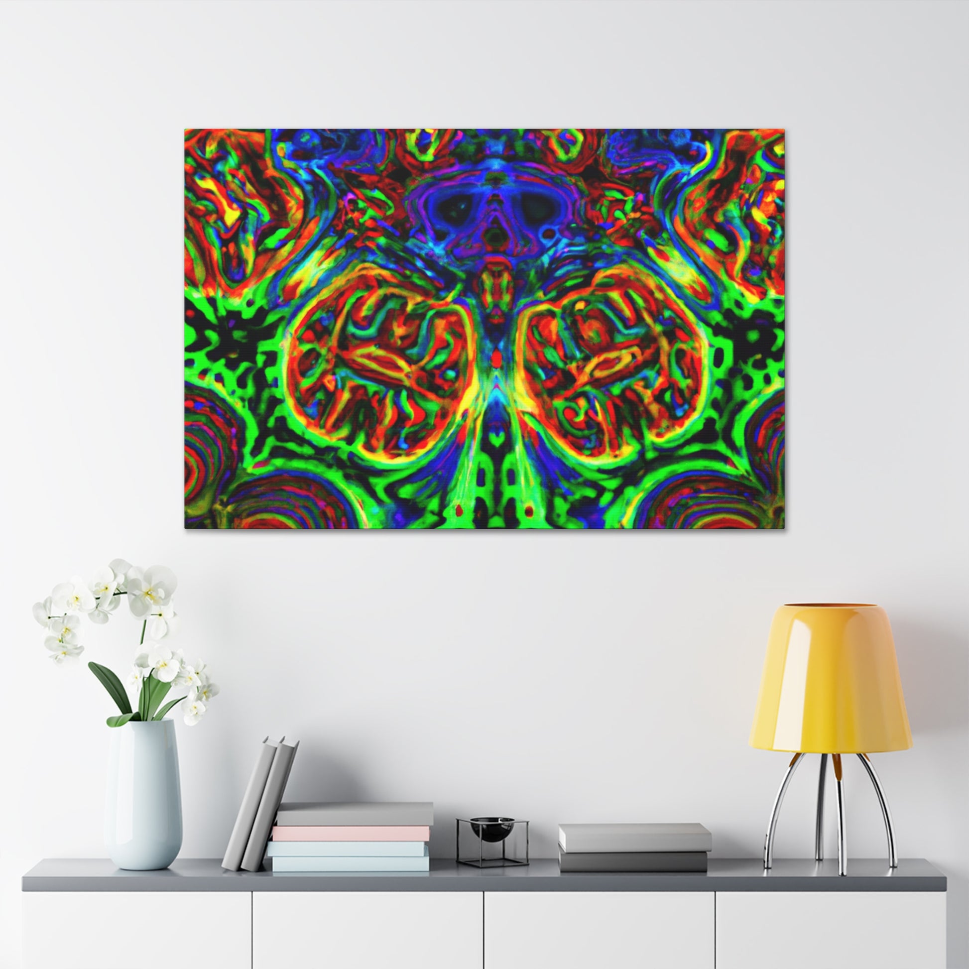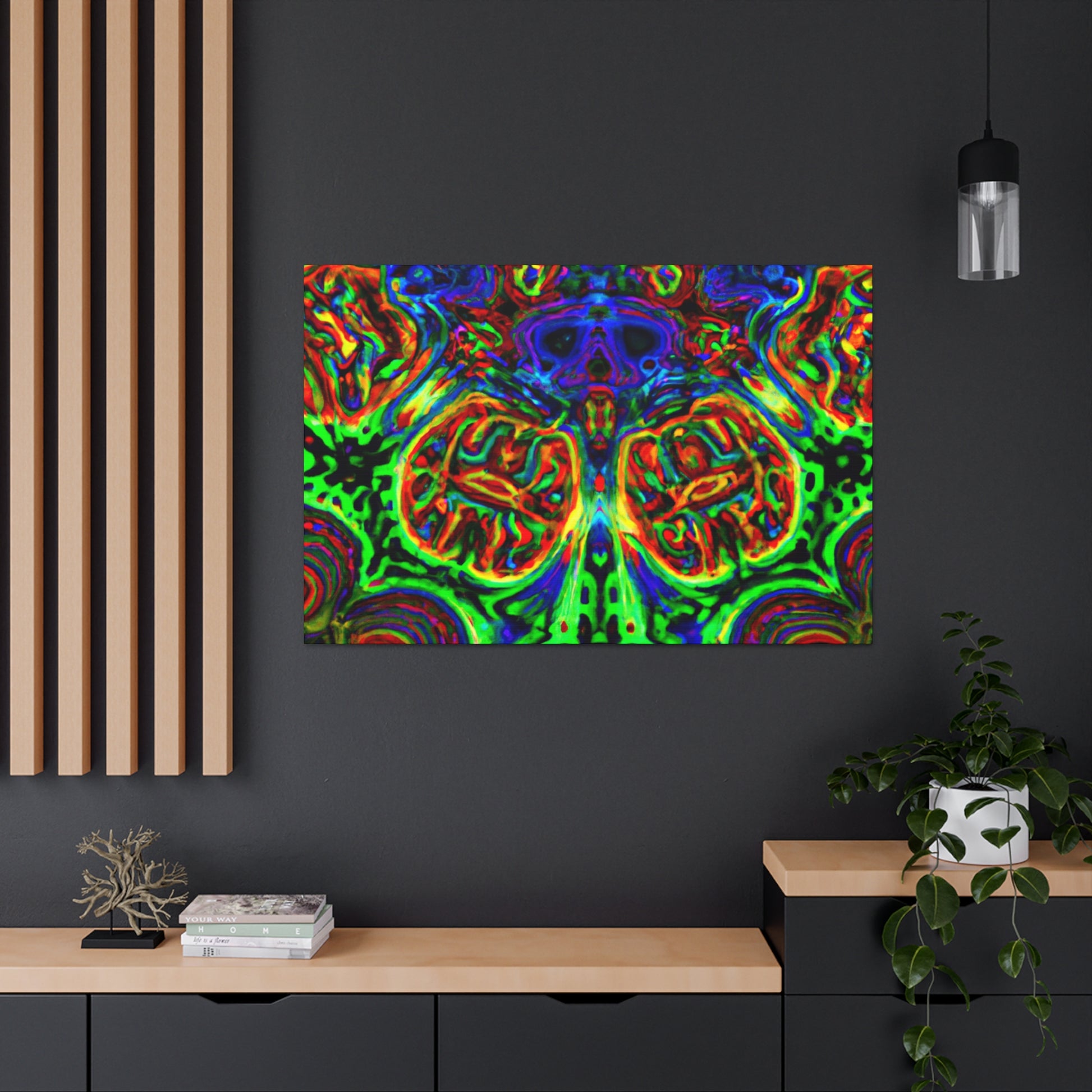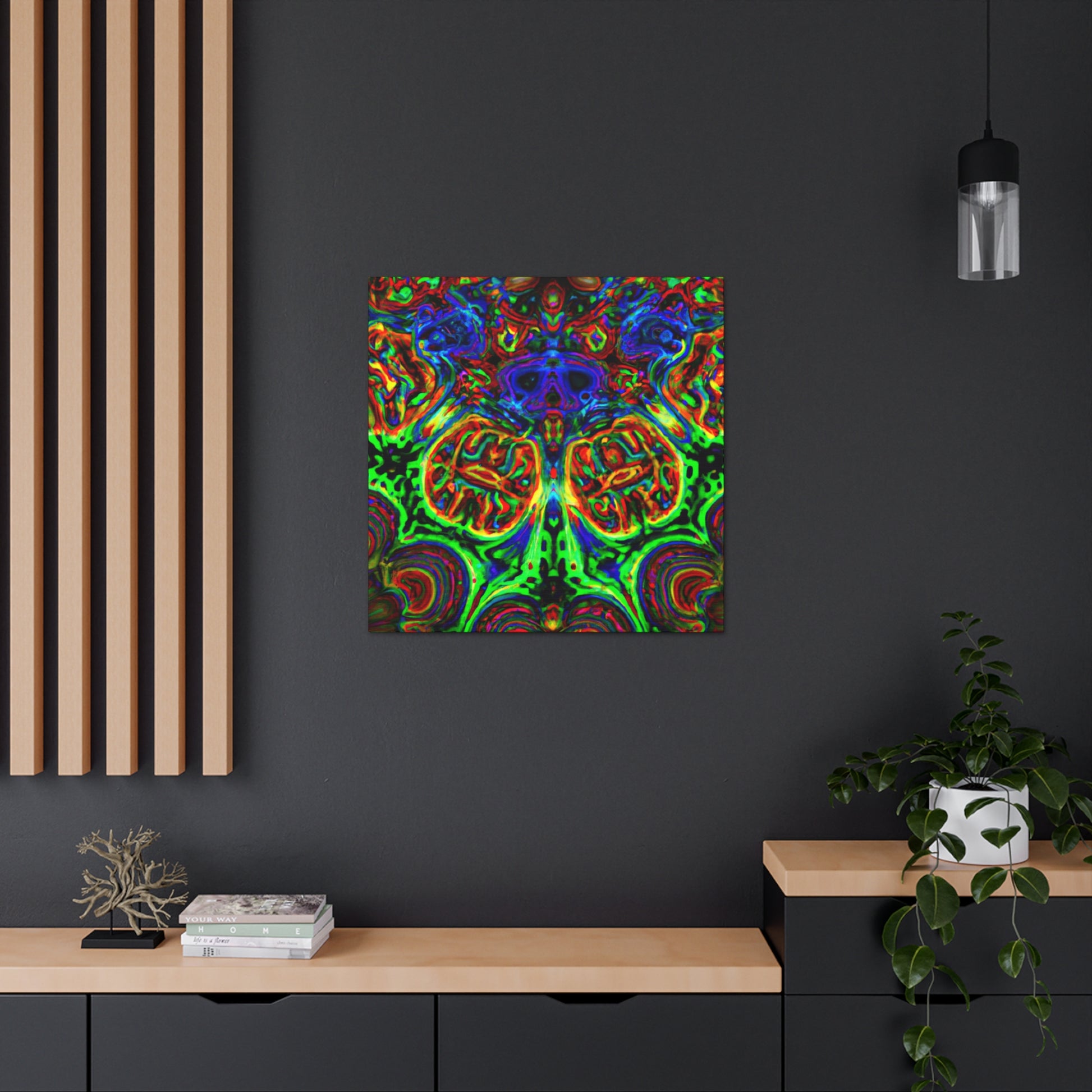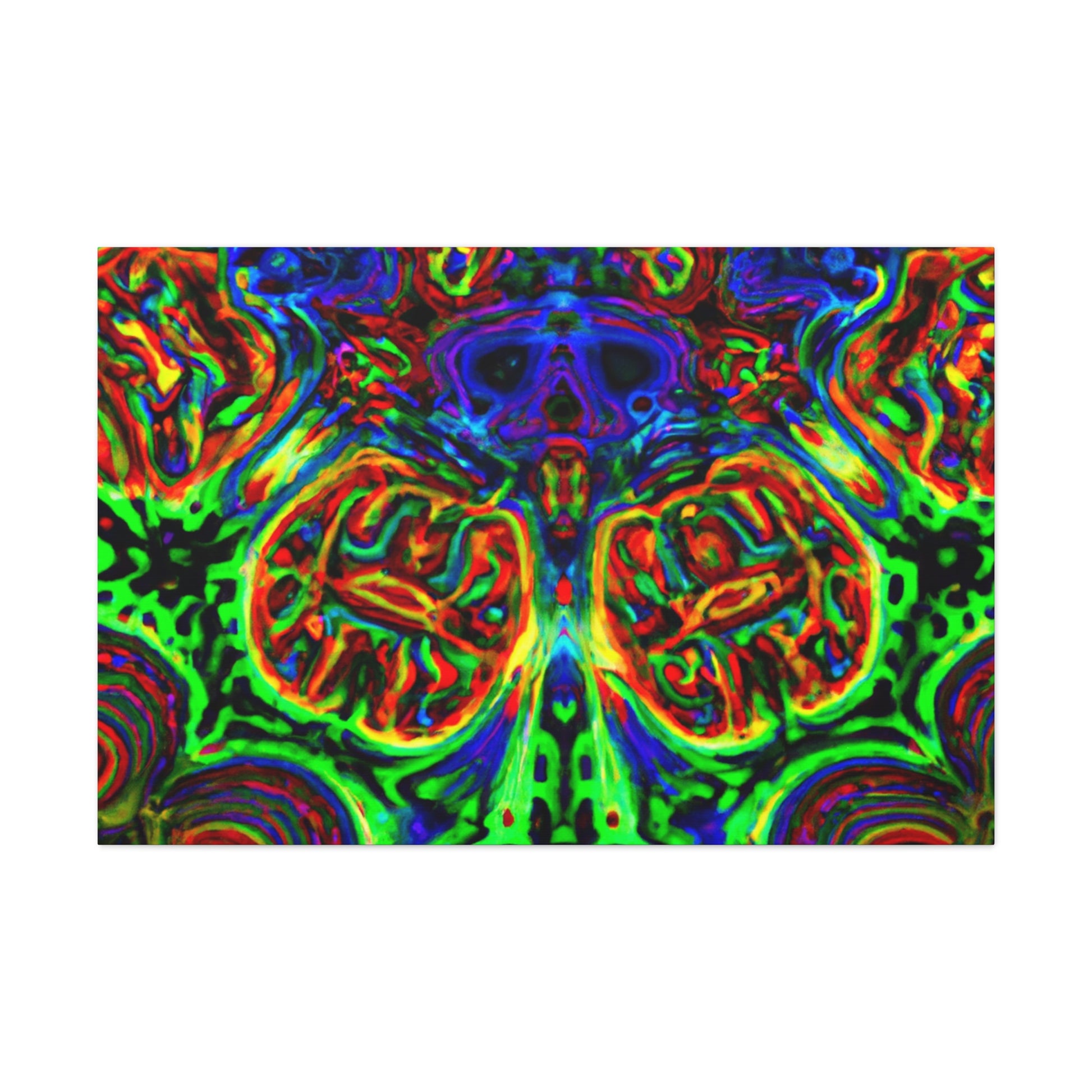 This one-of-a-kind canvas features a trippy mix of mushrooms, kaleidoscope abstract, digital art, and 3D lines in vibrant colors. Its surreal design brings to life depth and movement in the artwork for a truly mesmerizing art experience. Hang it in your home and enjoy a unique piece of art every day. #digitalart #canvas #uniqueart #mushrooms #kaleidoscope #abstract #3Dlines #vibrant #surreal #homeart #dailyinspo