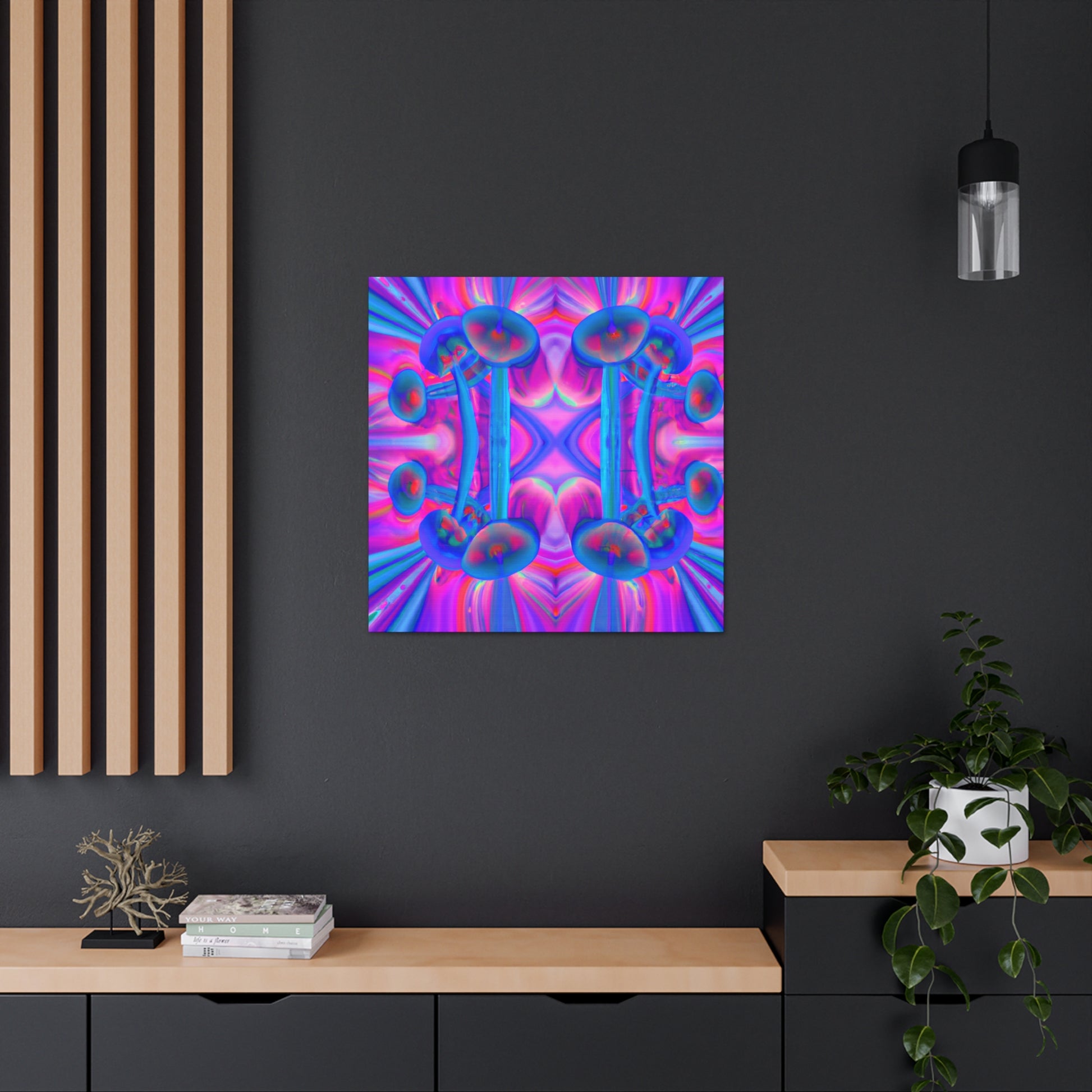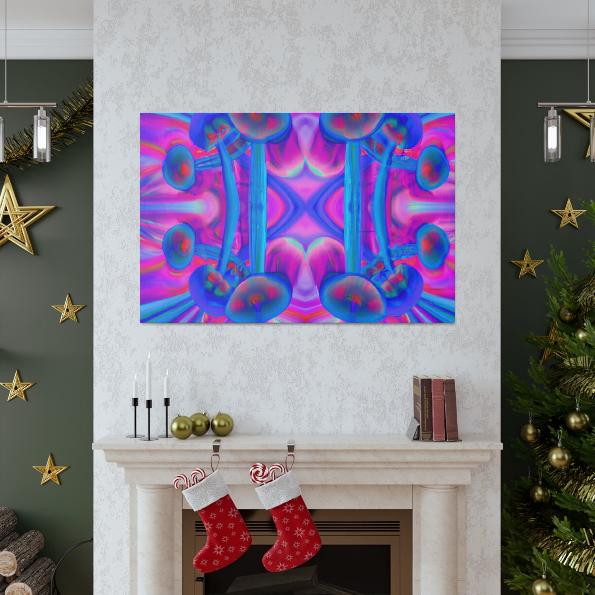 This mesmerizing digital art canvas features trippy mushrooms, kaleidoscope designs, abstract patterns, bold colors and 3D lines! From afar, the vibrant colors and shapes come together to create a beautiful work of art. Up close, the details of each line and color brings a 3D depth to the canvas. Hang it in any room to turn it into a playful, fun, and unique space. #trippy #mushroom #kaleidoscope #abstract #digitalart #vibrantcolors #3D #lines #art #canvas #patterns