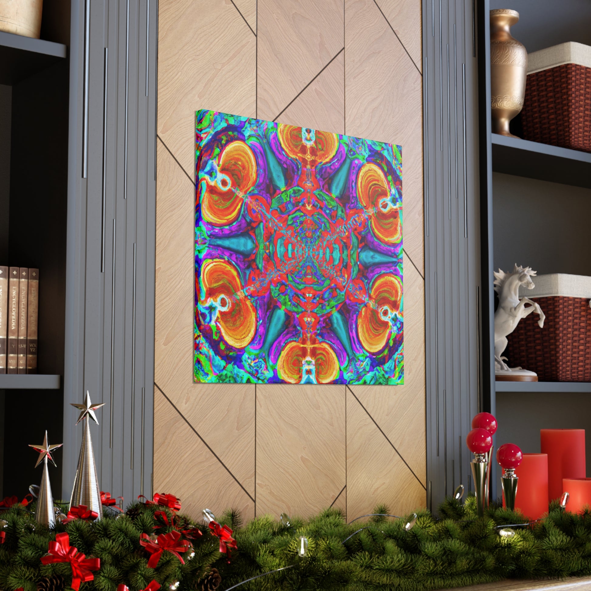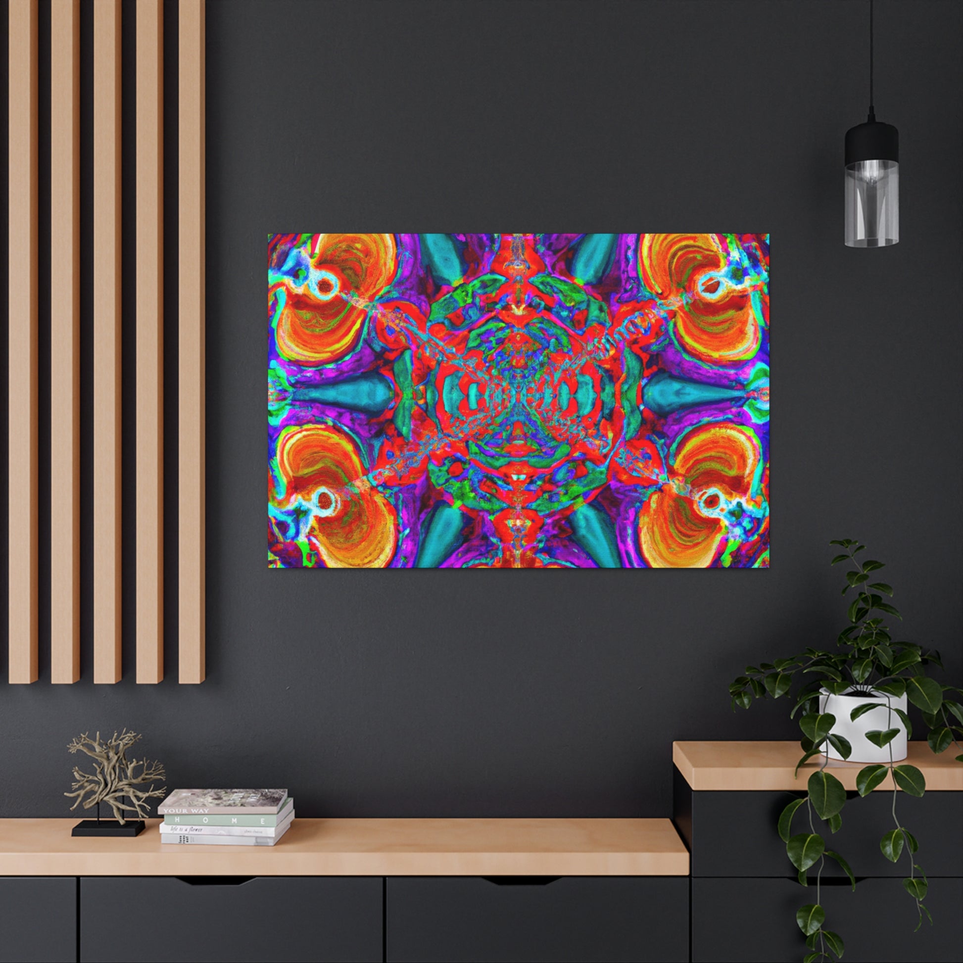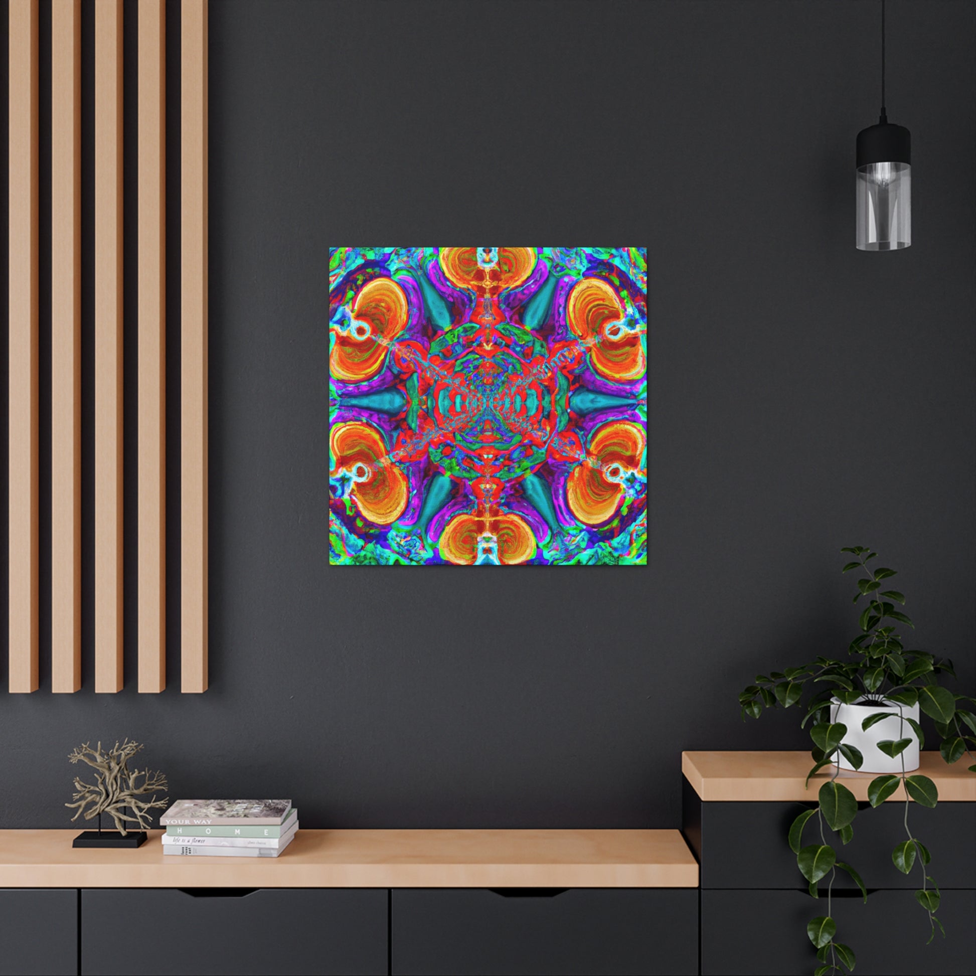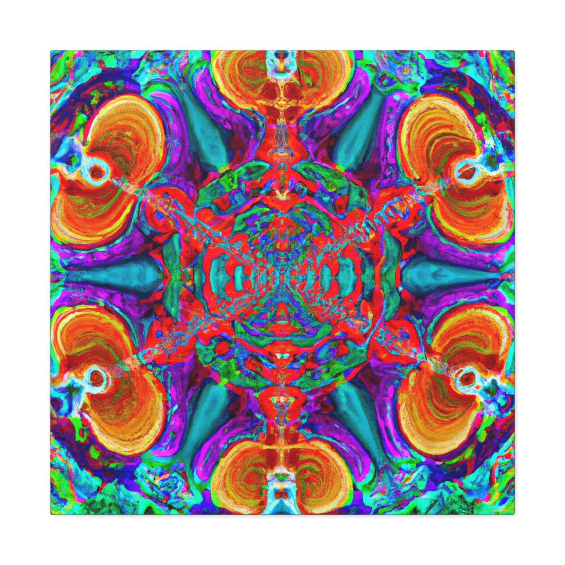 This digital artwork is a mesmerizing combination of trippy mushrooms, kaleidoscope, and abstract shapes. Rich vibrant colors and strong 3D lines create an eye-catching piece sure to be the center of attention in any space. Whether you're an art connoisseur, or just admire the beauty of the digital world, this canvas will be sure to add a unique touch to your home. #mushroom #abstractart #kaleidoscope #digitalart #canvas #vibrantcolors #3Dlines #trippy #art #space #home