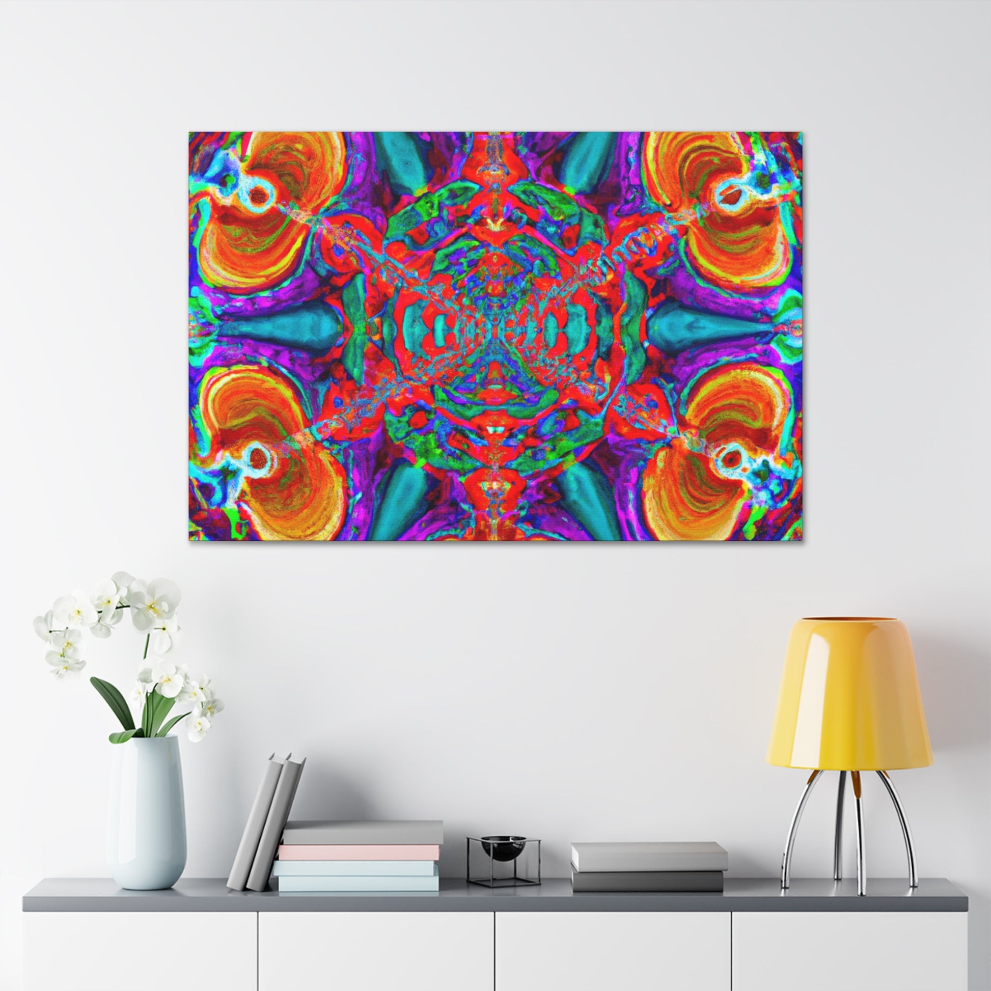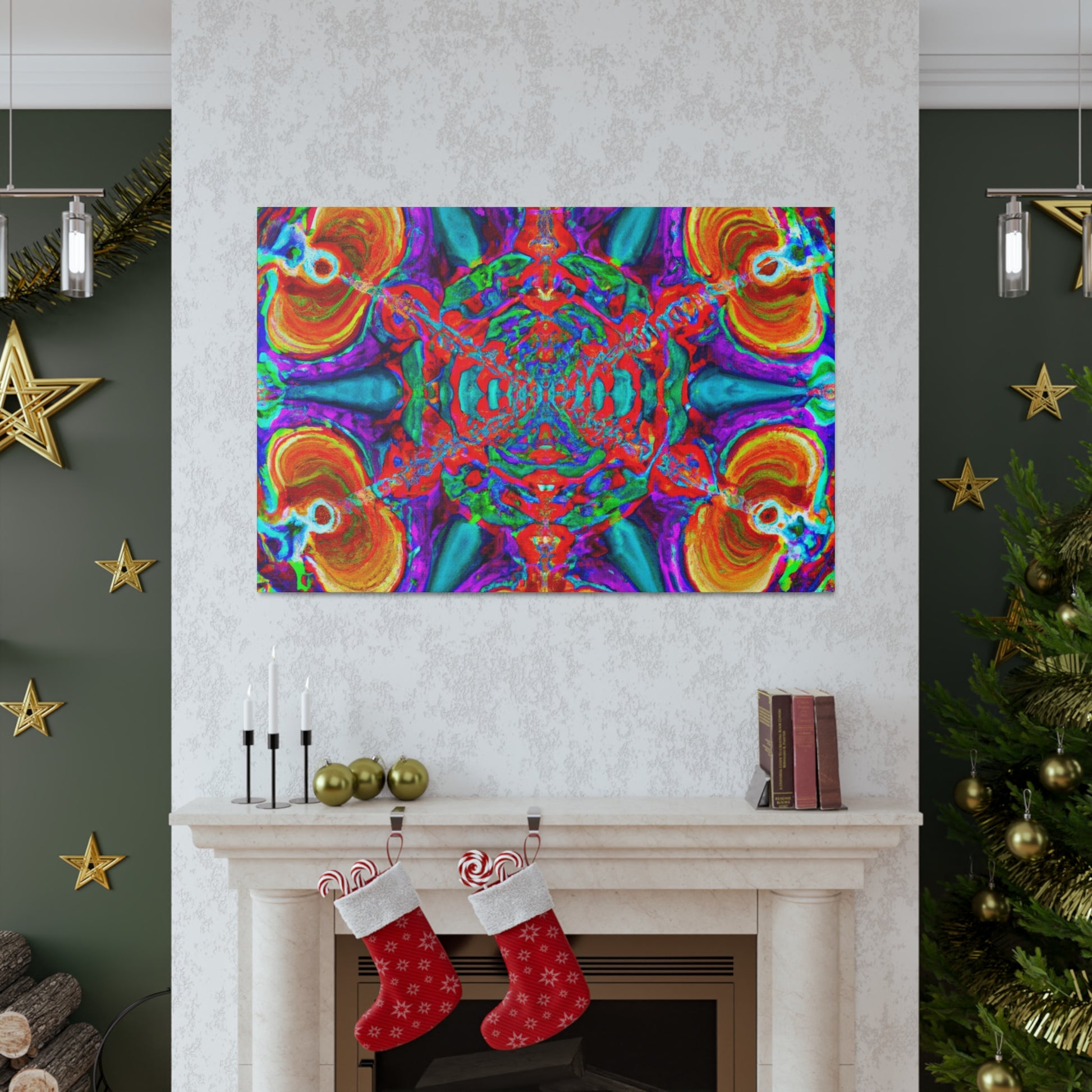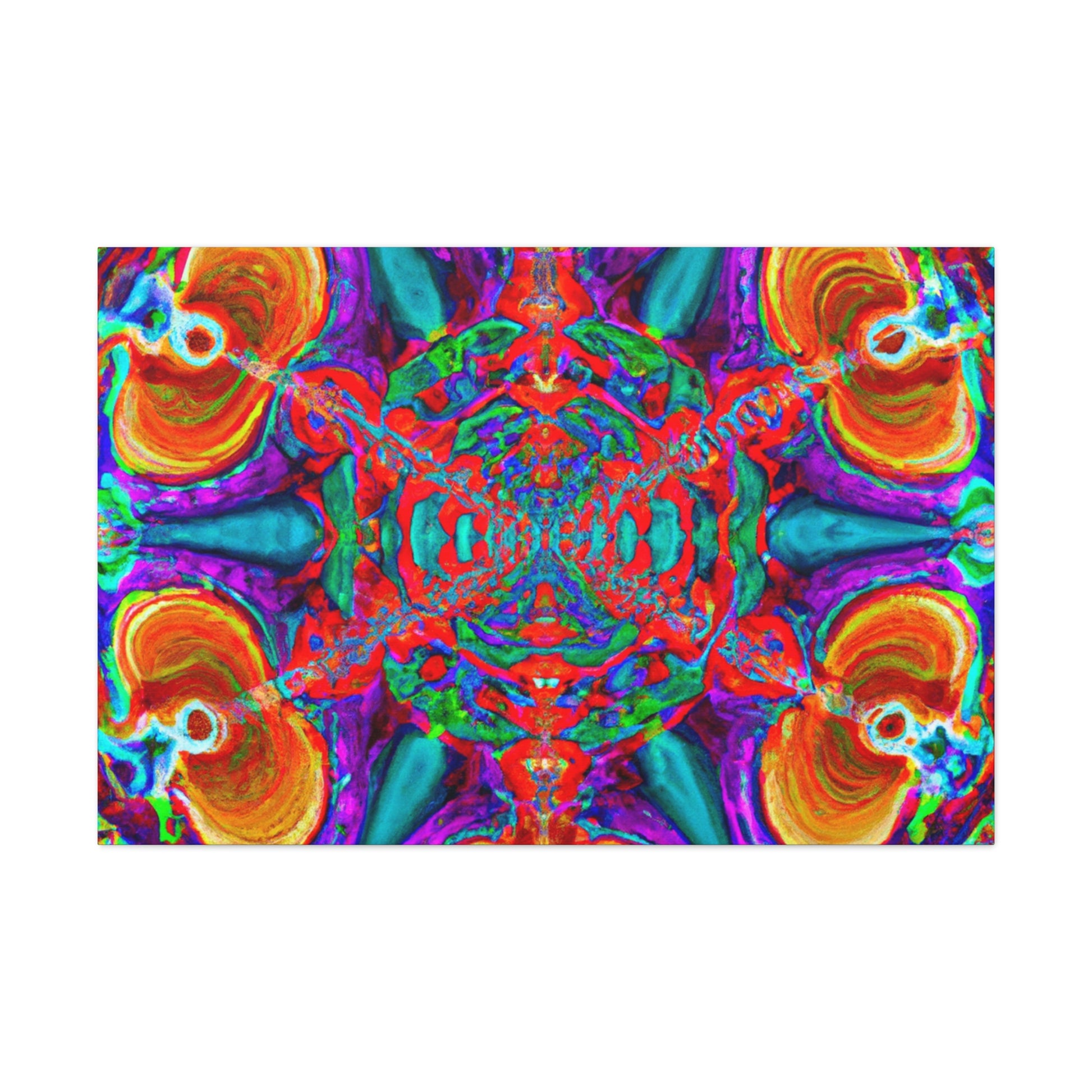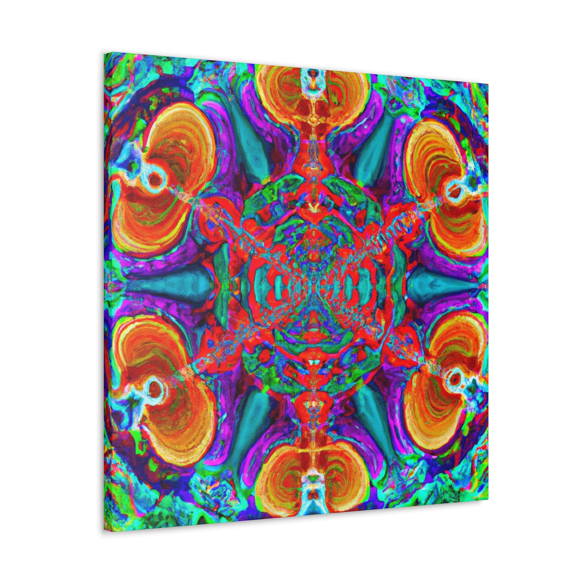 This digital artwork is a mesmerizing combination of trippy mushrooms, kaleidoscope, and abstract shapes. Rich vibrant colors and strong 3D lines create an eye-catching piece sure to be the center of attention in any space. Whether you're an art connoisseur, or just admire the beauty of the digital world, this canvas will be sure to add a unique touch to your home. #mushroom #abstractart #kaleidoscope #digitalart #canvas #vibrantcolors #3Dlines #trippy #art #space #home