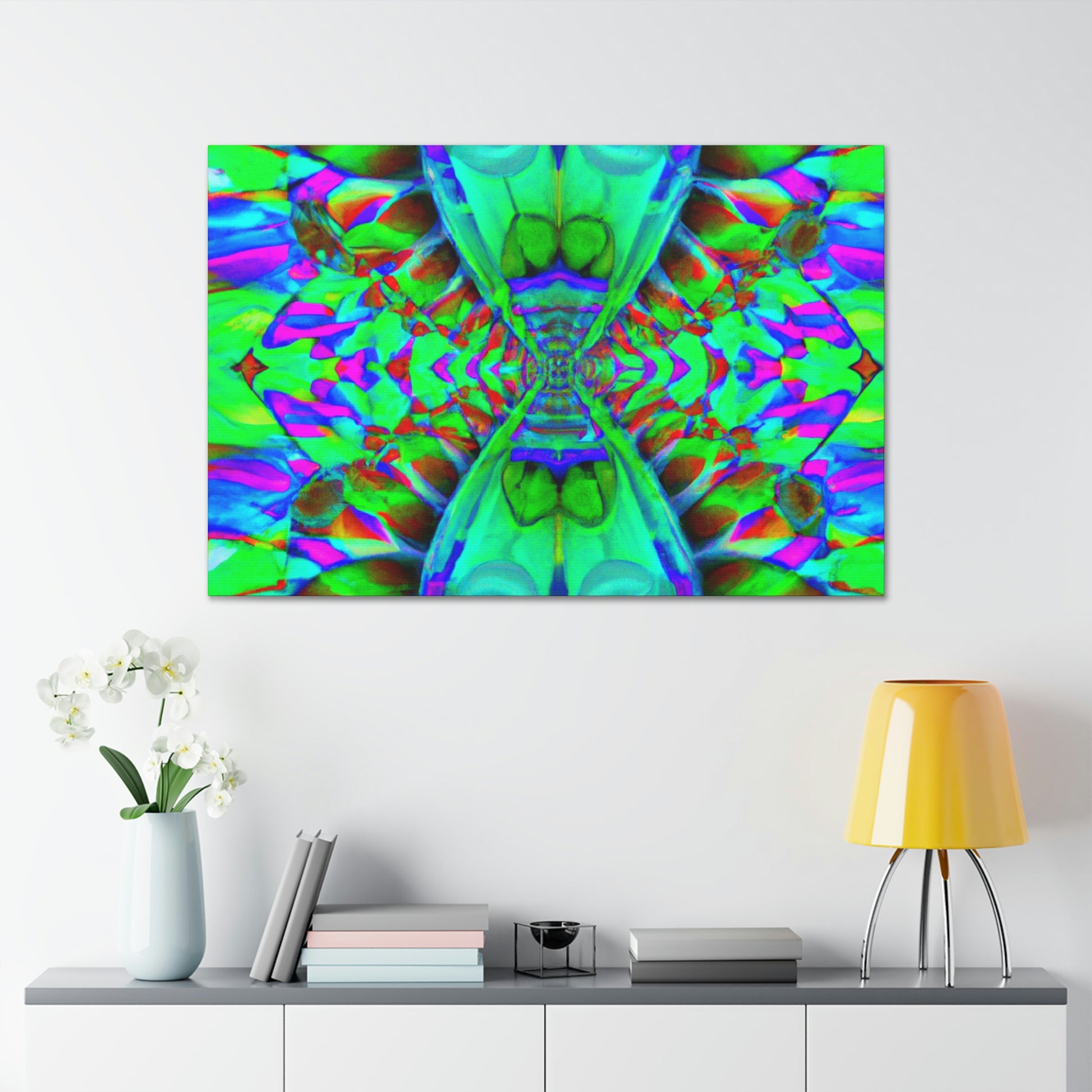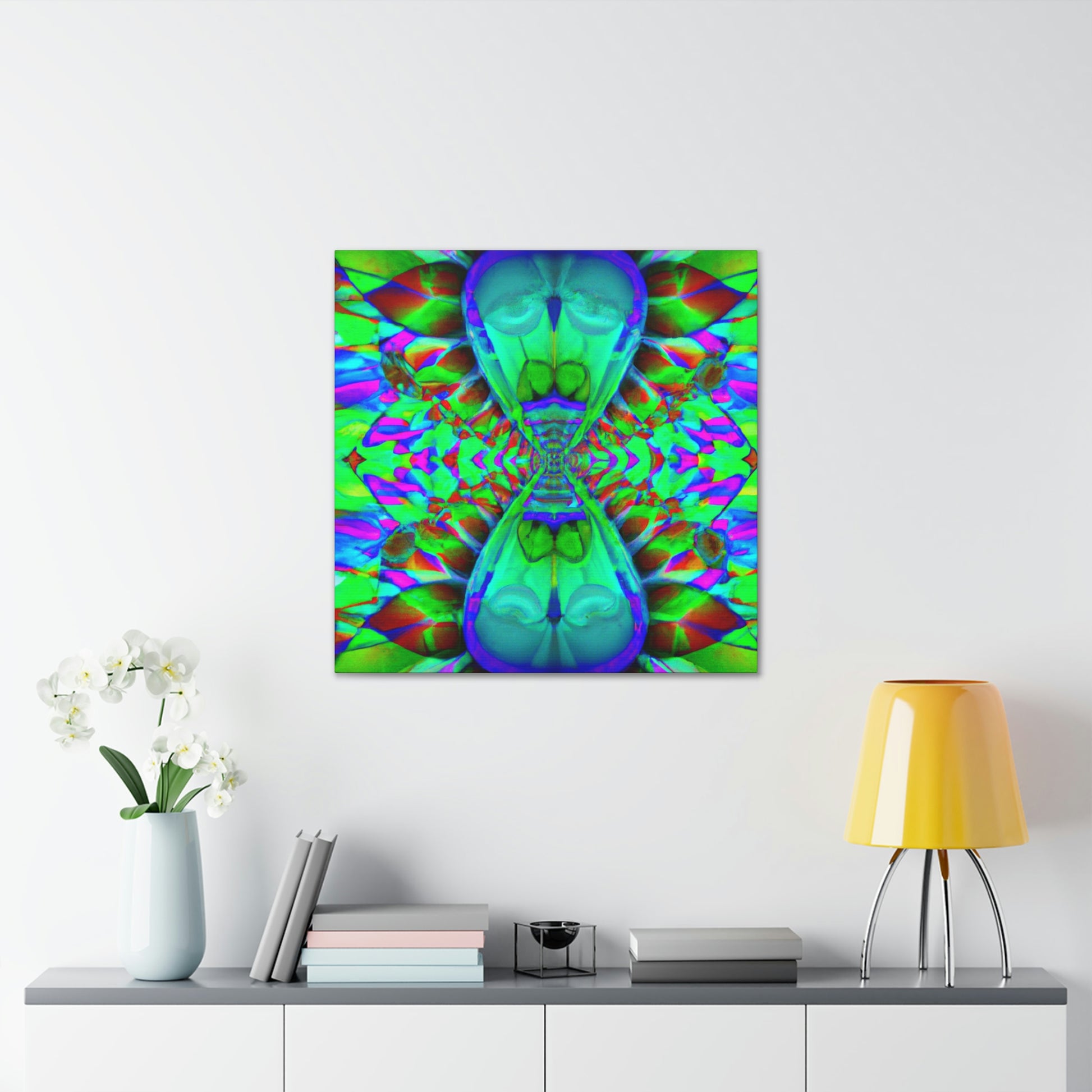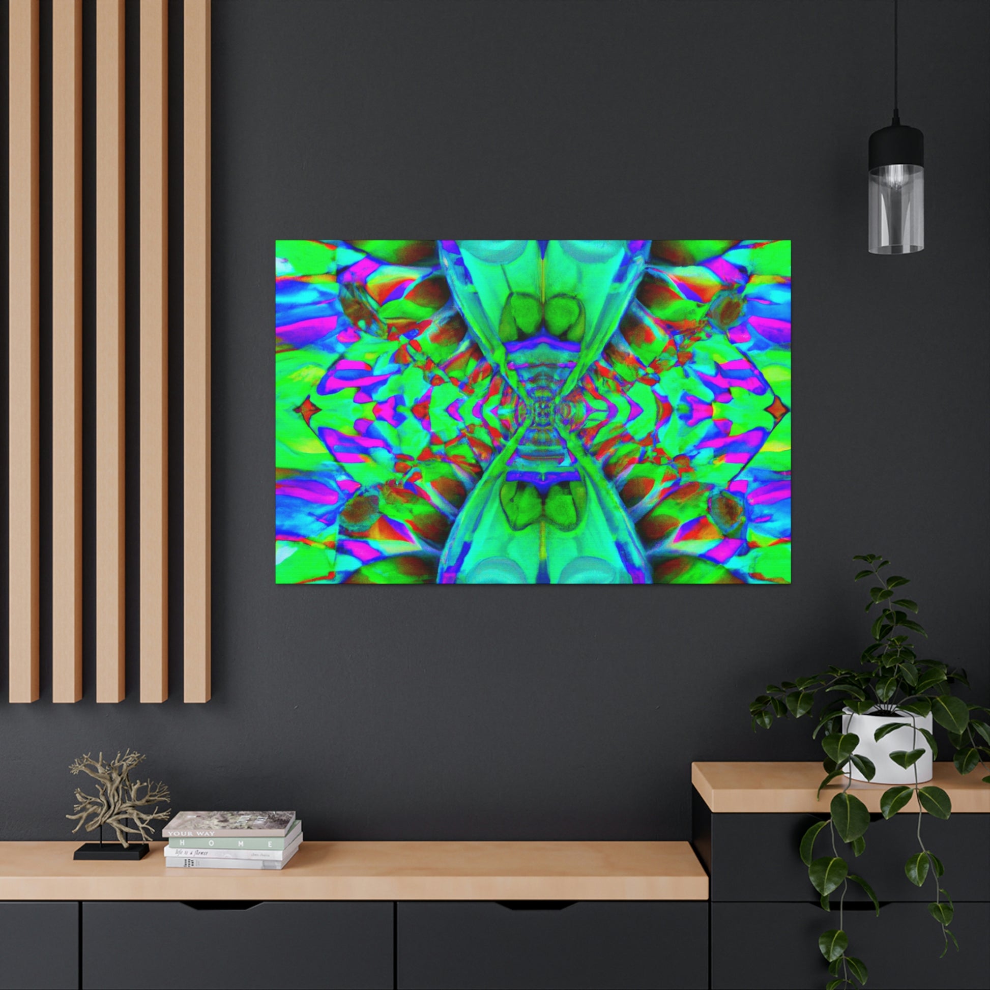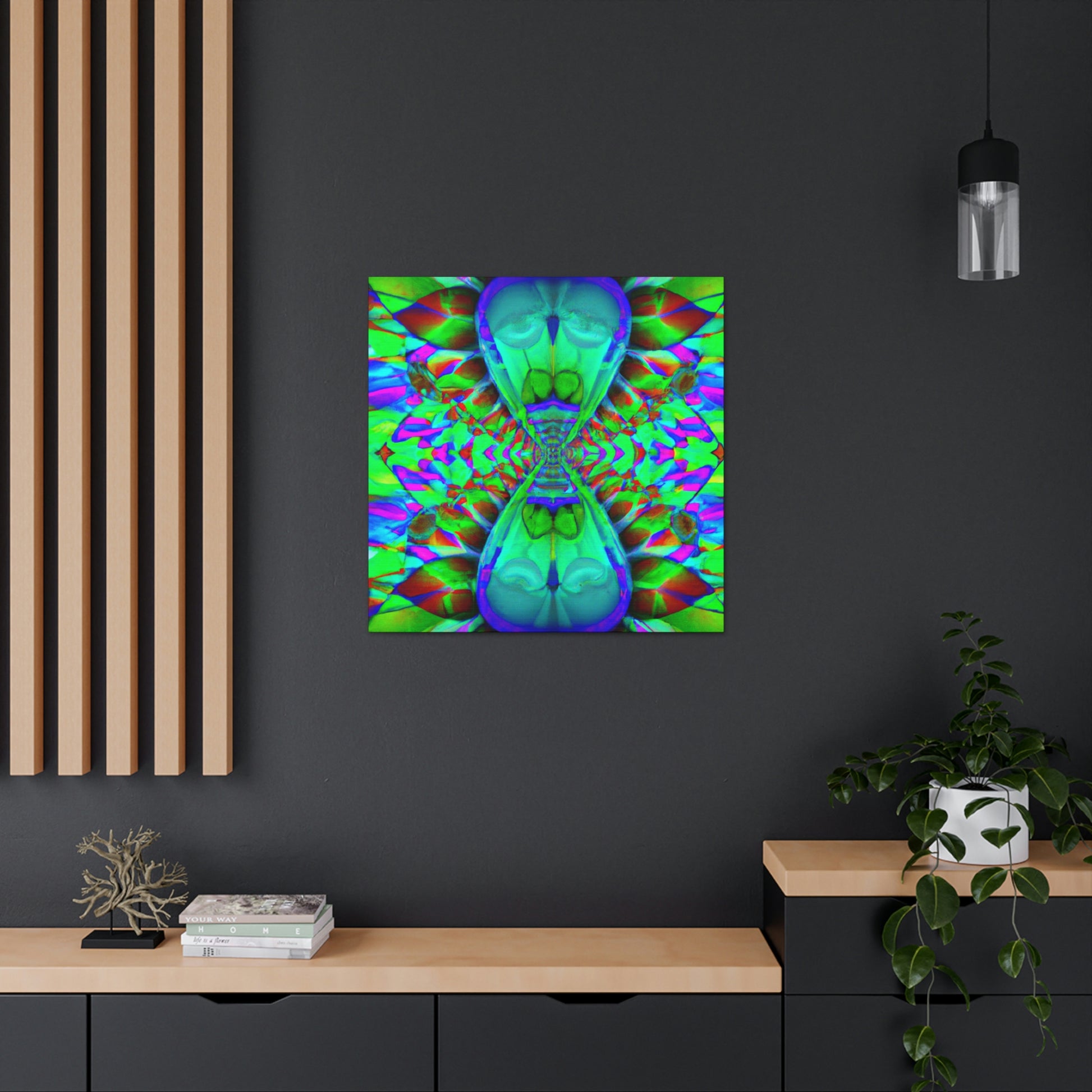 Vibrant colors and mesmerizing shapes, this original abstract and digital art canvas is sure to be a colorful talking point in any room. Showcasing trippy mushrooms in an intricate kaleidoscope with 3D lines adding dimension, this statement piece will brighten up any living space. #abstractart #trippy #mushroom #kaleidoscope #digitalart #vibrantcolors #3Dlines #art #statementpiece #canvas #homeaccessories