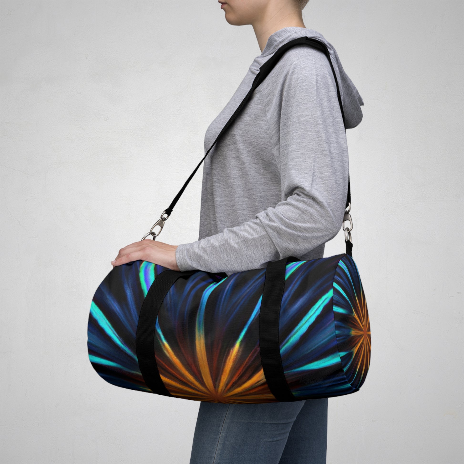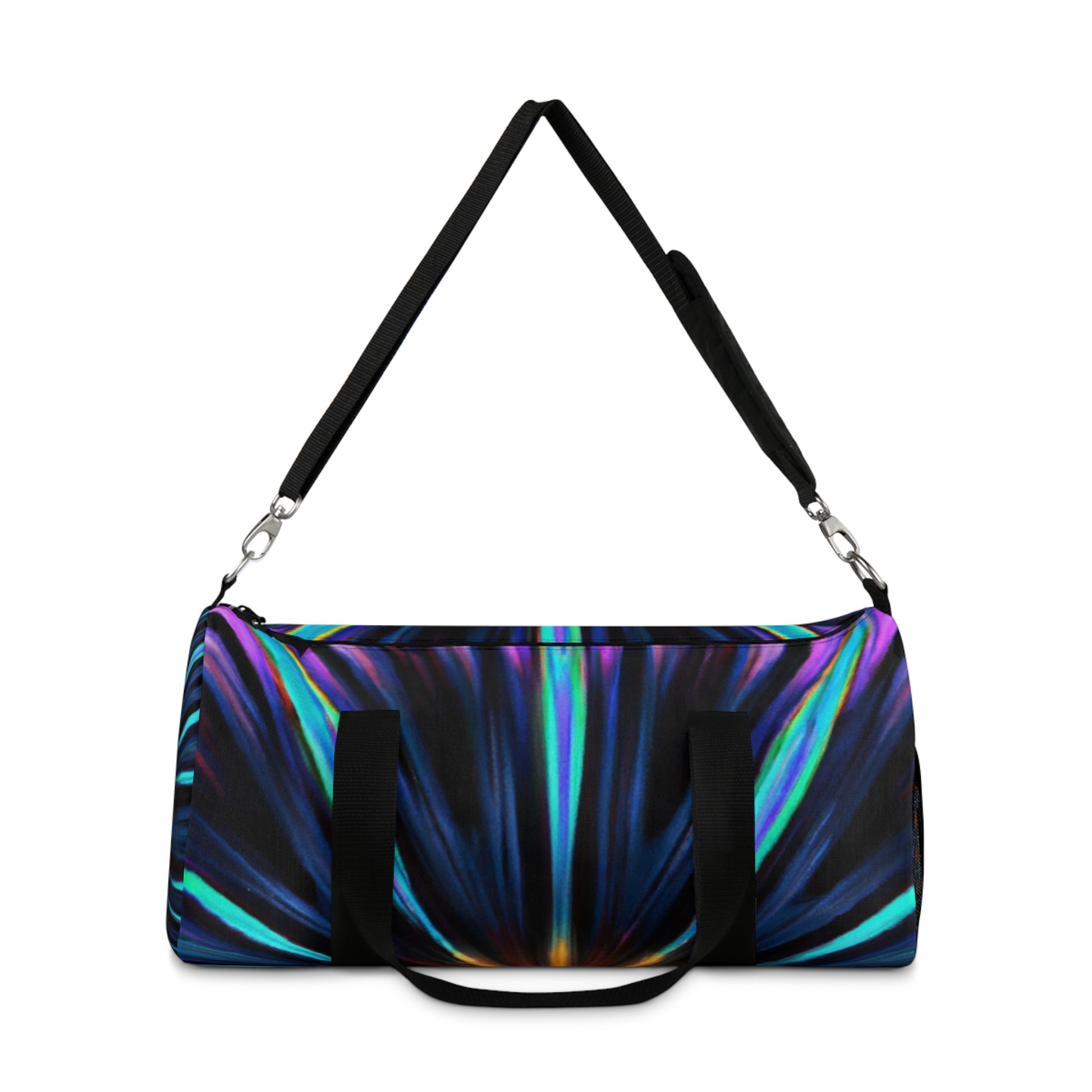 Our latest duffle bag is a true statement piece. Featuring trippy stars, kaleidoscope, abstract, digital art, and vibrant colors in 3D lines designs in bold shades, this is the perfect collaboration of modern, high-fashion and unique design. Create an unforgettable look and stand out from the crowd with this truly unique bag! #DuffleBag #UniqueDesigns #DigitalArt #TrippyStars #Kaleidoscope #Abstract #VibrantColors #3DLines #FashionStatement #ModernDesign #StandOut