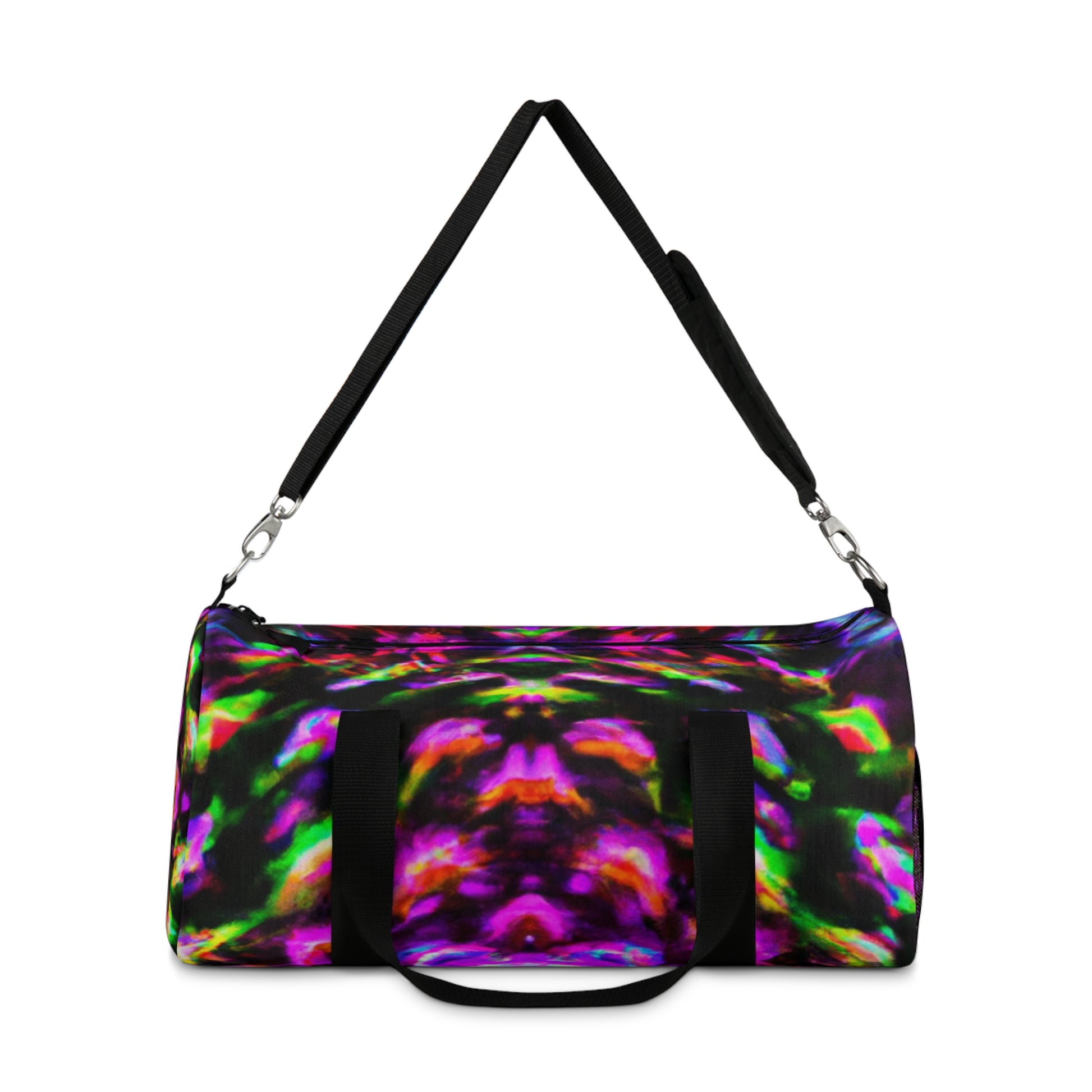 Durable and stylish - this dufflebag features an exciting, trippy design of abstract digital art, kaleidoscope shapes in neon colors and HD pineapple prints! Perfect for any occasion and sure to turn heads wherever you go. #duffelbag #pineapple #kaleidoscope #digitalart #abstract #neon #HD #print #colorful #style #fashion #trendy #durable #outdoorsy #sporty #comfortable #onpoint #statementpiece #cool #musthave #necessity #musthavestyle #trippydesign #stylishprint #neoncolors #hdpineapple #highdefinitiondesign #kaleidoscopeprint #abstractdigitalart