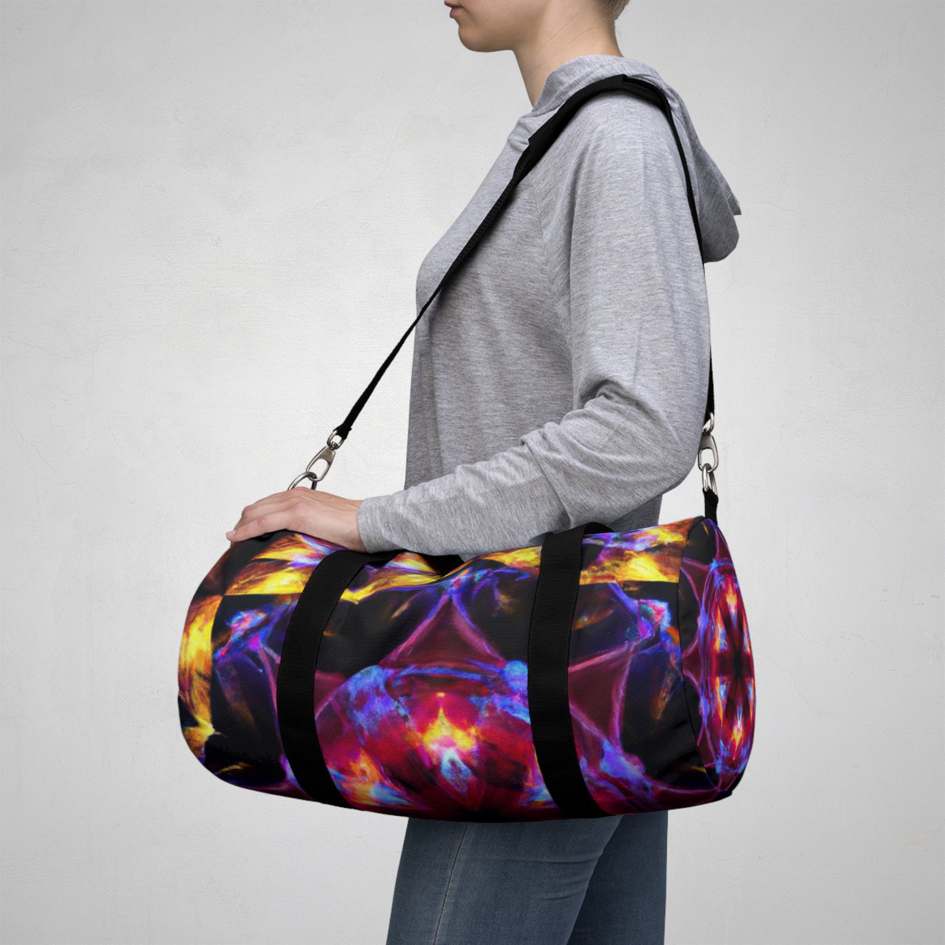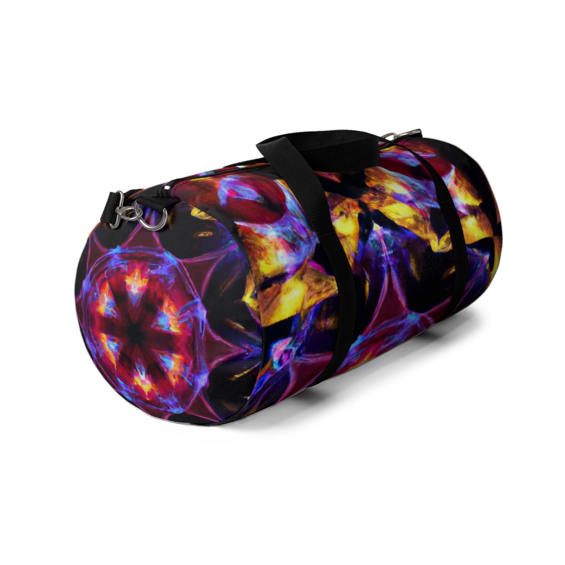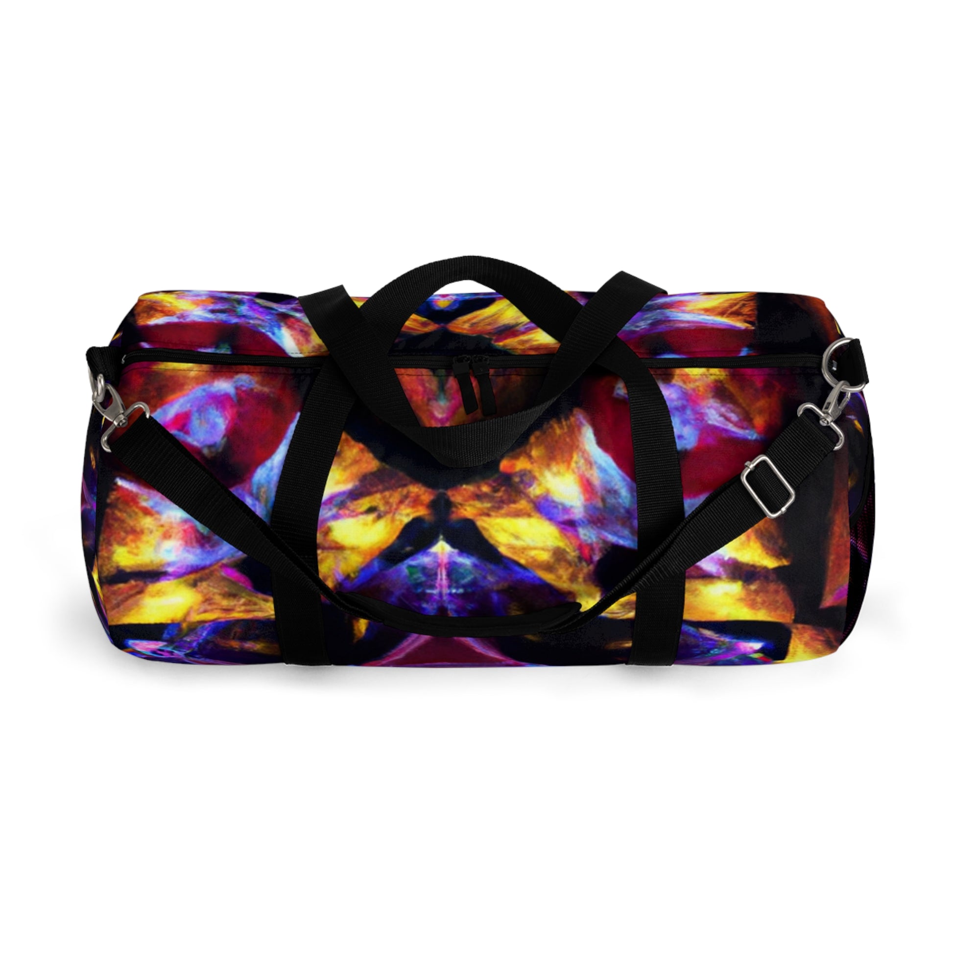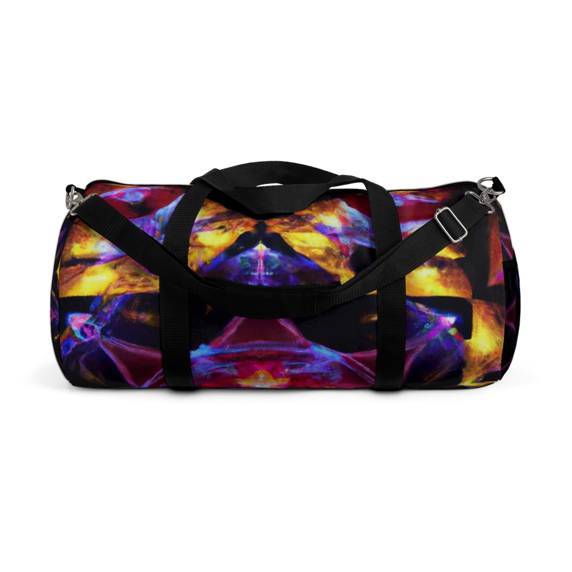 This vibrant dufflebag bears unique-looking and daring designs of Trippy stars, kaleidoscope, abstract, digital art, 3D lines and more. It is perfect for anyone who wants to stand out in the crowd and capture attention. The stark colors and lively patterns on this bag unite together to give a truly dynamic statement. #dufflebag #bags #style #trippystars #kaleidoscope #abstract #digitalart #3Dlines #style #vibrant #colors #lively #attention #capture #crowd #statement #dynamic #unify #daring #fashionable #modern #spacious #bag #travel #travelaccessory #unique #daring #trippy