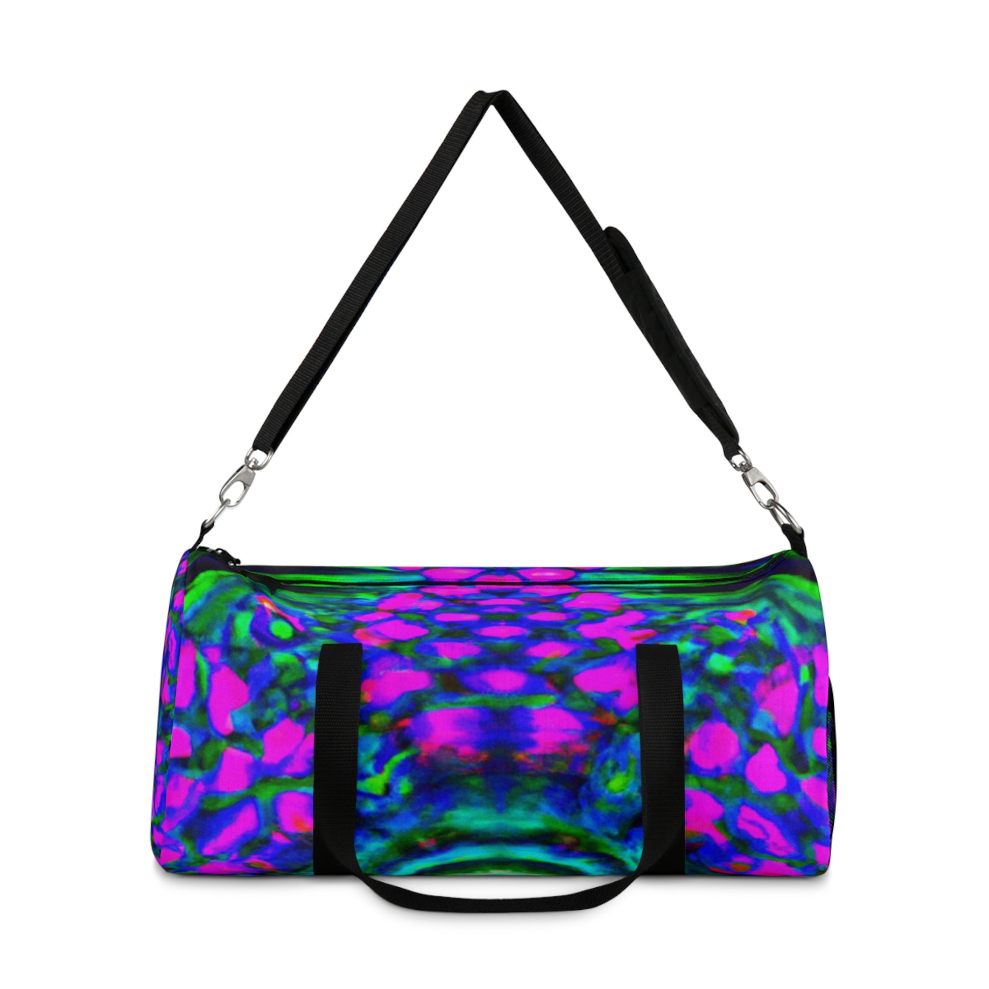 This hip duffle bag packs a punch of color and art! Featuring trippy pineapple, kaleidoscope, abstract, digital art, and neon colors in high-definition designs, this bag will have everyone turning heads. From the street to the gym, its easy to carry style and unique designs are perfect for making a statement. #dufflebag #neon #HD #pineapple #kaleidoscope #abstract #digitalart #neoncolors #style #statement #unique #easytocarry #trippy #onfleek #streetstyle #turnheads #gymstyle #artstyle #statementpiece #onpoint #bold #bagstyle #artsy #fashionable #trendy #colorsplash