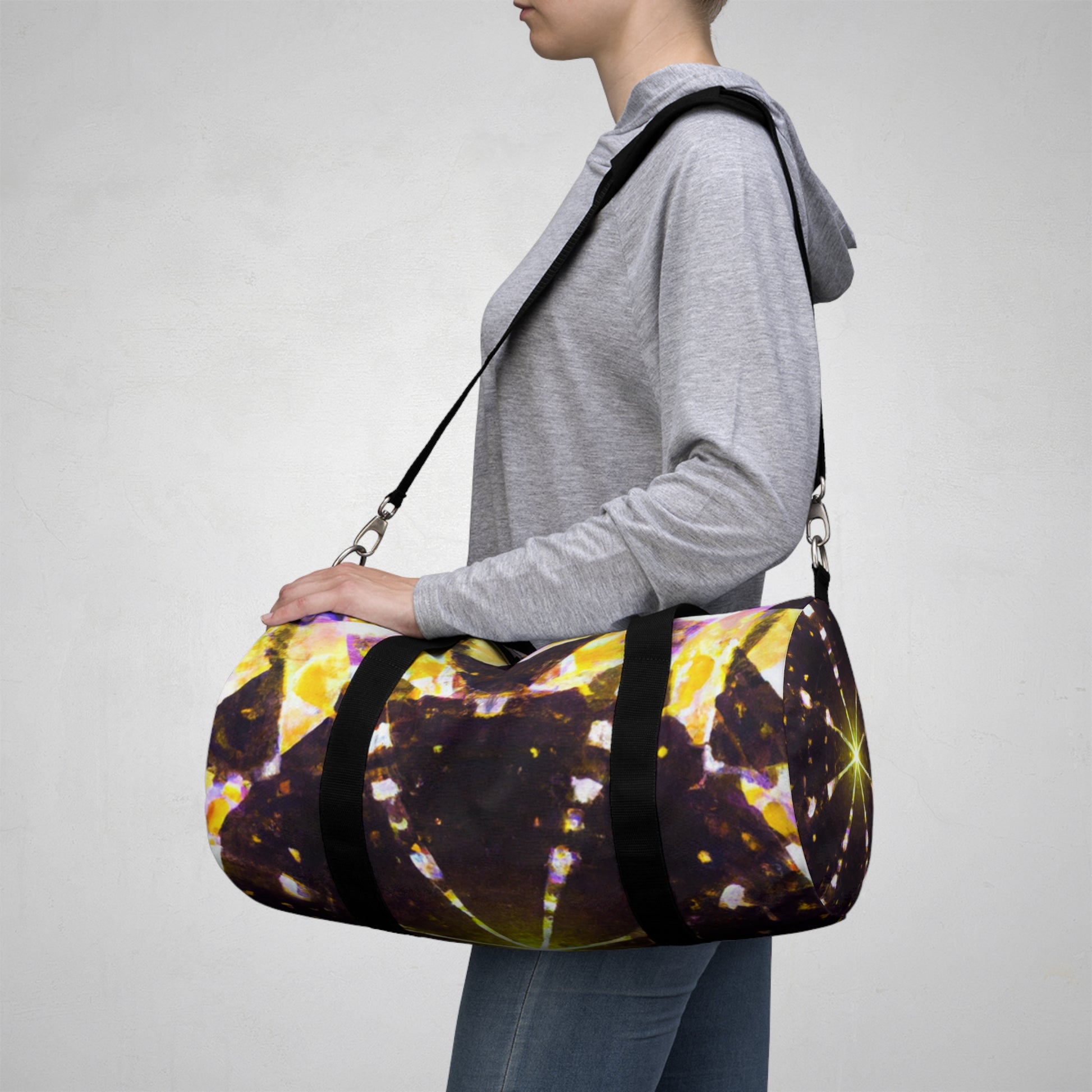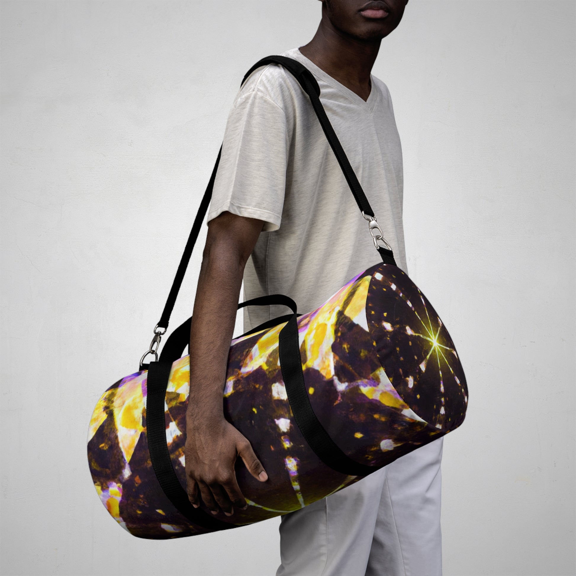 This stylish, trippy dufflebag is designed to stun! It features abstract, kaleidoscope, digital stars, and 3D lines set against vibrant colors. Perfect for the fashion-forward traveler that likes to be the life of the party. #travel #style #fashion#3D #stars #kaleidoscope #vibrant #abstract #design #bag #duffle #art #digitalart #trippy #trending #unique #luxury #accessory #everydaycarry #lightweight #durable #fun #casual #practical #quirky #awesome #multiuse #durable