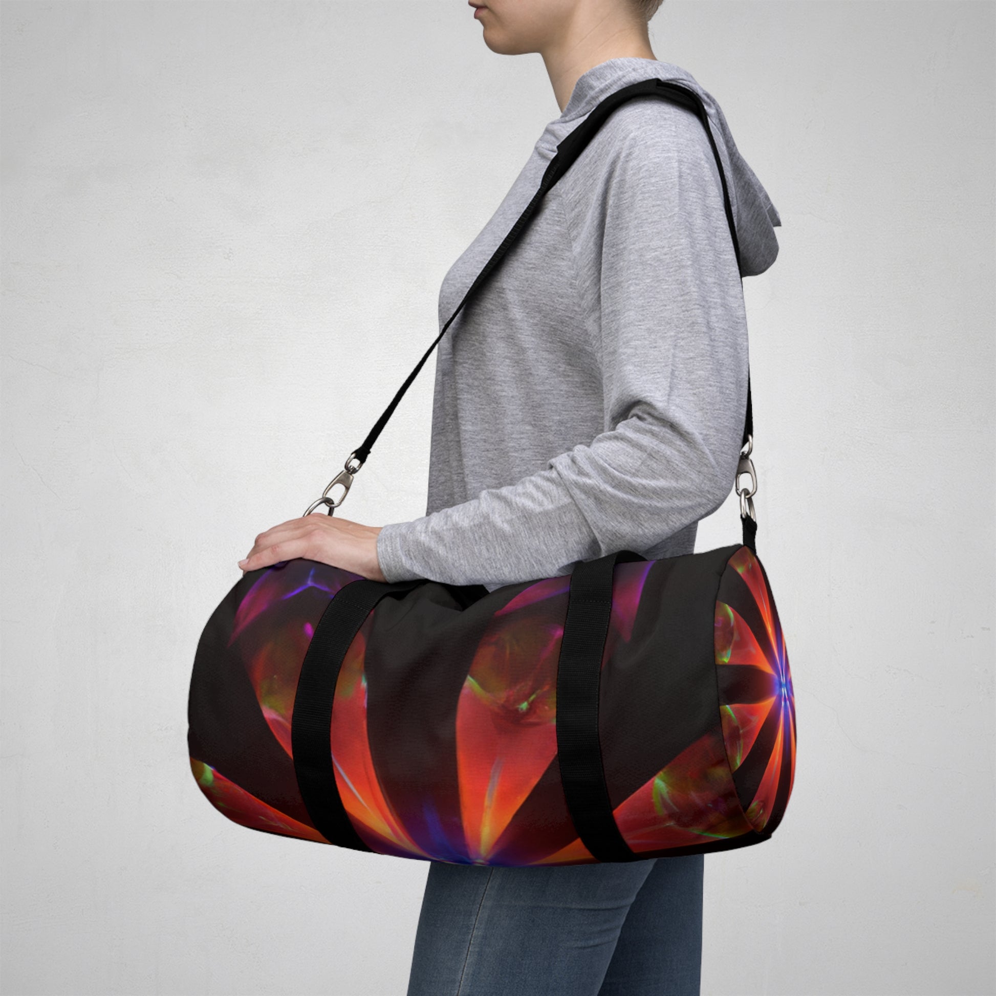 This dazzling duffel bag is perfect for everyday use! It features a bold and eye-catching design featuring trippy stars, kaleidoscope, abstract, digital art, and vibrant colors with 3D lines for an added dimension. The unique and stylish print will make you stand out wherever you go. This lightweight bag is perfect for travel, the gym, or just carrying your everyday items. #dufflebag #style #travel #3D #digitalart #vibrantcolors #art #kaleidoscope #trippystars #abstract #everydayitems #carrying #standout #gym #lightweight #unique #bold #eye-catching #3Dlines #travelbag #fashion #functional #durable #stylemeetsfunction #convenient #onpoint