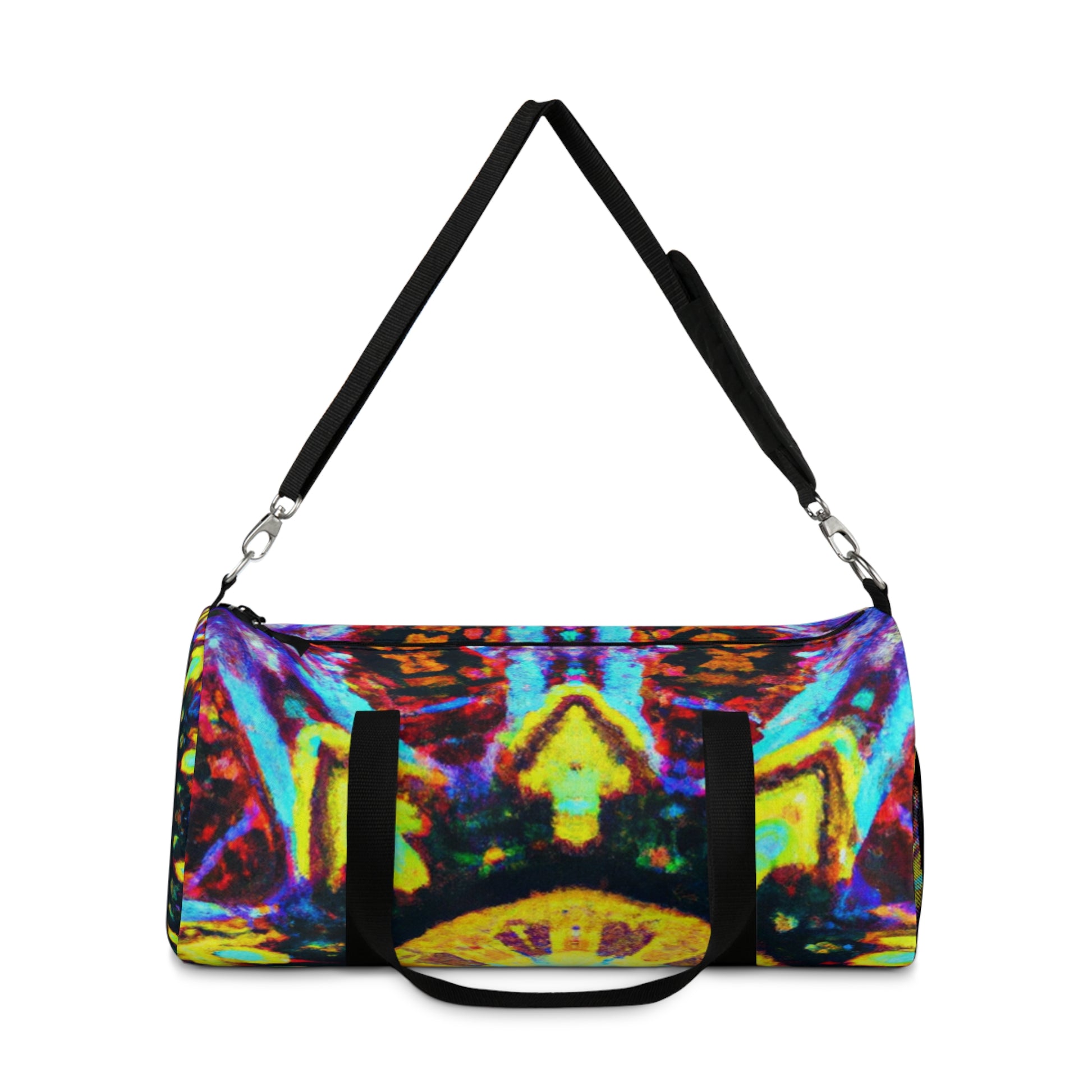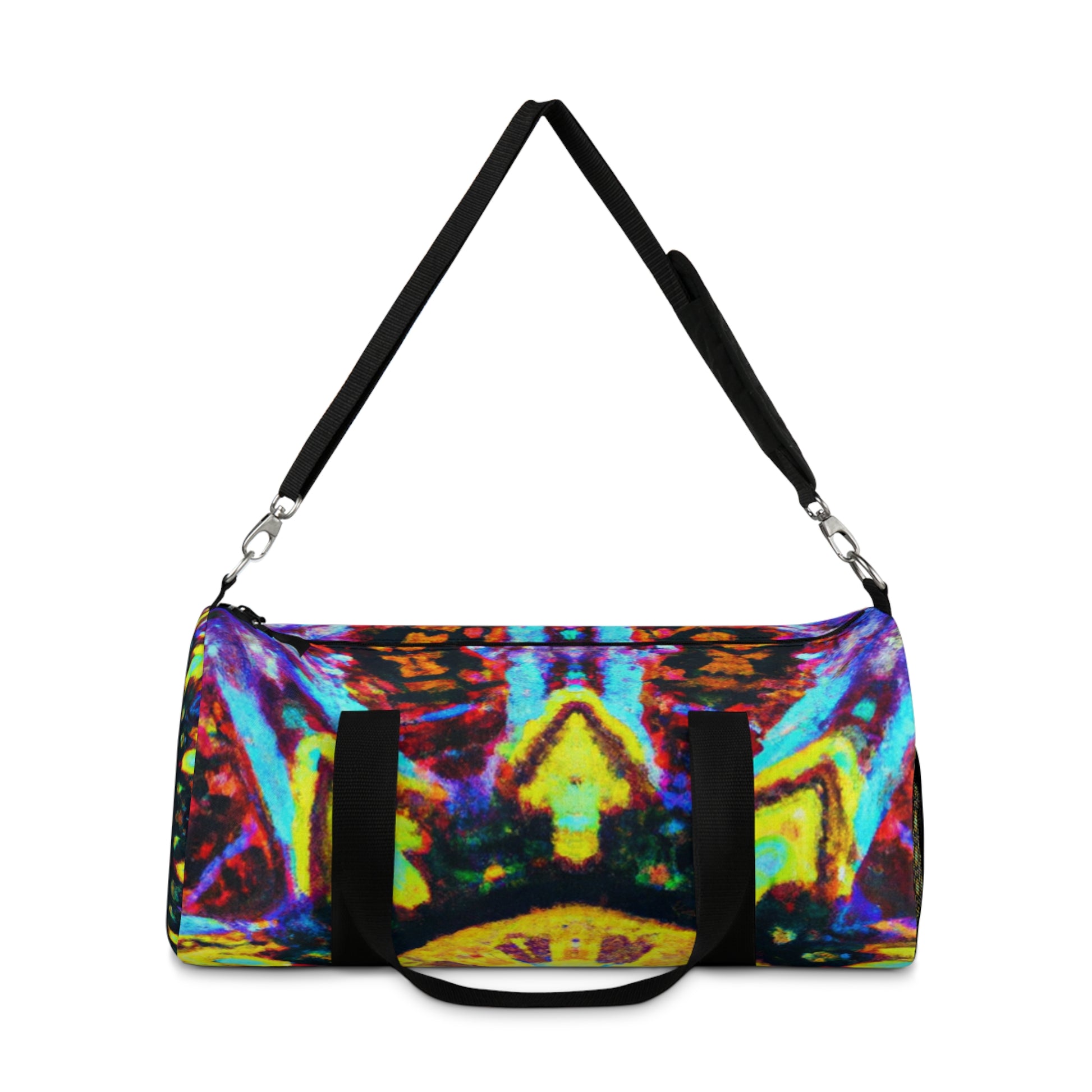 This unisex duffle bag is perfect for travel and adventure! The neon, eye-catching outer design features bold and vibrant colors, abstract digital art, trippy stars, kaleidoscope patterns, and 3D lines that will turn heads. The roomy interior will keep your belongings secure while you explore the world. Stay fashionable and organized with this vibrant duffle bag! #dufflebag #travelbag #fashionbag #patterns #abstract #kaleidoscope #trippy #stars #vibrant #3Dlines #colorful #digitalart #style #travel #unisex #style #durable #bag #fashion #style #Aesthetic #boldcolors #explorer #sportbag #adventure #organization #secure #vibrantbag