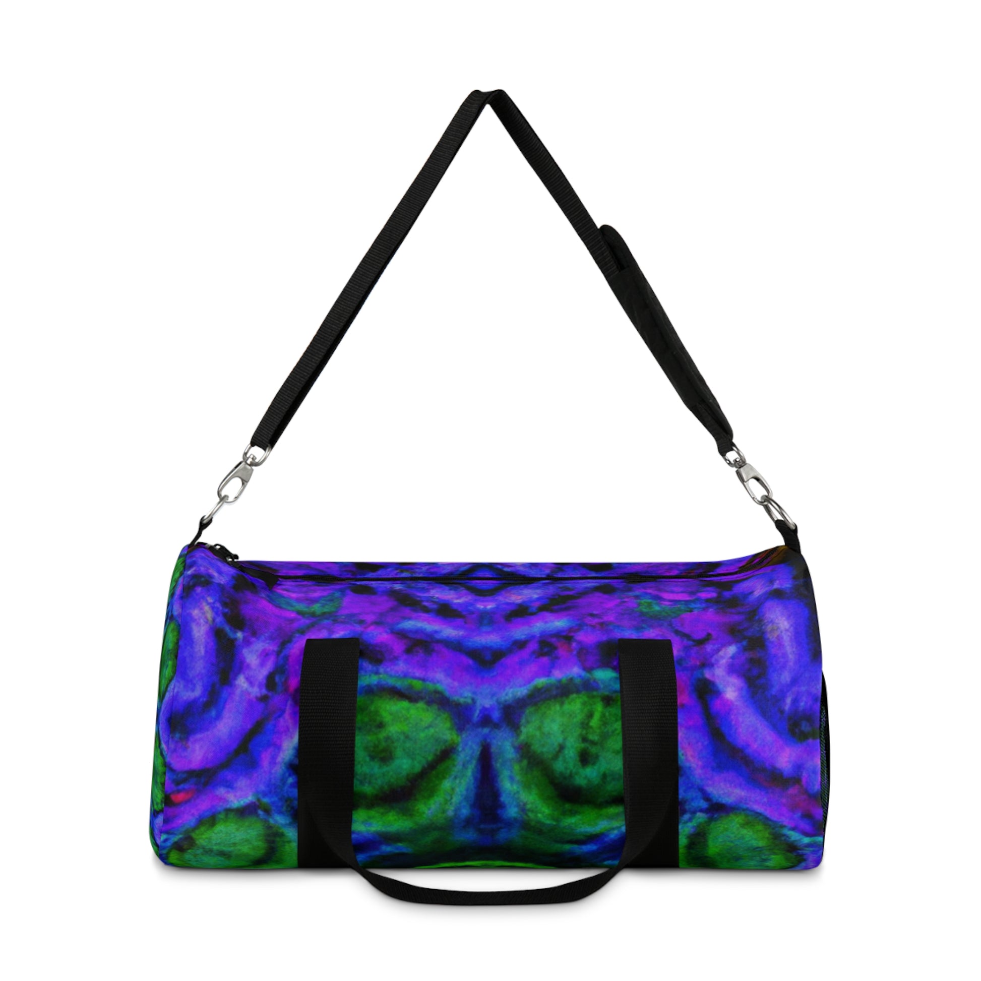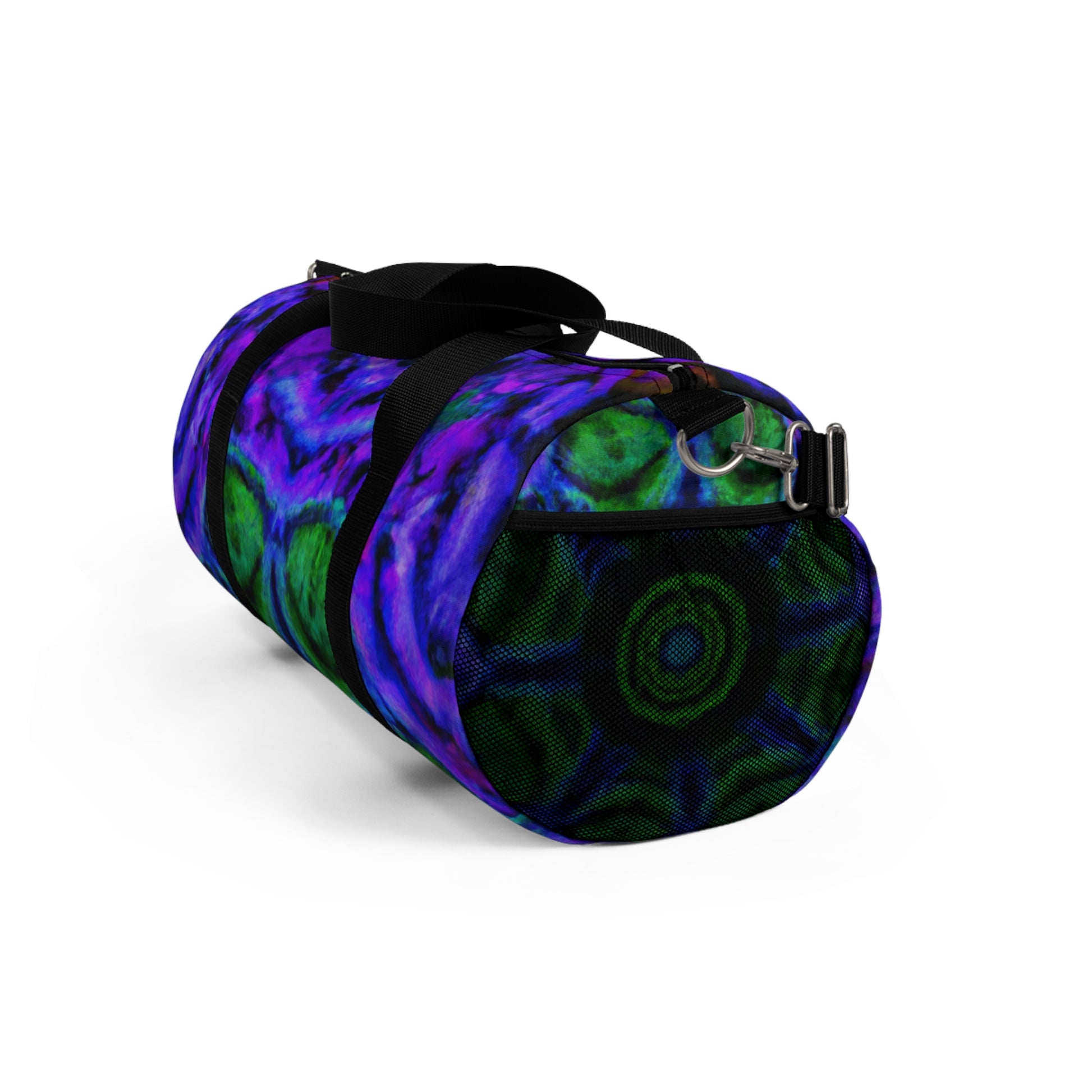 This bag is a work of art! This dufflebag features a trippy pineapple, kaleidoscope, abstract, digital art, neon colors, HD, designs, that will make you stand out. Get ready to make a statement wherever you go with this stylish and unique look. hashtags: #dufflebag #pineapple #kaleidoscope #abstract #digitalart #neoncolors #style #statement #fashion #unique #art #highdefinition #HD #trippy #brightcolors #waves #patterns #vibrant #standout #details #bags #trendy #shopping #rugged #durable #longlasting #quality #travel #trippyandtrendy