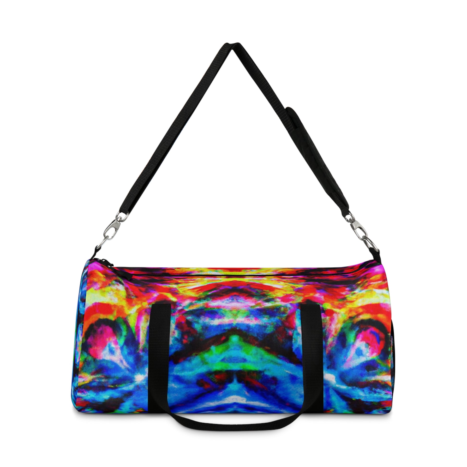 This vibrant dufflebag is sure to light up your wardrobe! Featuring vibrant, neon colors, trippy pineapple, kaleidoscope, abstract, digital art, and HD designs, this dufflebag will definitely make you stand out from the crowd! #style #digitalart #neoncolors #dufflebag #iconic #kaleidoscope #vibrant #trippy #abstract #HD #art #uniquestyle #punkstyle #neonvibes #styleinspo #pineapple #accessories #outfitideas #travelbag #styleblogger #trendy #fashionstatement #musthave #brightcolors #classy #voguish #outfitoftheday #specialdesign #dufflebagstyle #classic