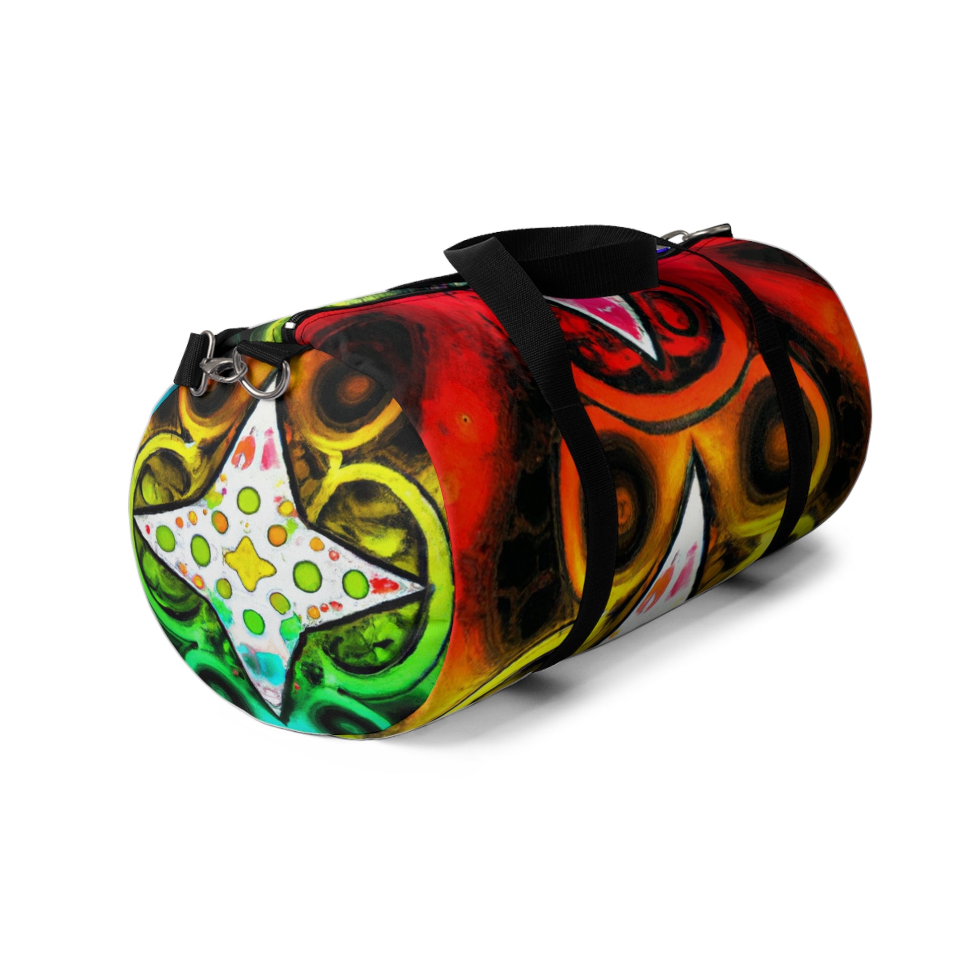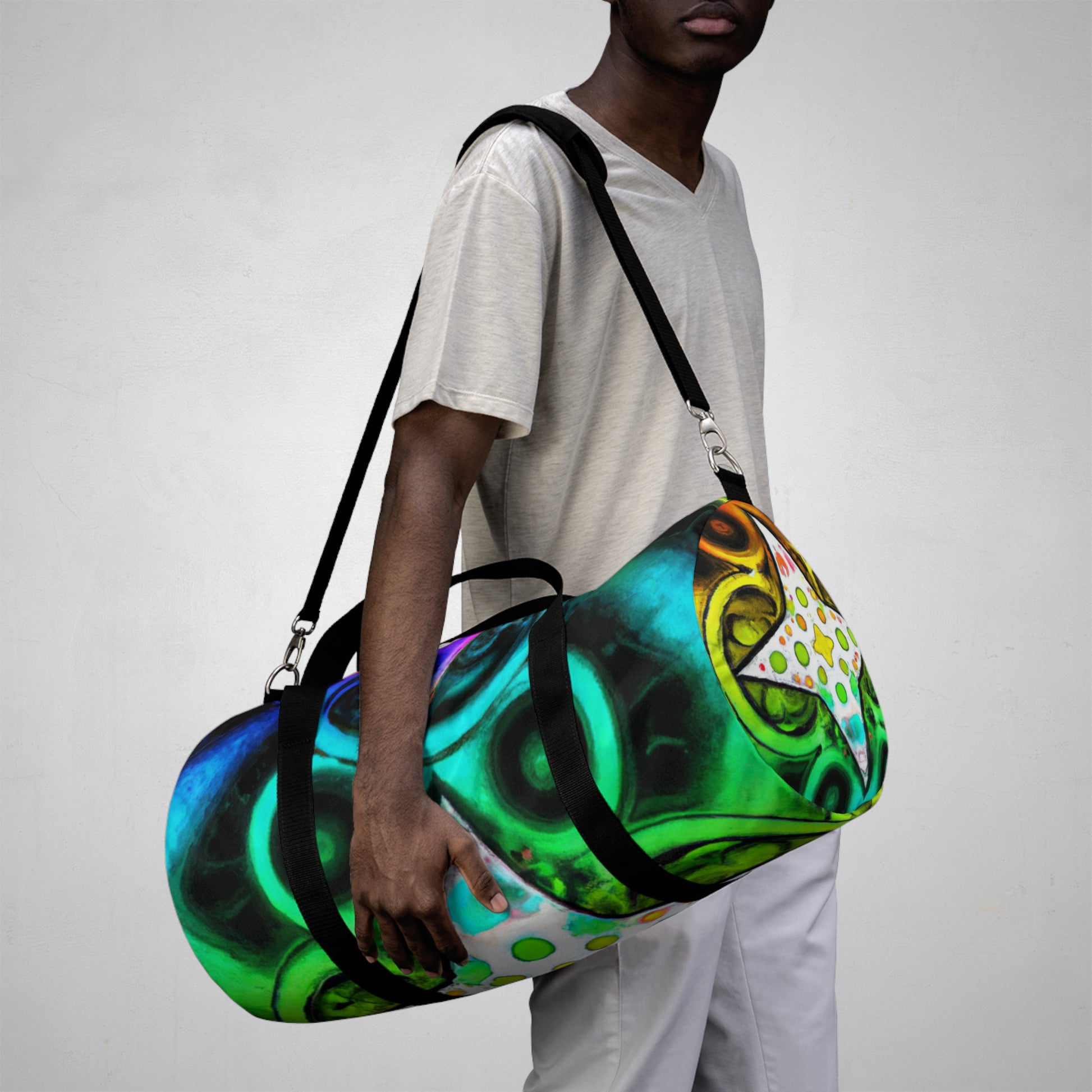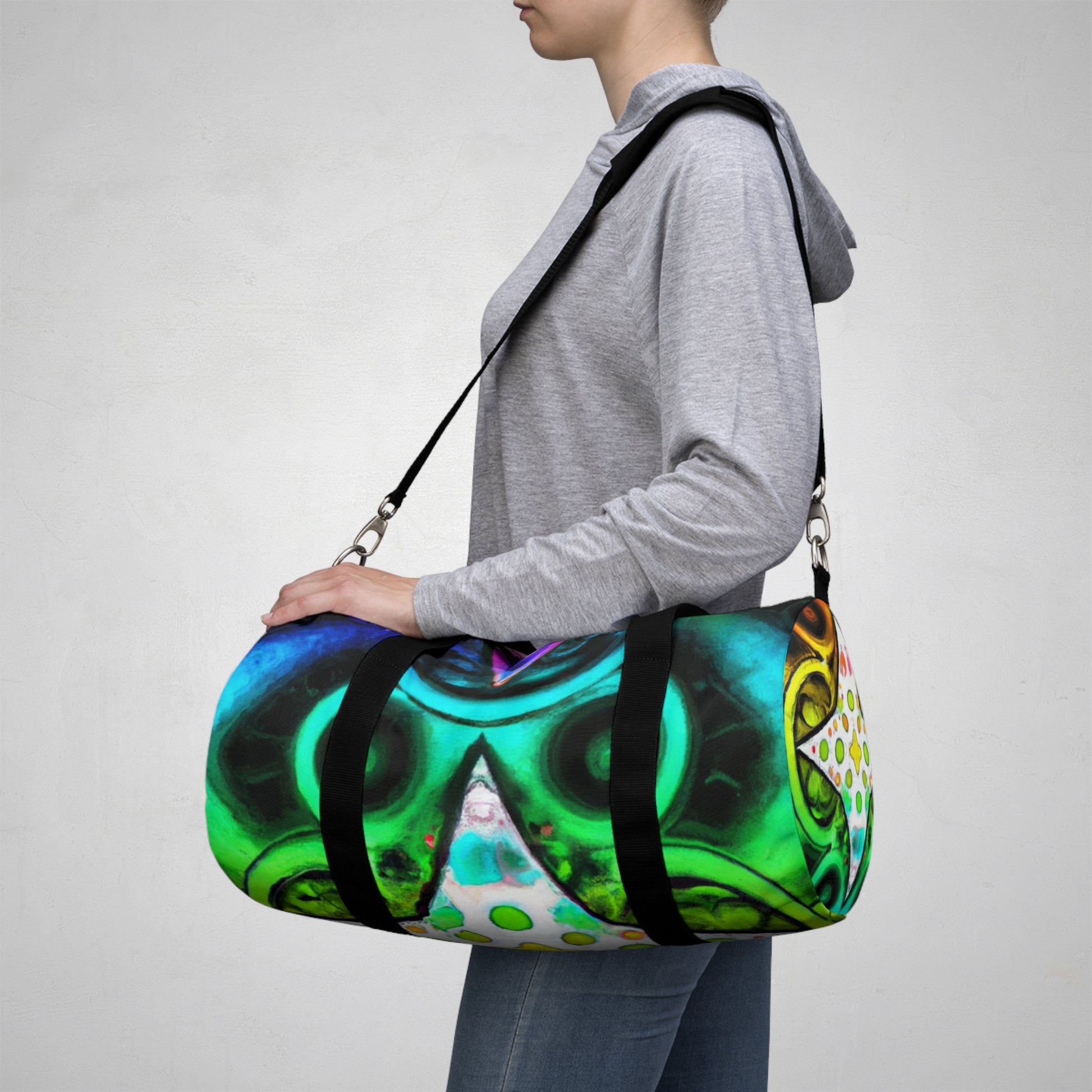 This dufflebag is perfect for making a statement! It really stands out with its unique artistic design featuring trippy stars, kaleidoscope shapes, abstract and digital art, vibrant colors, and 3D lines. It's sure to turn heads on the go and make you feel like you can express yourself. #duffelbag #digitalart #style #statementpiece #unique #3D #trippy #stars #kaleidoscope #abstract #vibrantcolors #artistic #fashionable #travel #aqua #loud #colorful #blue #onpointstyle #lounging #dynamic #mood #fun #different #hip #multidimensional #styleandcomfort #carryall