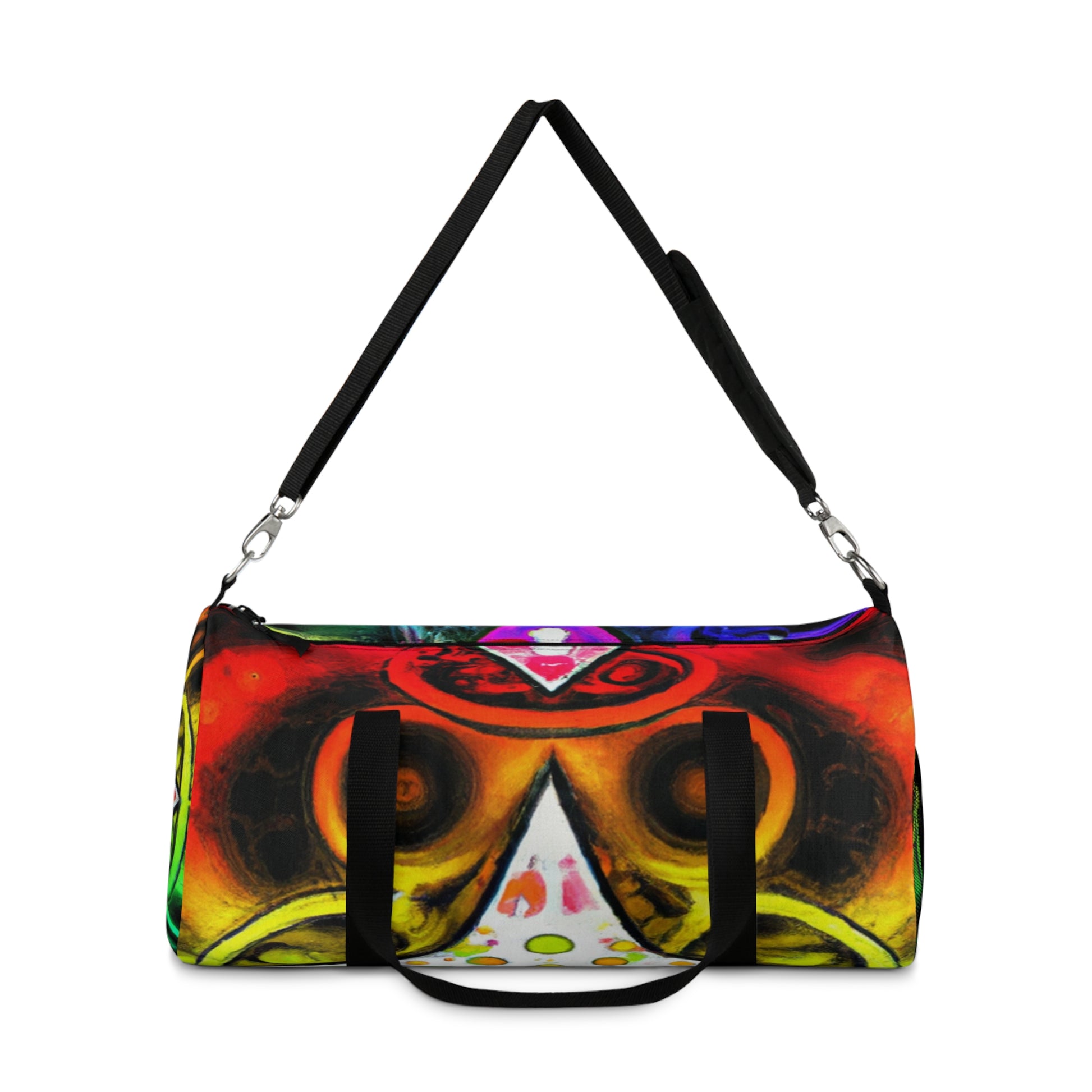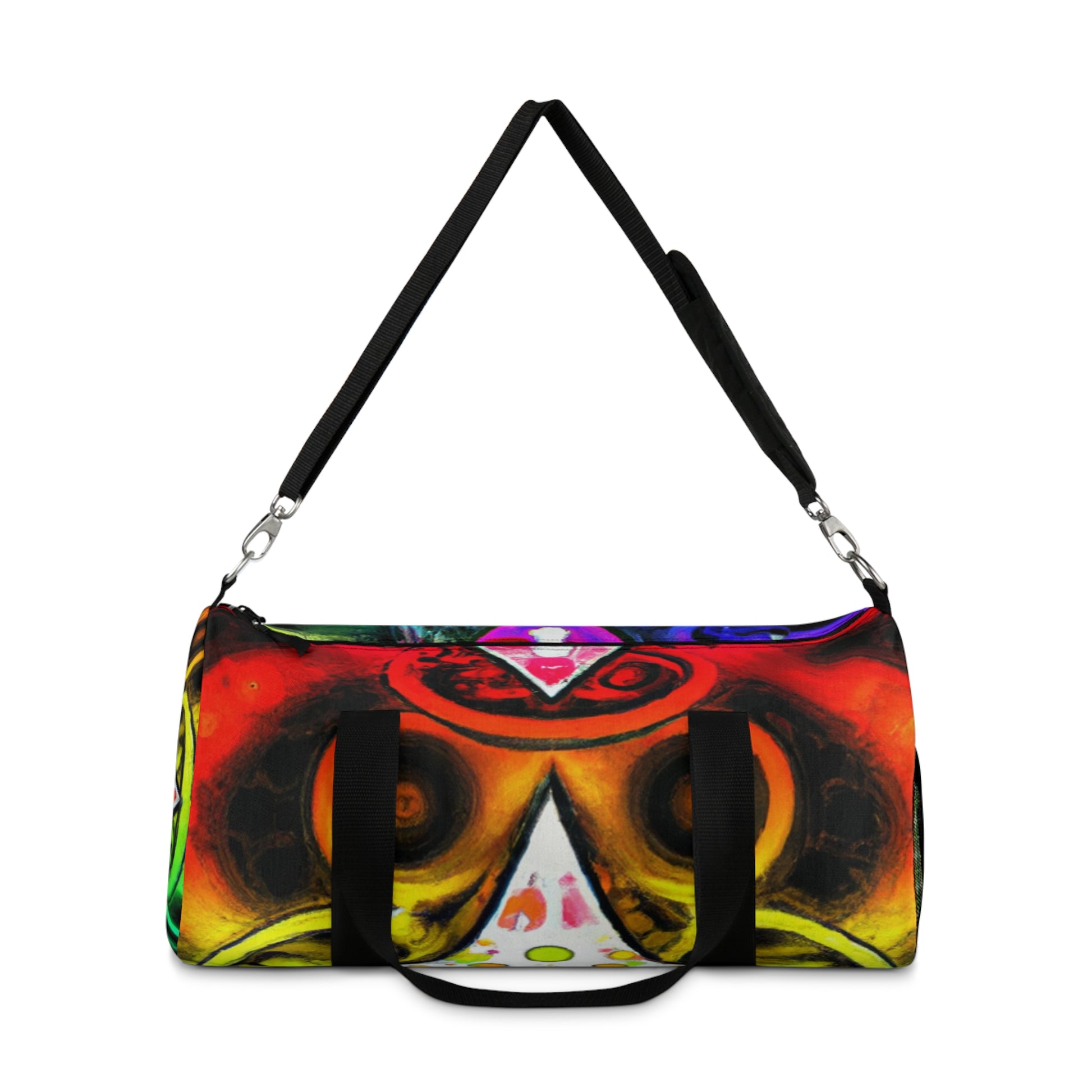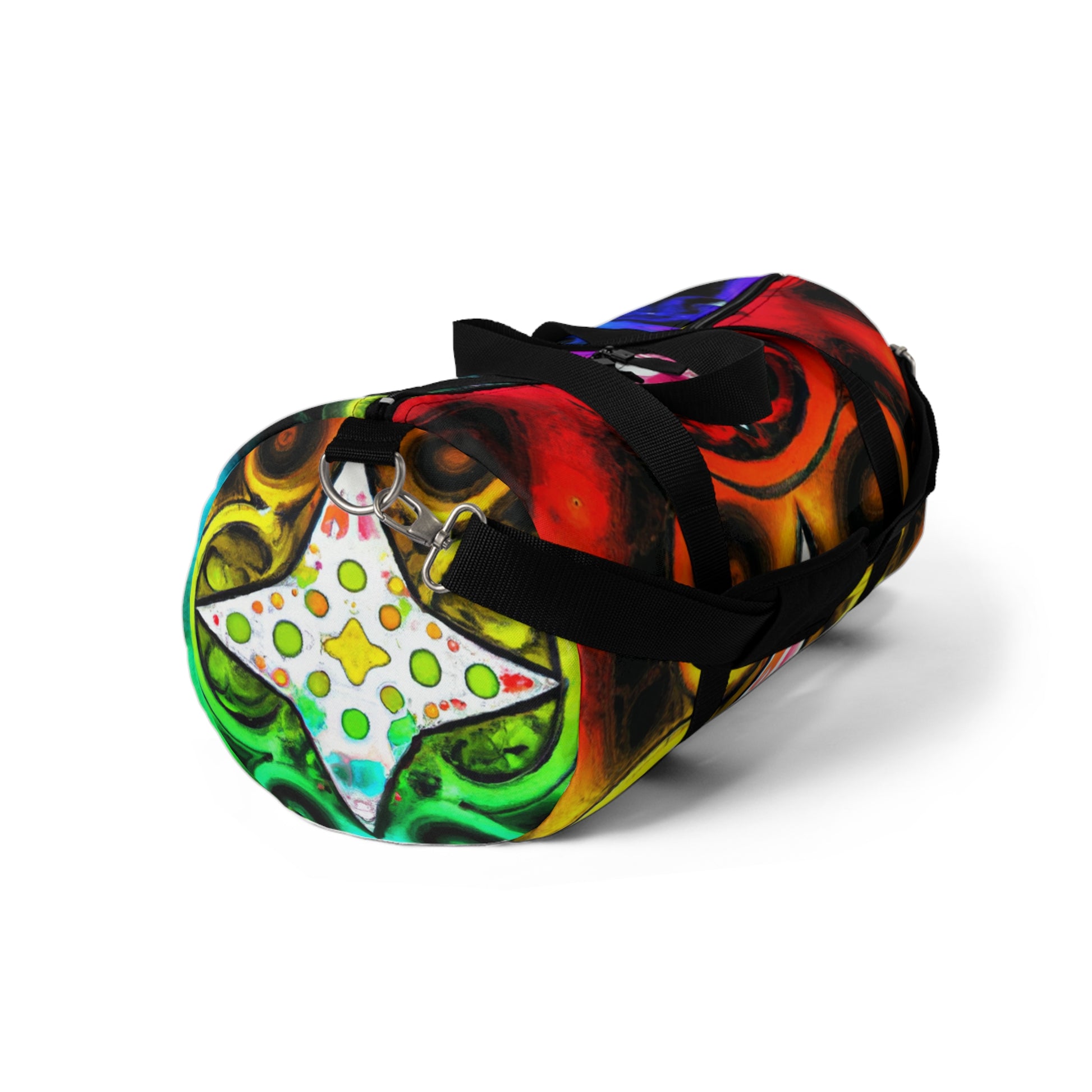 This dufflebag is perfect for making a statement! It really stands out with its unique artistic design featuring trippy stars, kaleidoscope shapes, abstract and digital art, vibrant colors, and 3D lines. It's sure to turn heads on the go and make you feel like you can express yourself. #duffelbag #digitalart #style #statementpiece #unique #3D #trippy #stars #kaleidoscope #abstract #vibrantcolors #artistic #fashionable #travel #aqua #loud #colorful #blue #onpointstyle #lounging #dynamic #mood #fun #different #hip #multidimensional #styleandcomfort #carryall