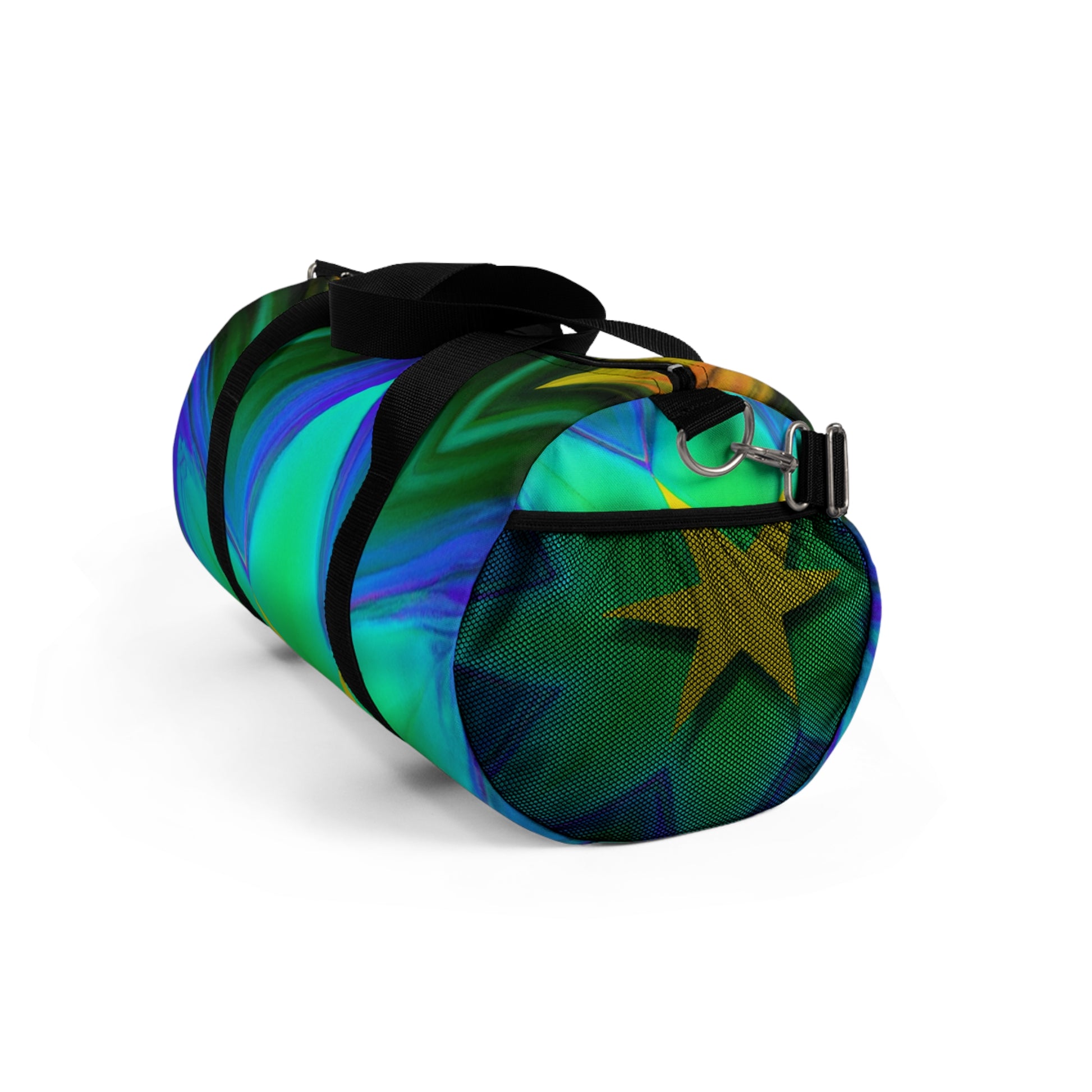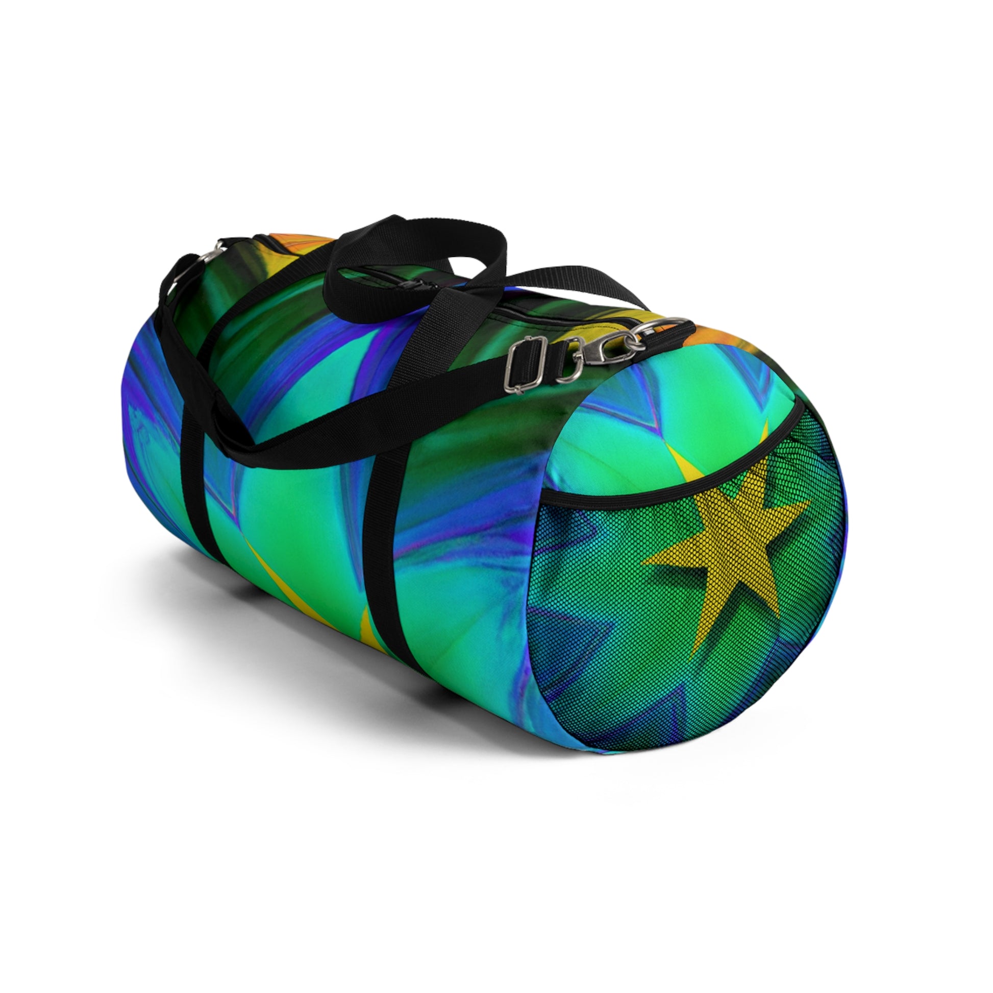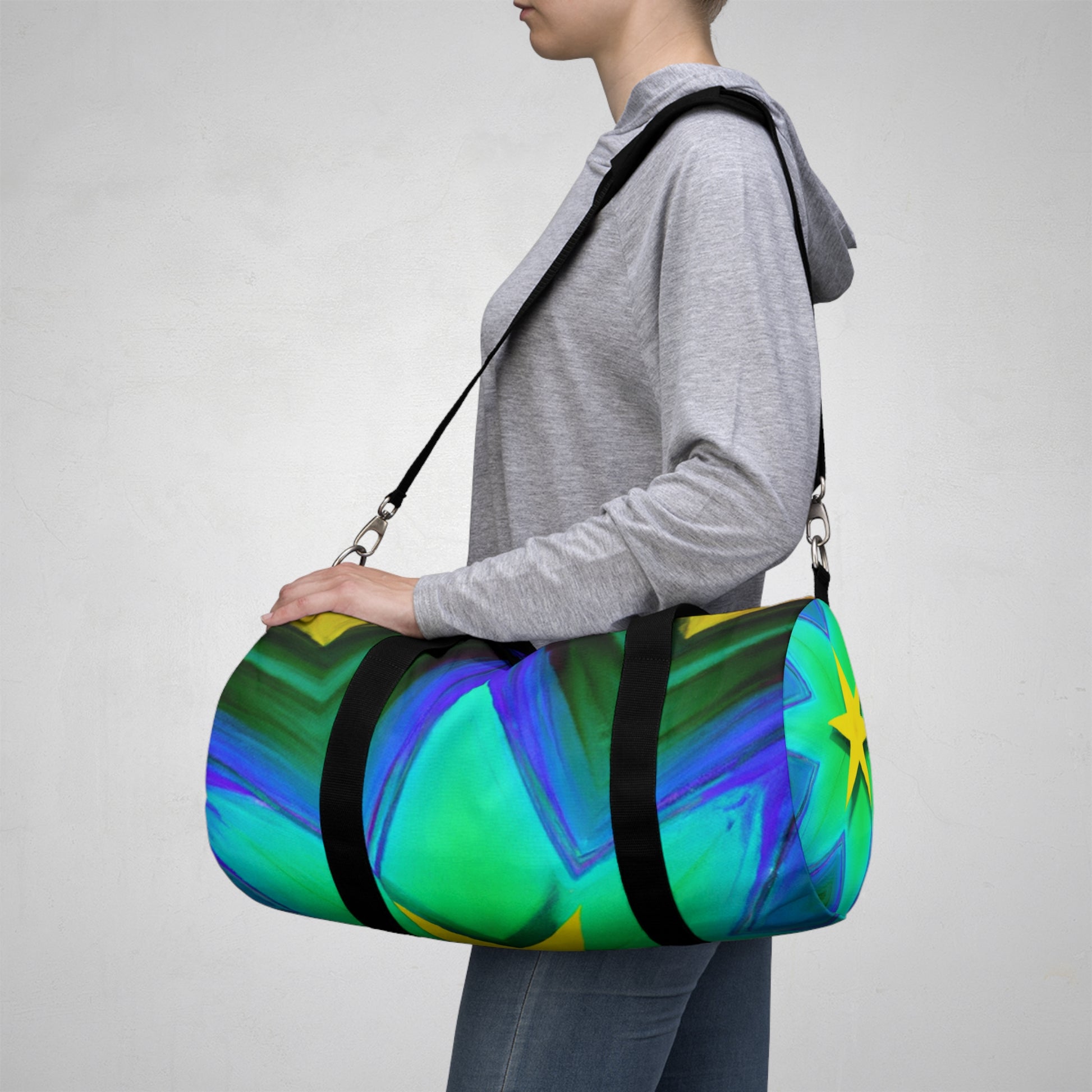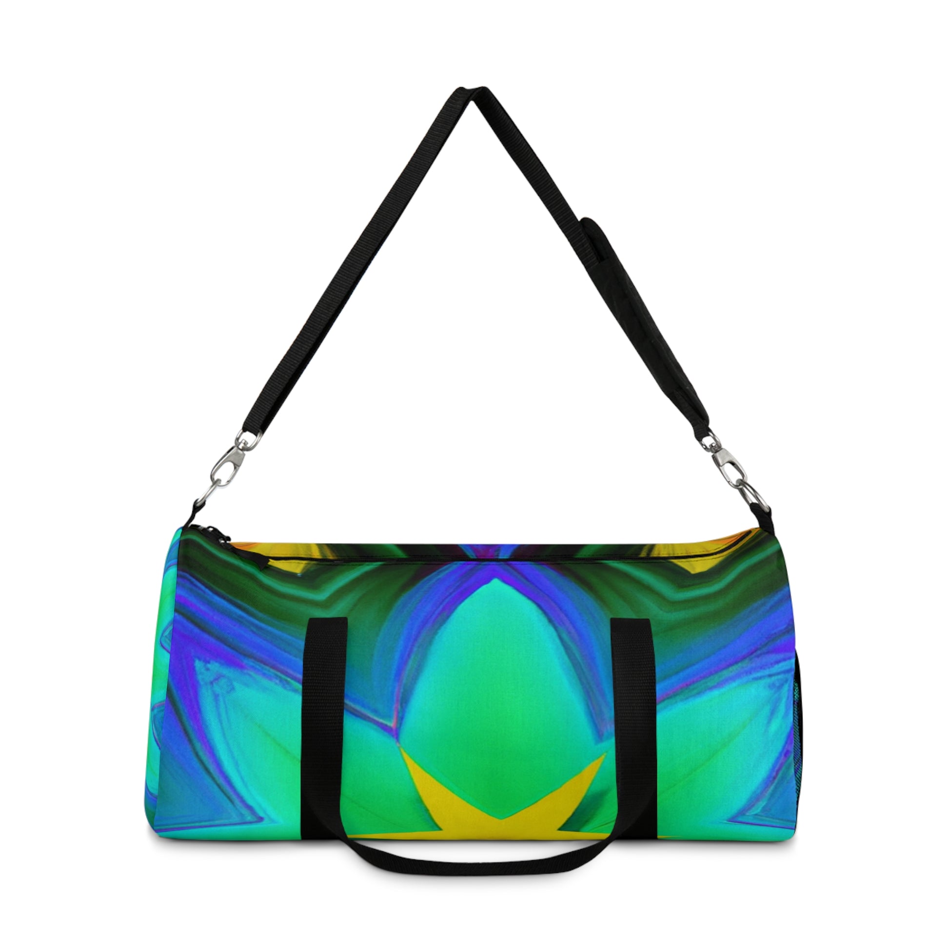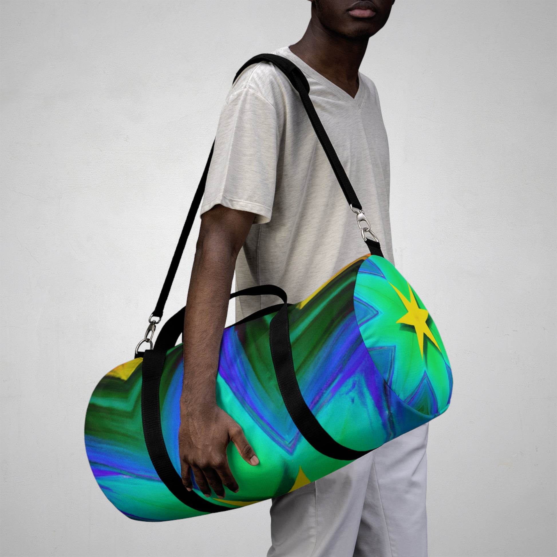 This bag is sure to turn heads! It features Trippy stars, kaleidoscope, abstract, digital art, and vibrant colors along with 3D lines designs, for a totally unique look. Its spacious and lightweight design allows you to bring your essentials anywhere. Get ready to make a bold statement each time you go out with this amazing dufflebag! #trippystars #kaleidoscope #abstract #digitalart #vibrantcolors #3Dlinesdesigns #dufflebag #statementpiece #spacious #lightweight #unique #fashionable #boldlook #funandfunctional #outdoorsy #durable #stylemeetsfunction #musthave #styleicon #getnoticed #bohemian #casualchic #accessorizewithstyle #trendy #trendsetter #highendfashion #streetfashion