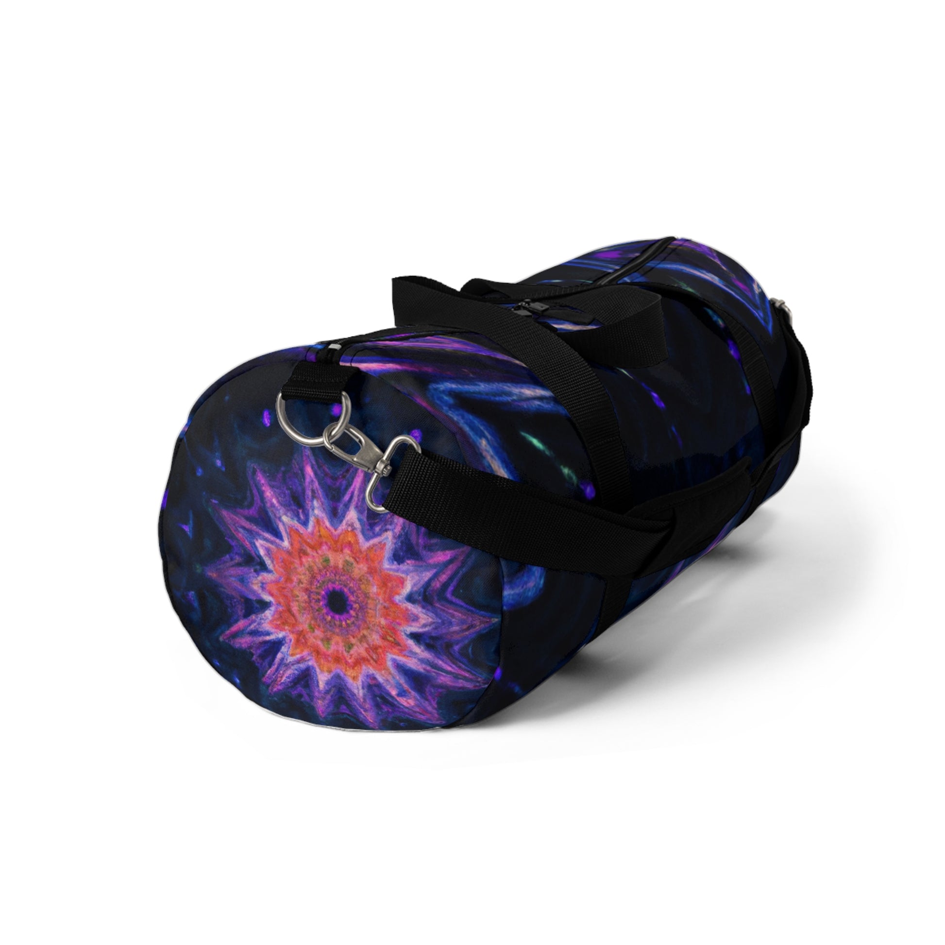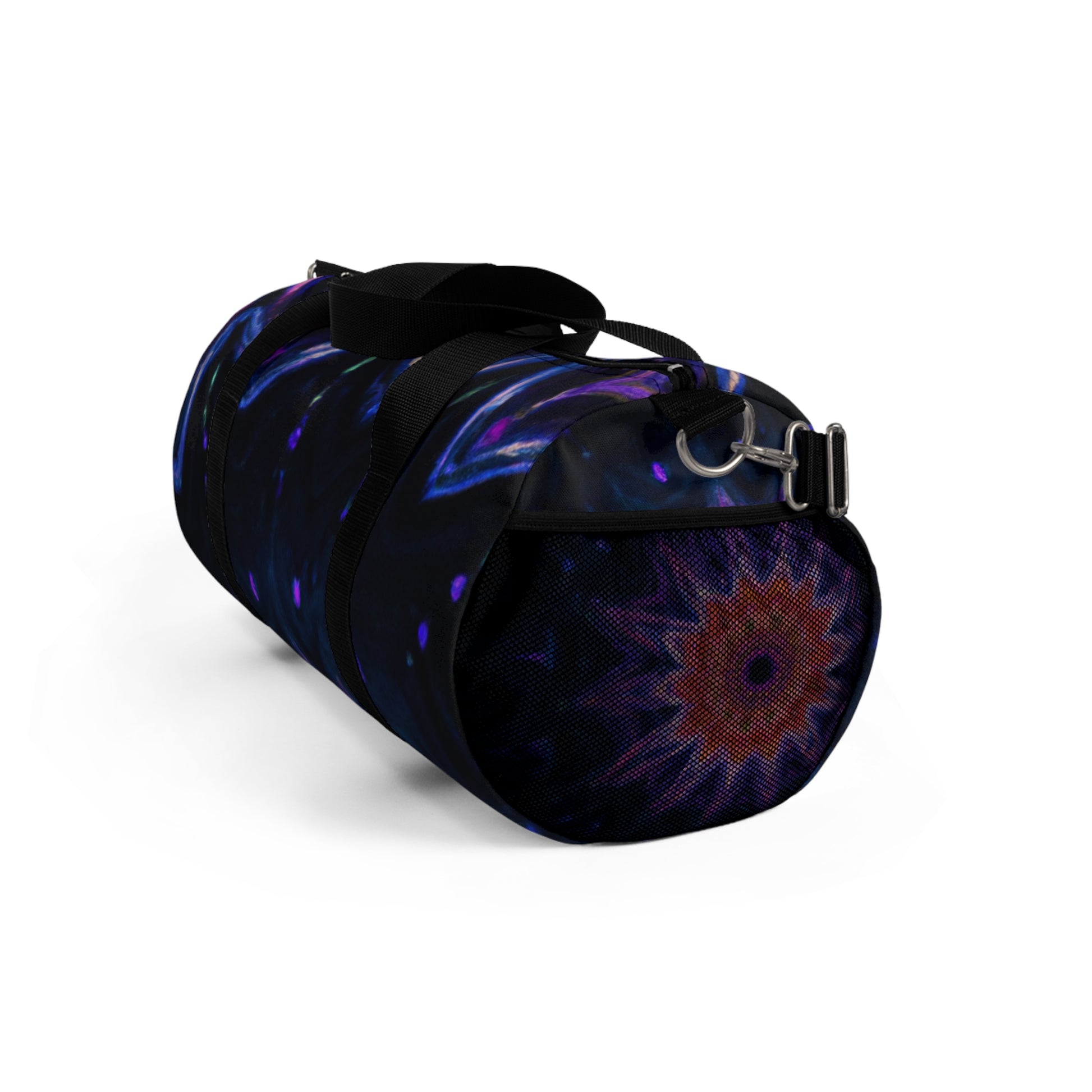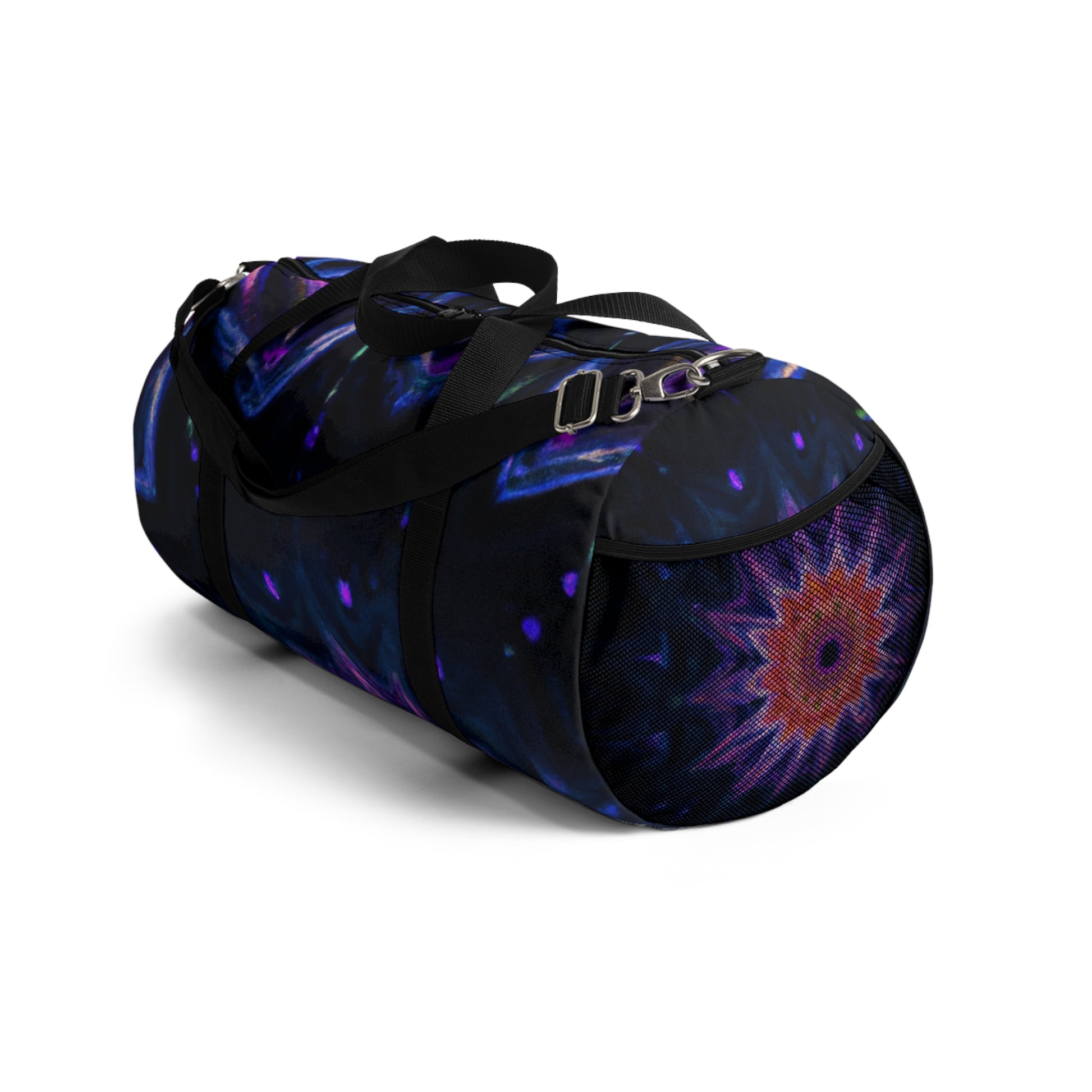 This duffle bag features stunning, one-of-a-kind artwork! Featuring trippy stars, mesmerizing kaleidoscope shapes, abstract digital designs, and vibrant colors in 3D lines - it is sure to be a standout wherever you go! No one will have the same unique bag, so get your own, and become the talk of the town.