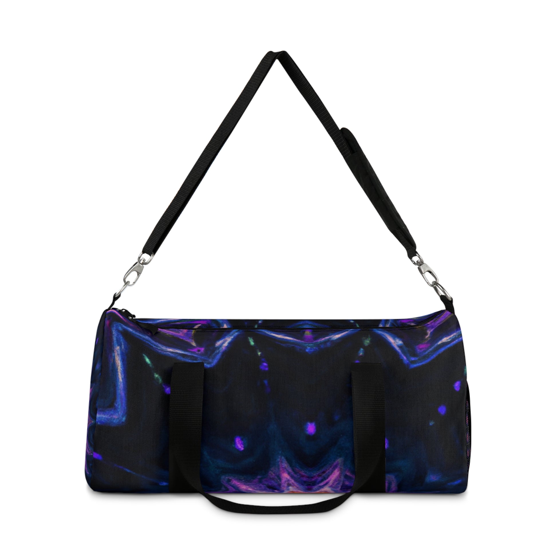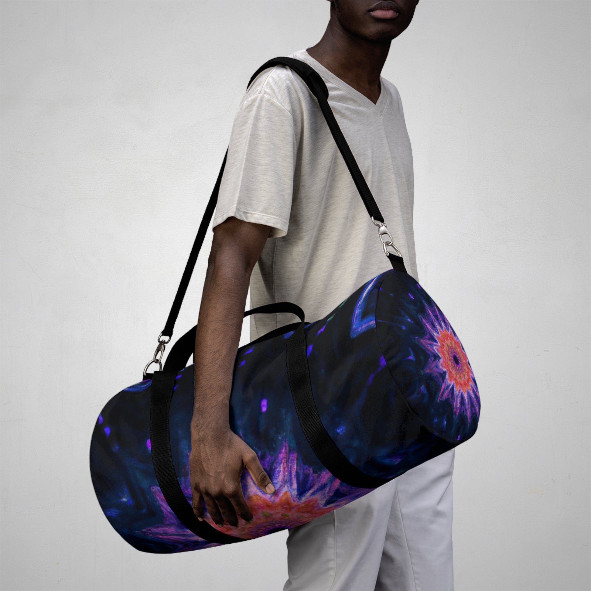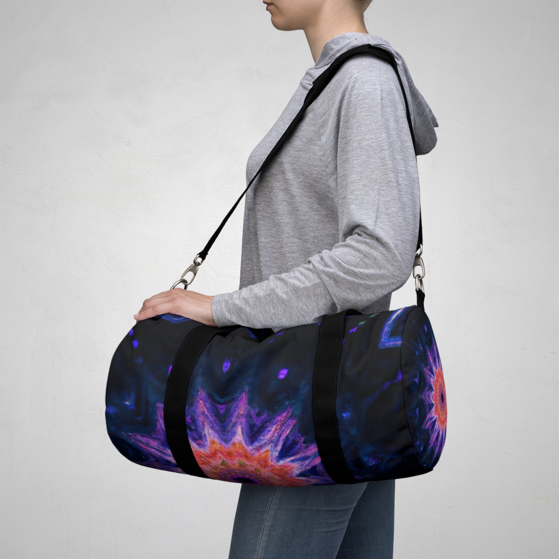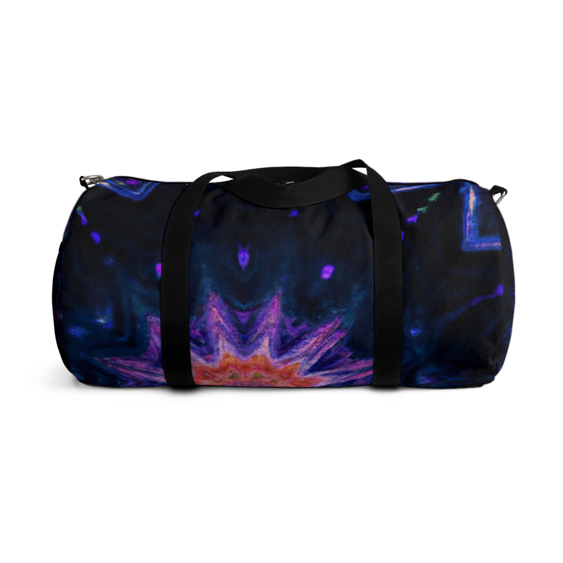 This duffle bag features stunning, one-of-a-kind artwork! Featuring trippy stars, mesmerizing kaleidoscope shapes, abstract digital designs, and vibrant colors in 3D lines - it is sure to be a standout wherever you go! No one will have the same unique bag, so get your own, and become the talk of the town.