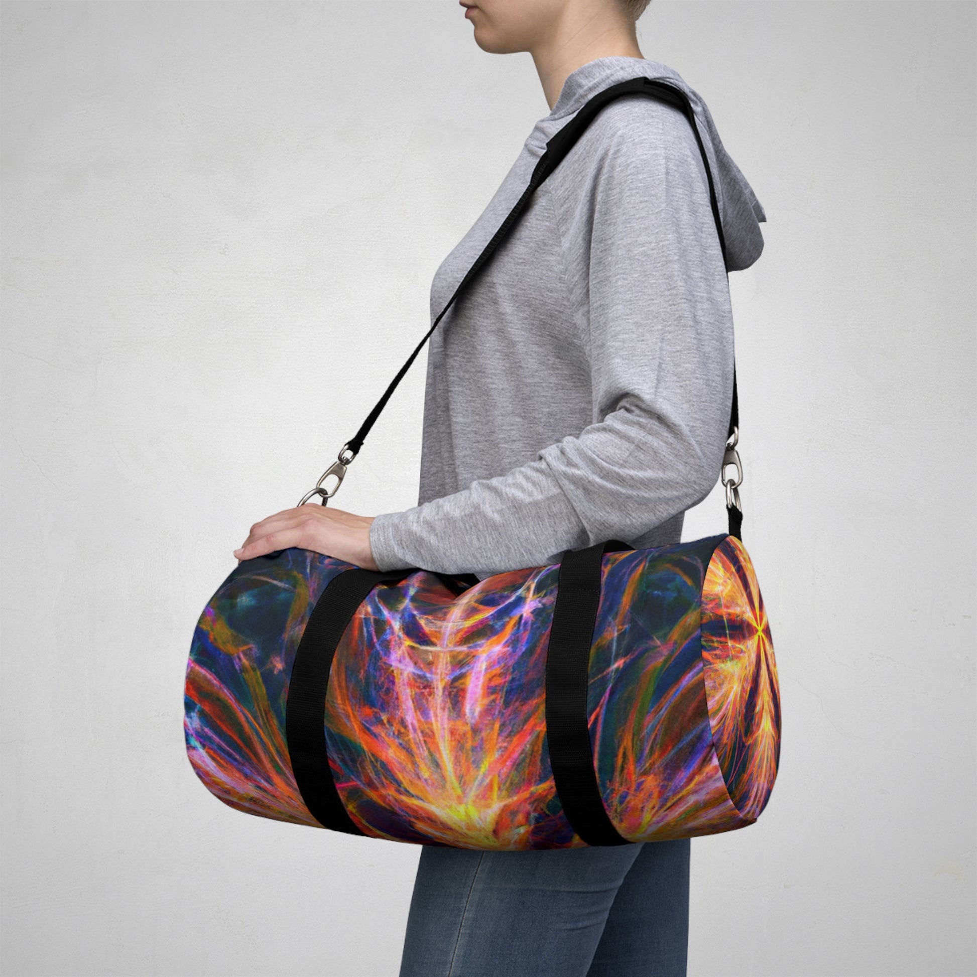This eye-catching dufflebag features a bold combination of trippy stars, kaleidoscopic designs, abstract digital art and 3D lines designs. Its vibrant colors and unique design will make you stand out from the crowd. It's the perfect accessory for an adventure and its size makes it perfect for any occasion. #kaleidoscope #trippystars #3dlines #digitalart #abstractart #vibrantcolors #dufflebag #bagpack #backpack #travelbag #adventurebag #accessories #fashion #style #fitnessgear #stylishgear #adventuretime #readytorock #journeybag #travelaccessories #fitnessequipment #standout #makeastatement #unique #special #and #bold