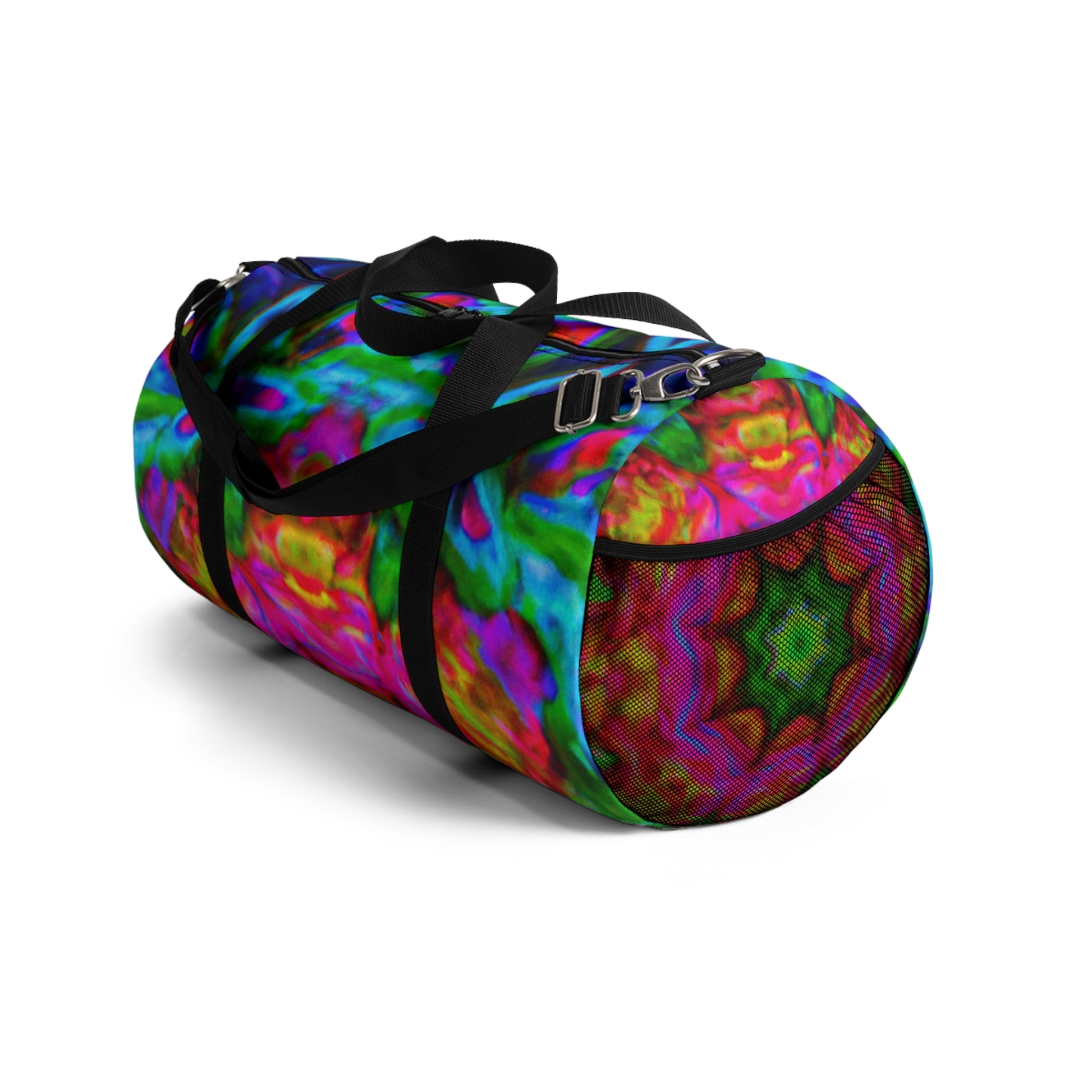 This dufflebag is a fashion statement! Show off your unique style with trippy pineapple, kaleidoscope, abstract, digital art, neon colors, and HD designs on a black background. Perfect for the gym, beach, school, or any other adventure - stand out from the crowd with this one-of-a-kind bag! #duffelbag #pineapple #kaleidoscope #abstract #digitalart #neoncolors #HD #artwork #fashion #statement #gym #beach #school #adventure #standingout #unique #style #quality #handmade #highquality #blackbackground #trendy #cool #trendsetter #accessories #oneofakind #uniqueness #colors #highdefinition