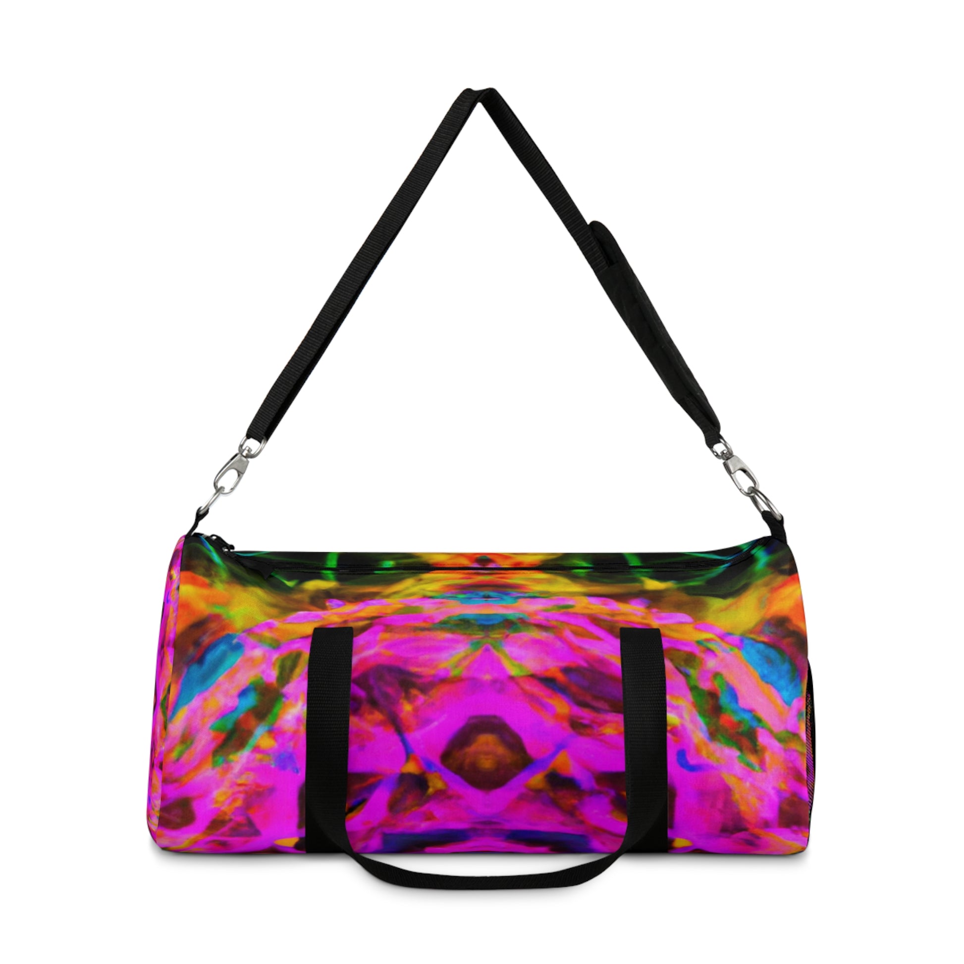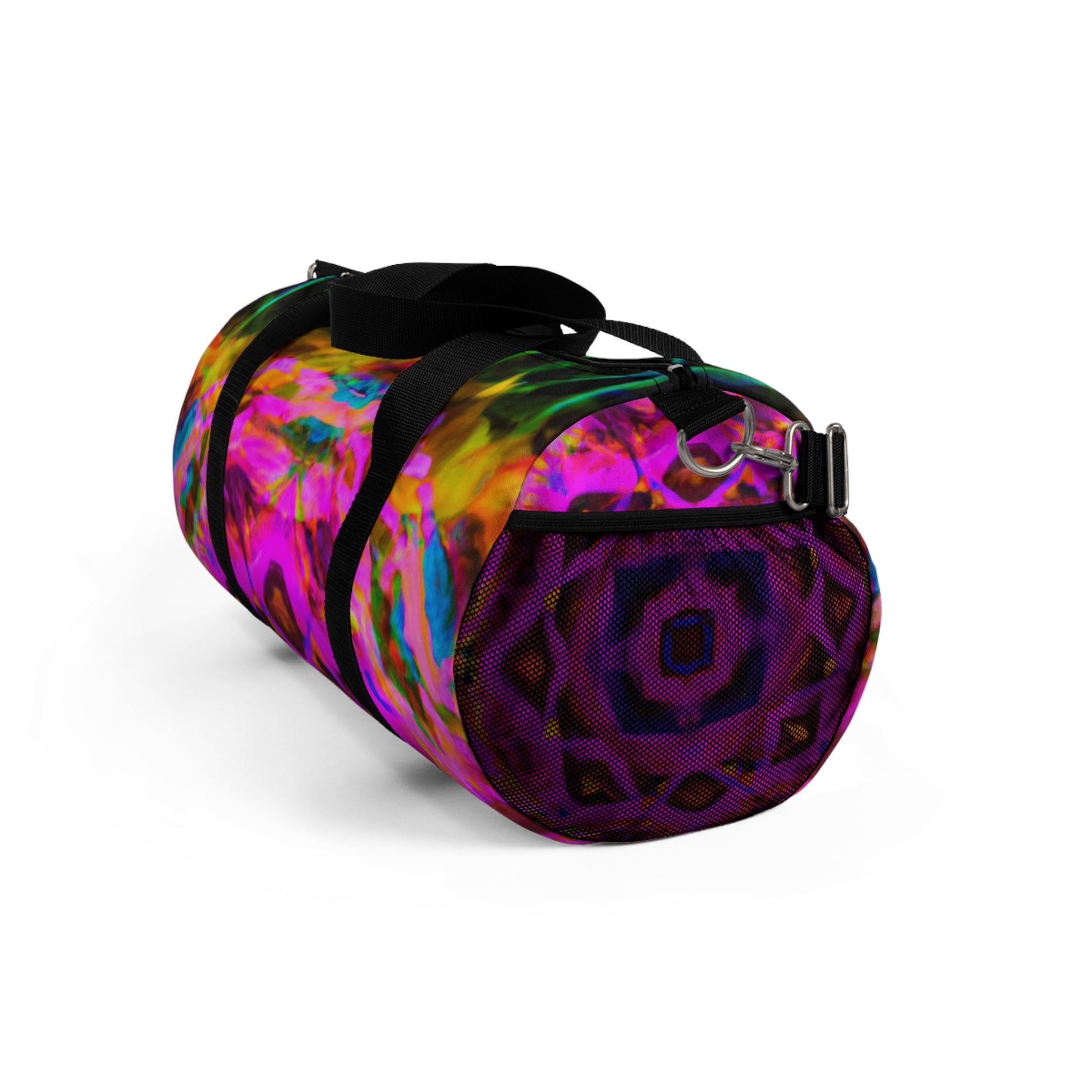 This dufflebag is sure to turn heads! Stand out from the rest with it's trippy pineapple, kaleidoscope, abstract, digital art, neon colors and HD designs, giving you a unique look wherever you go! #dufflebag #pineapple #kaleidoscope #abstract #digitalart #neoncolors #HD #designs #unique #turnheads #trippy #style #statementbag #standout #conversationstarter #carryall #illustration #colorsplash #stylish #funky #fabric #durable #uniqueness #HDprint #trendy #4life #andfashionable