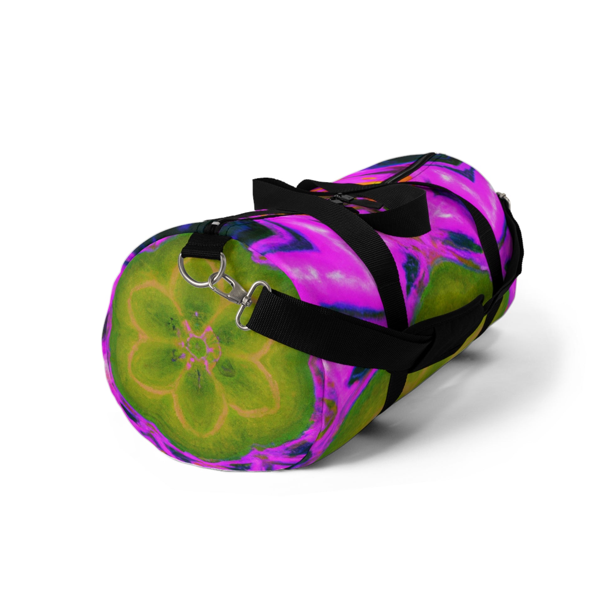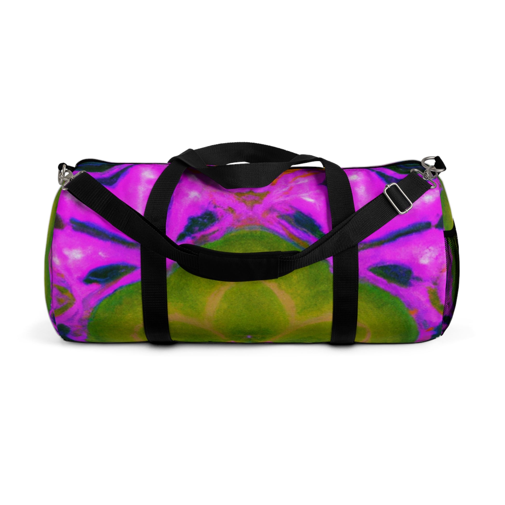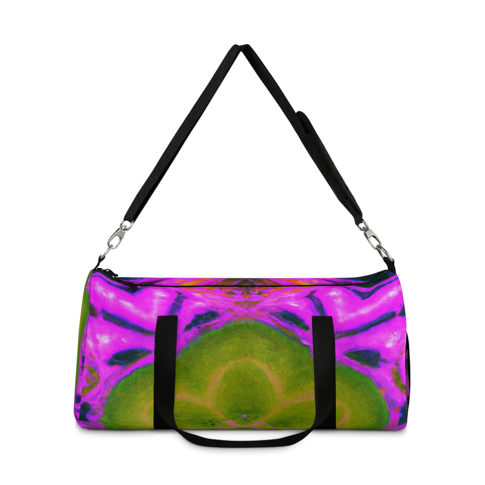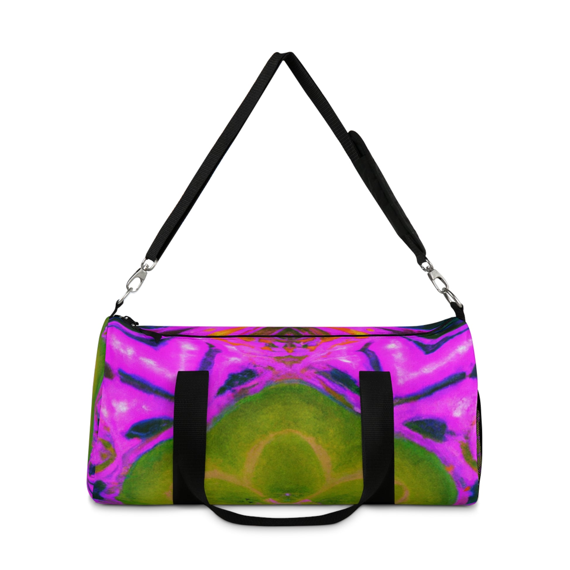 This vibrant dufflebag is anything but ordinary! Abstract, digital art featuring trippy pineapples, kaleidoscopic designs, and neon colors brings your casual style to a whole new level. Show off in style with these high-definition designs! #dufflebag #pineapple #kaleidoscope #abstract #digitalart #neoncolors #hd #functional #trendy #versatile #style #fashion #bag #vibrancy #unique #unisex #loud #modernart #travel #journey #instafashion #instastyle #statementpiece #unisexstyle #standoutlook #musthave #convenient #trippyvibes