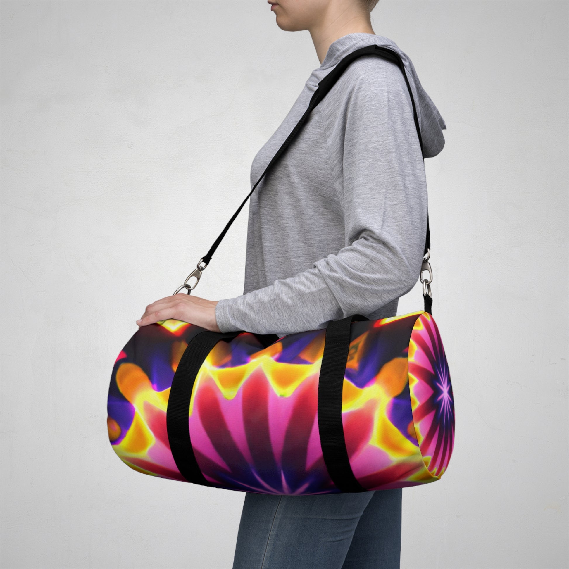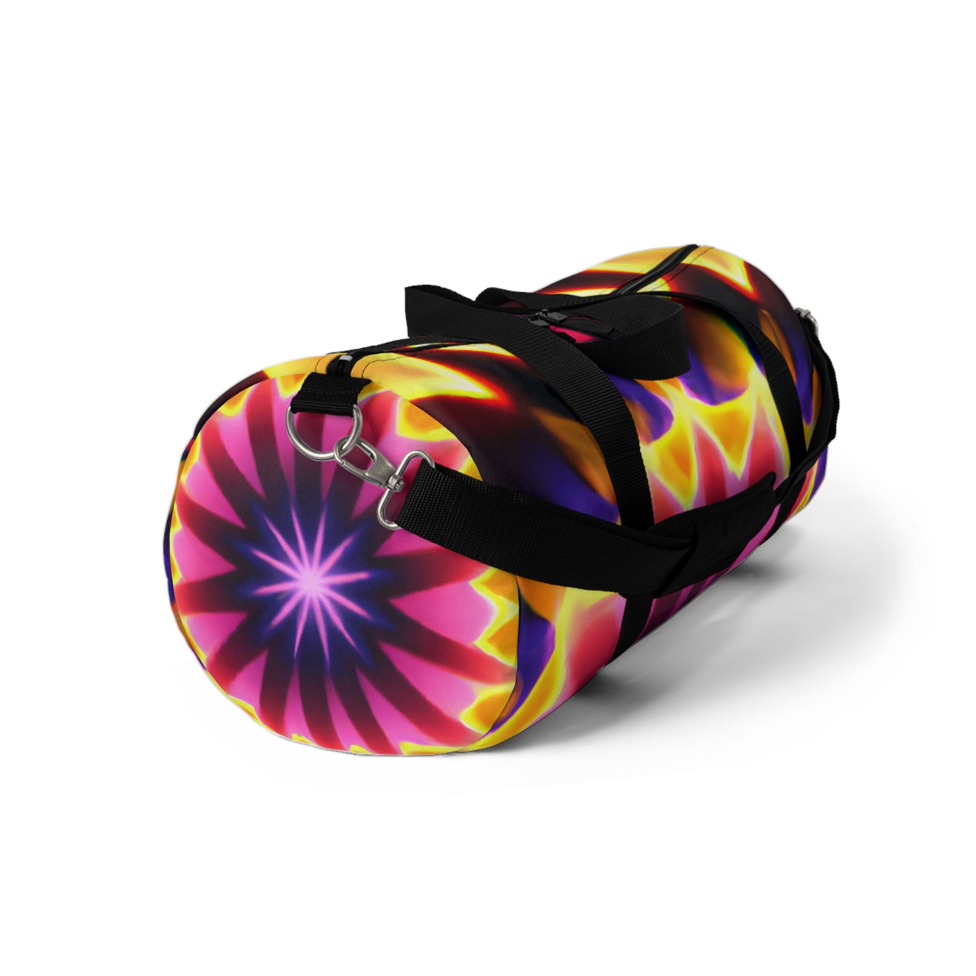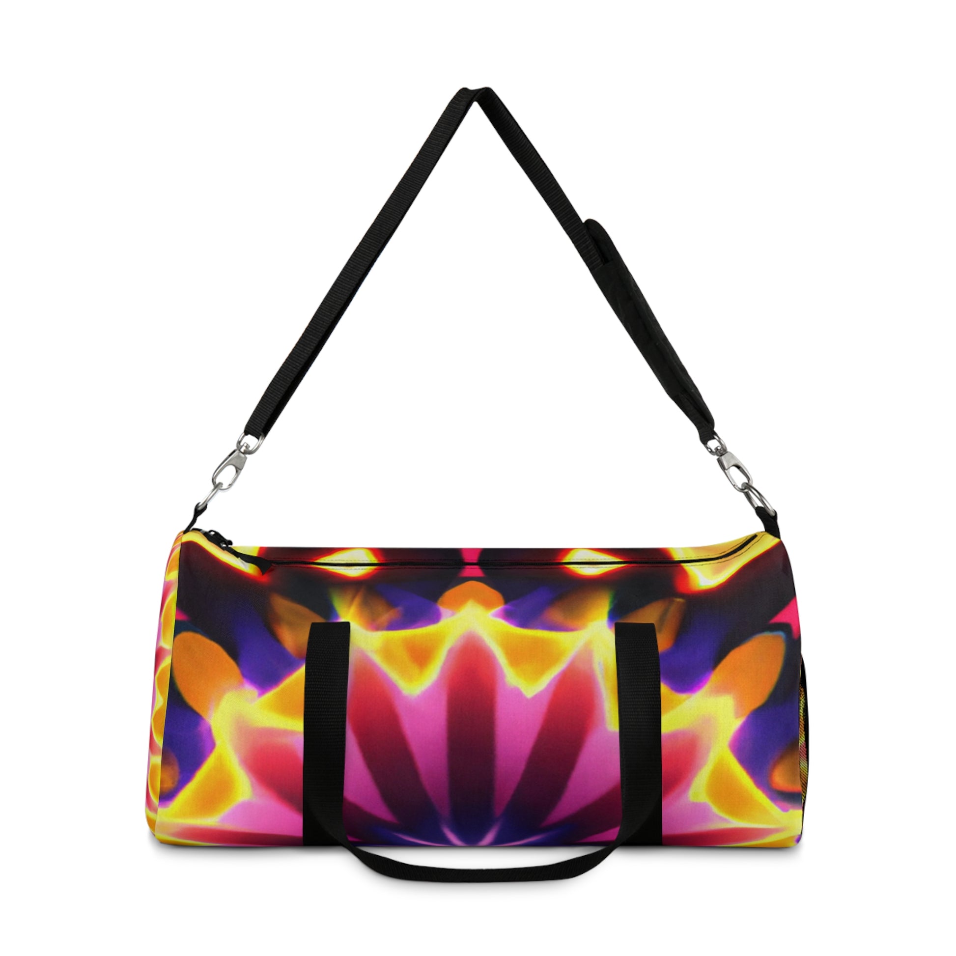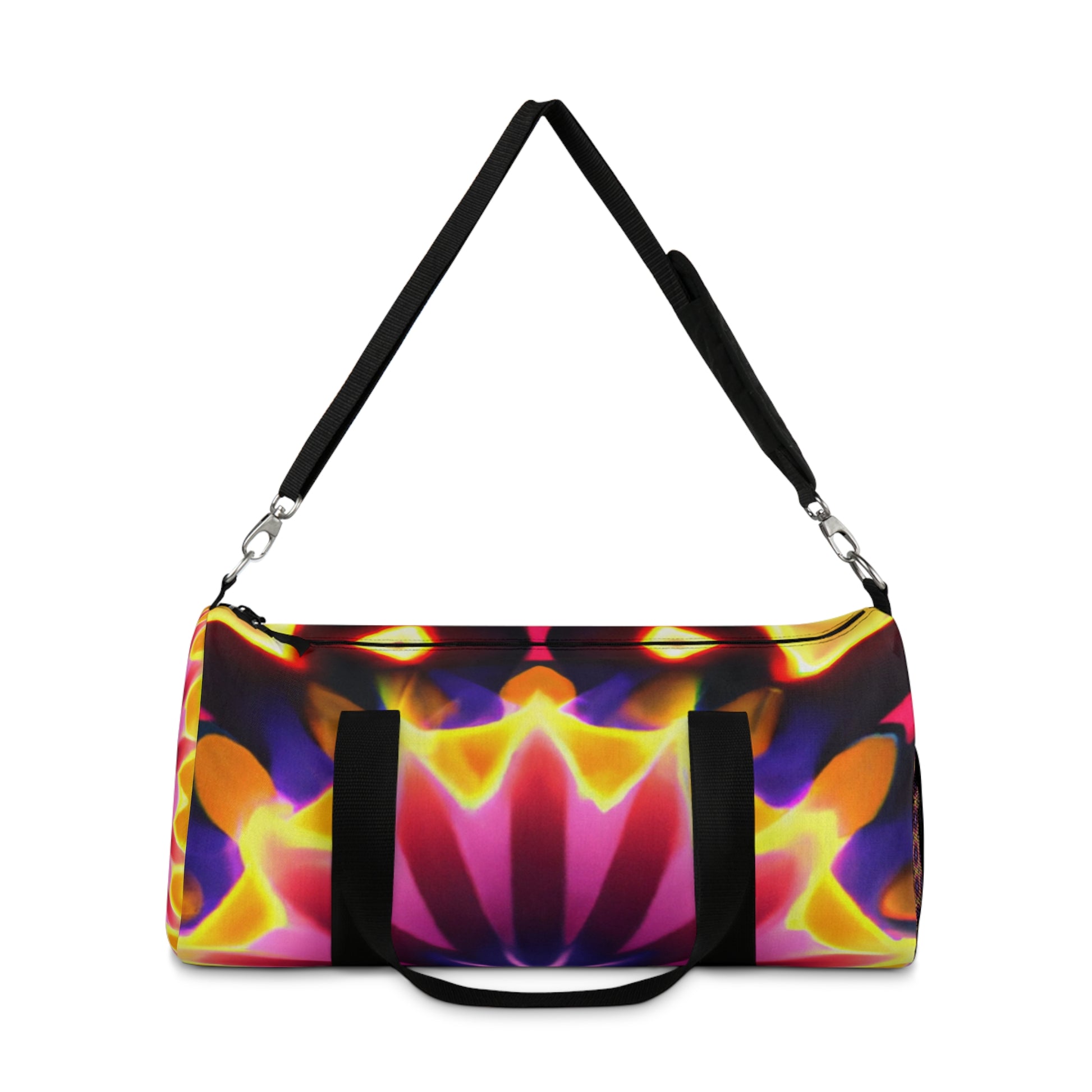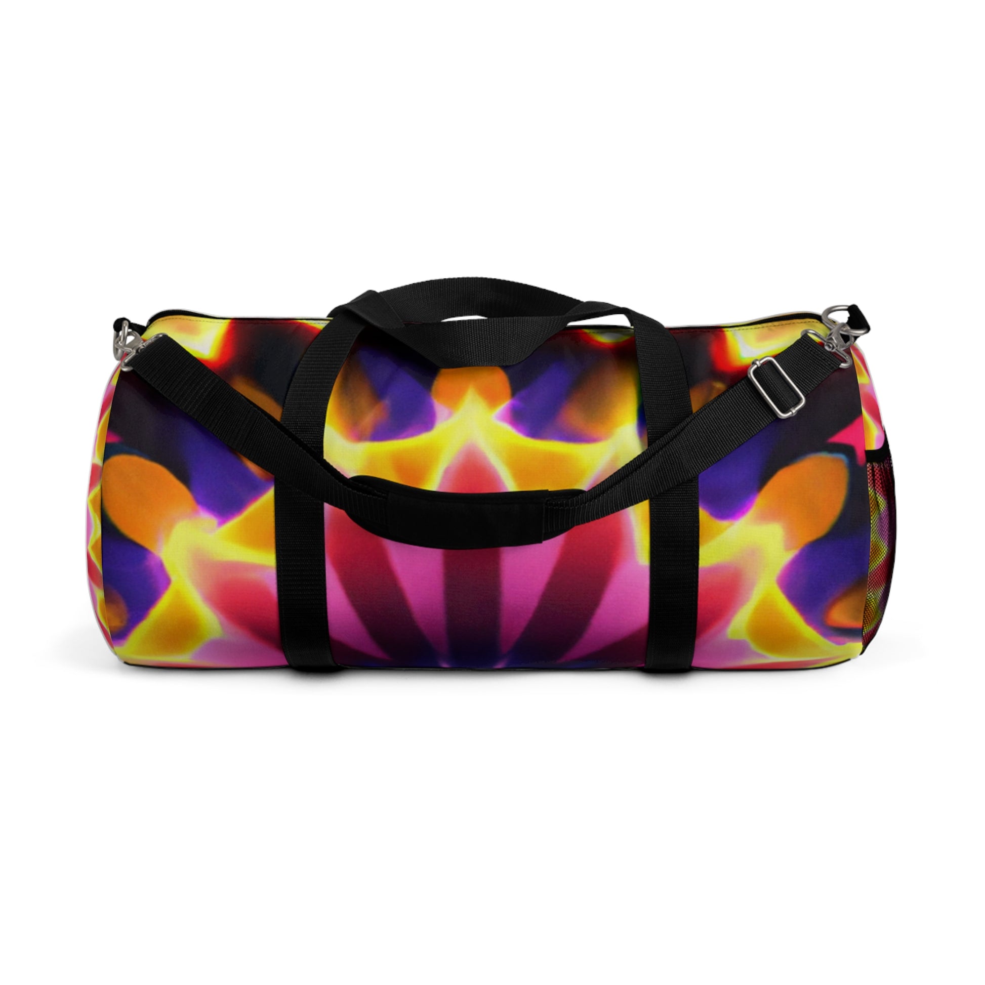 This brightly colored and dynamic duffle bag is the perfect accessory to add some fun and energy to any outfit! Filled with stunning Trippy stars, kaleidoscope, abstract, digital art, and 3D lines, this bag is a unique and vibrant piece for any wardrobe. Don't miss out on this attention-grabbing statement piece! #dufflebag #dufflebagstyle #trippystars #kaleidoscope #abstractart #digitalart #3Dlines #vibrant #vibrantbag #colors #colorful #colorfulbag #statementpiece #streetstyle #unique #dynamic #energy #attentiongrabber #accessory #style #3Dprint #designerpiece #luxurybag #trendybag #statementstyle #stylish #fashionista