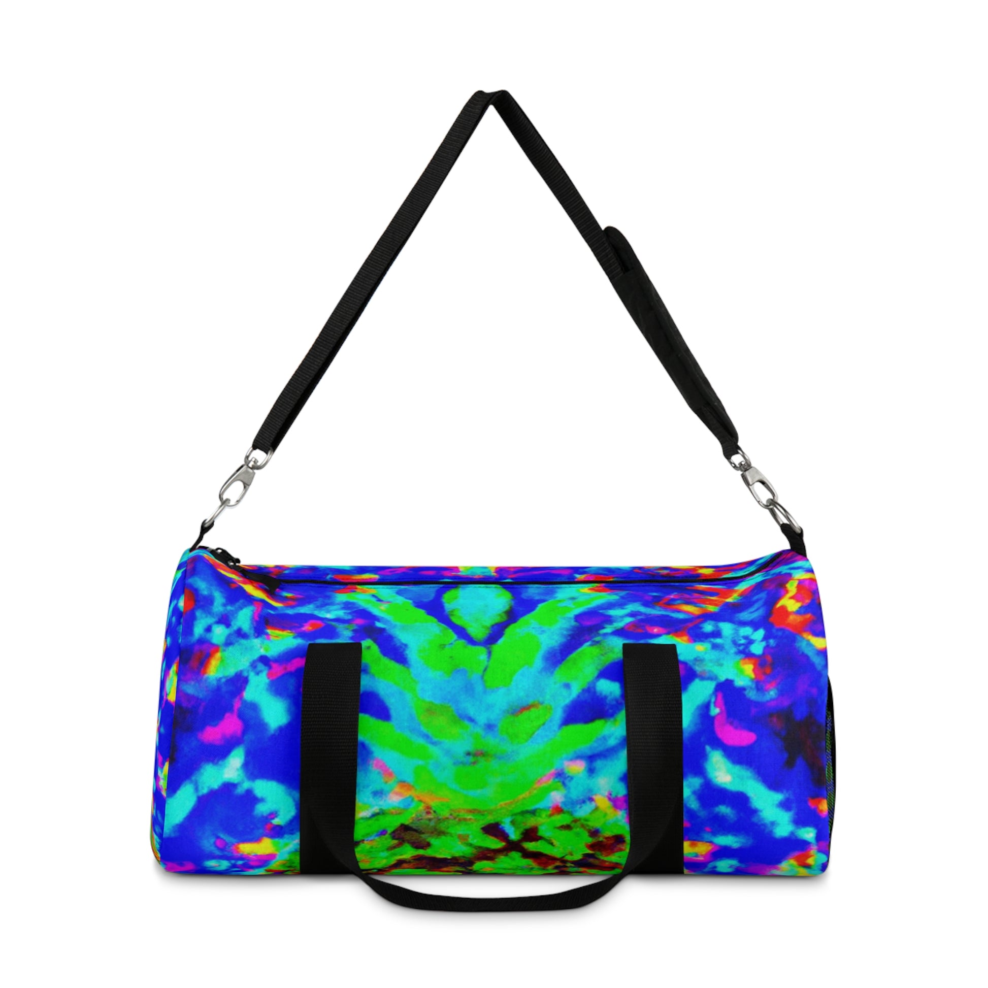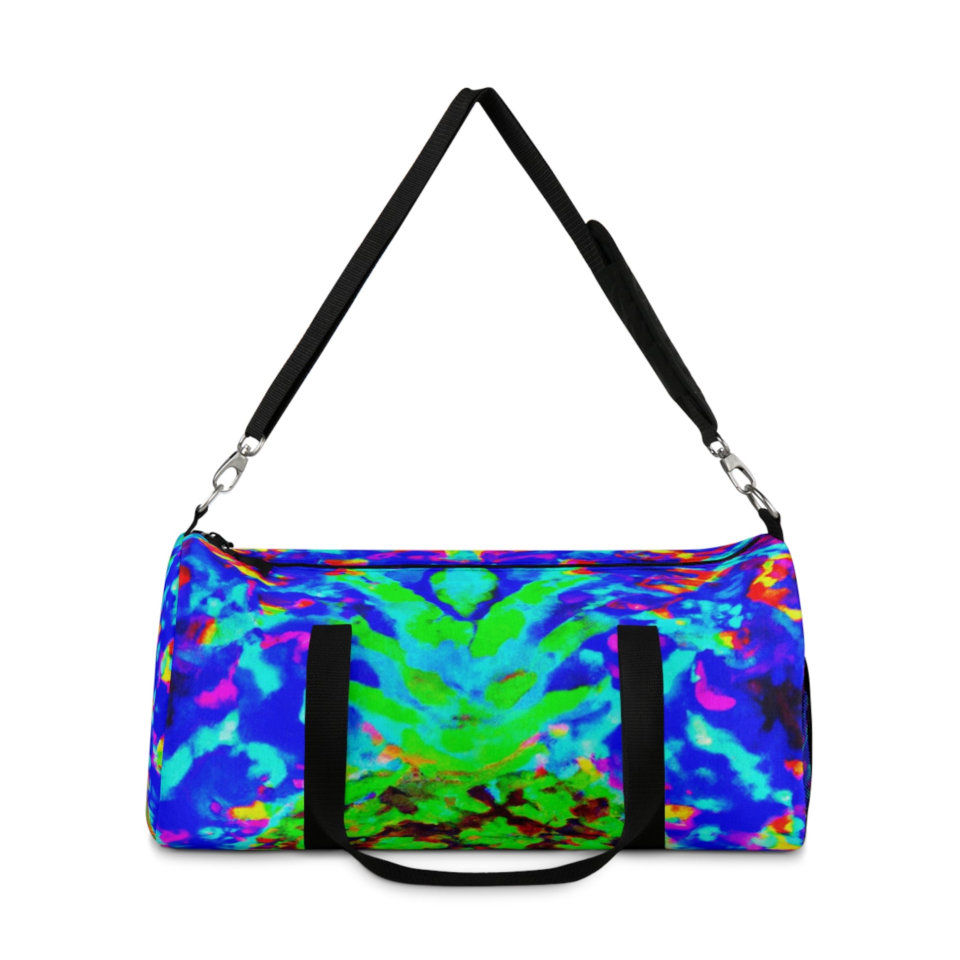 This dufflebag is STUNNING! Get ready to turn some heads with this trippy pineapple, kaleidoscope, abstract, digital art, neon-colored, HD design. It's sure to impress everyone. #dufflebag #bags #style #fashion #pineapple #kaleidoscope #abstract #digital #art #neon #colors #HD #hot #vibes #trendy #cool #musthave #unique #alternative #travel #exciting #durable #trip #designs #journey #luxury #standout #fashionista #andstylish