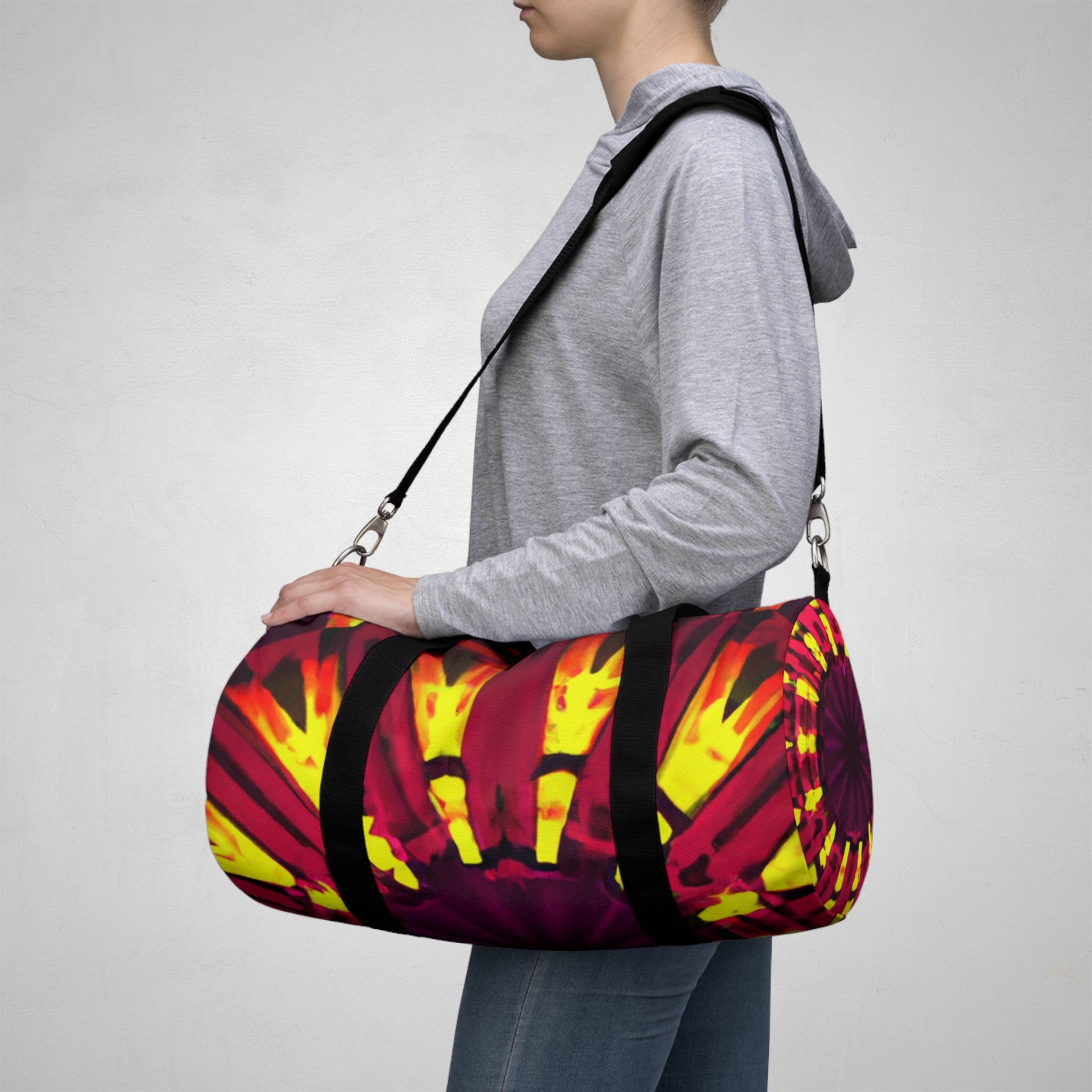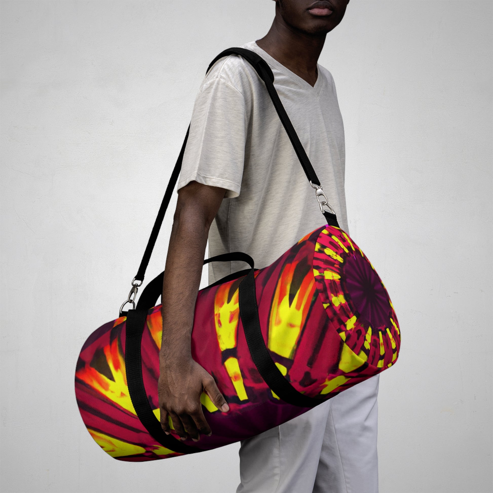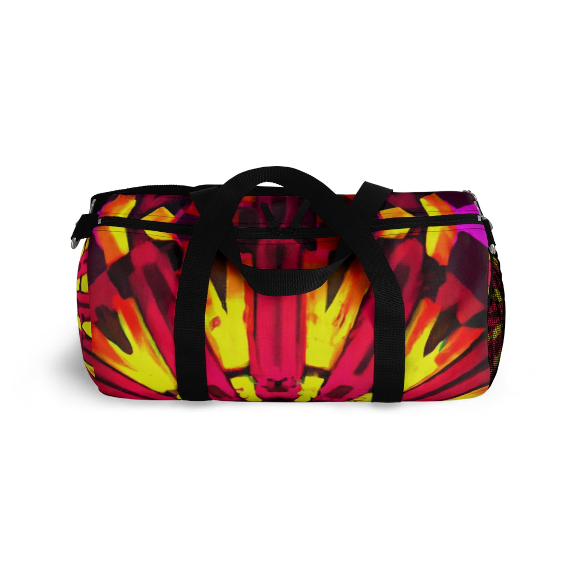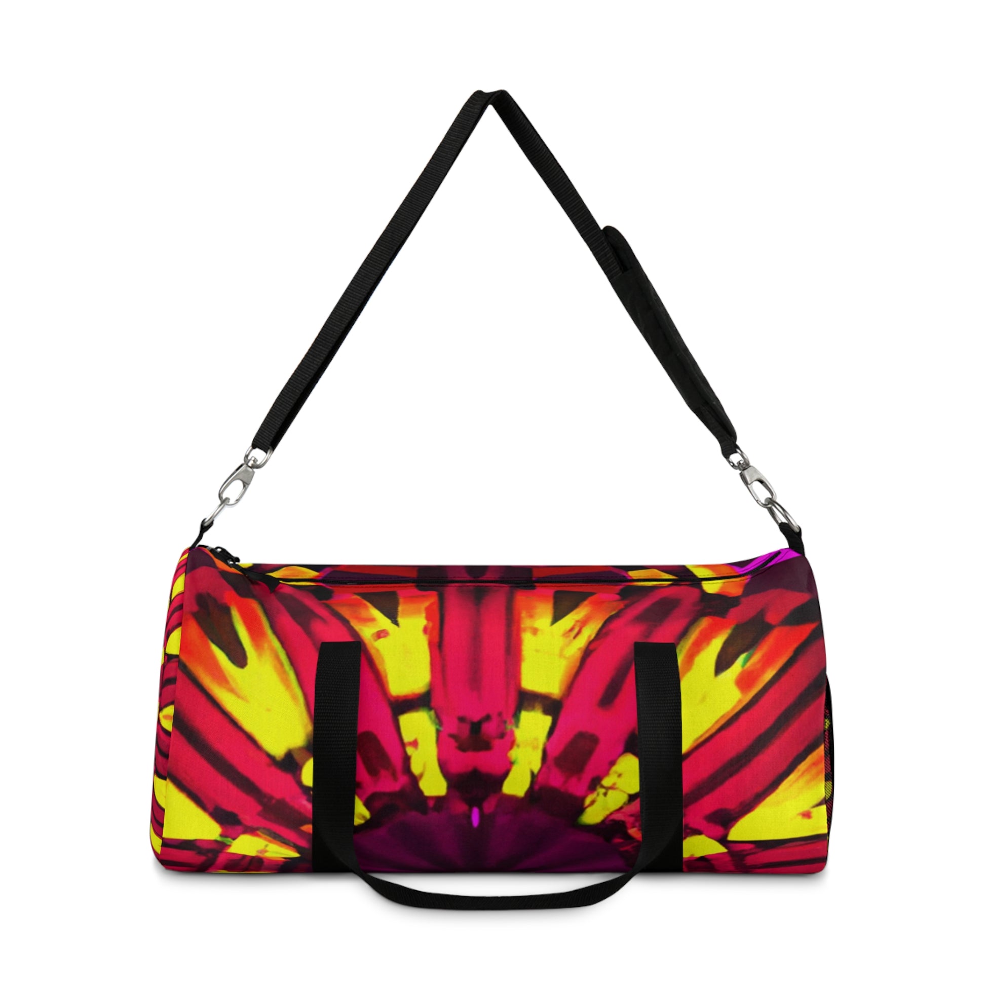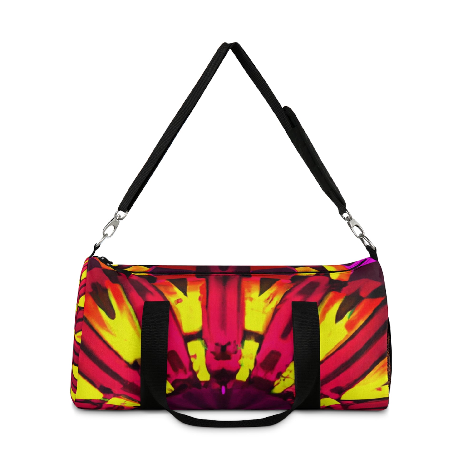 This dufflebag with its colourful, 3D abstract digital art featuring trippy stars, kaleidoscope and vibrant colours is sure to get you noticed! With intricate details and bold lines, this bag is sure to become an inseparable part of any street look. #digitalart #streetstyle #fashion #VibrantColours #TrippyStars #3DLines #Kaleidoscope #Abstract #DuffleBag #ArtisticDesign #GiftIdea #Unisex #Comfy #Trendy #Versatile #Designer #QualityMaterial #Beautiful #Stylish #Different #Unique #Bright #Sophisticated #Cool #Elegant #Chic #Functional #Trending #HighFashion