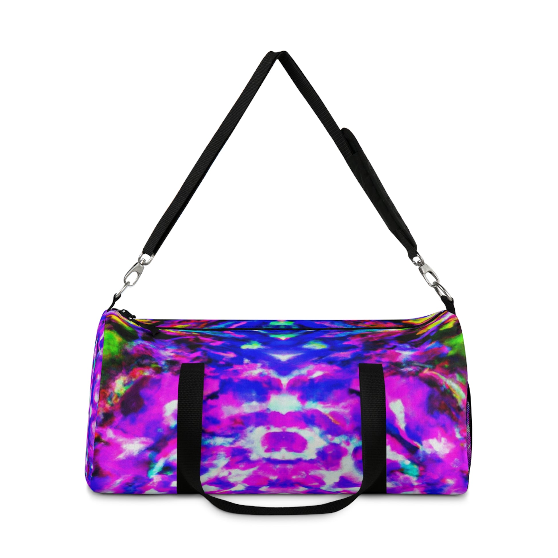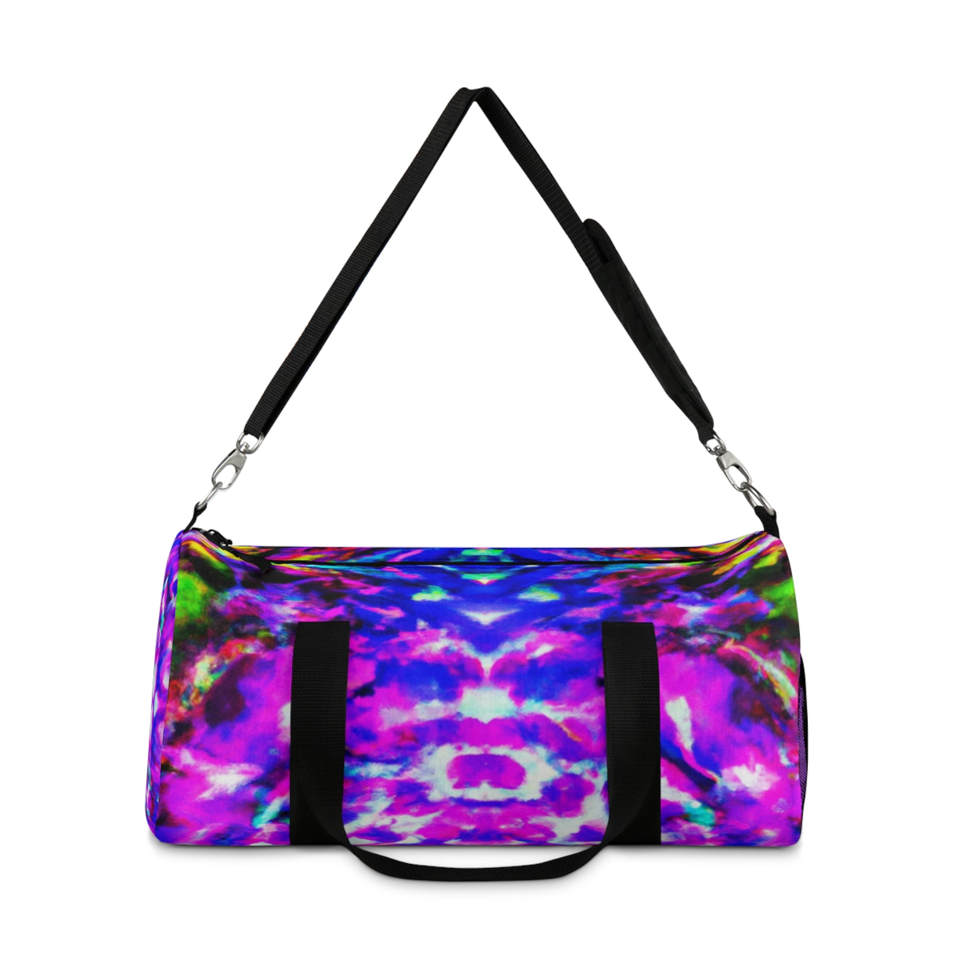 Introducing a bright, vibrant duffle bag with cool, upbeat digital art! With trippy pineapples, kaleidoscope shapes, abstract themes, neon colors and HD designs, this bag is unique and stylish. Fun for all ages, bring it to the beach, a picnic or even a festival! #dufflebag #pineapples #kaleidoscope #digitalart #abstract #neon #colors #HD #unique #style #vibrant #beach #picnic #festival #summer #bringit #trippy #cool #upbeat #groovy #festive #vacation #outdoor #happytones #hippie #vibez #bohovibes #festivalfashion #vacaymode
