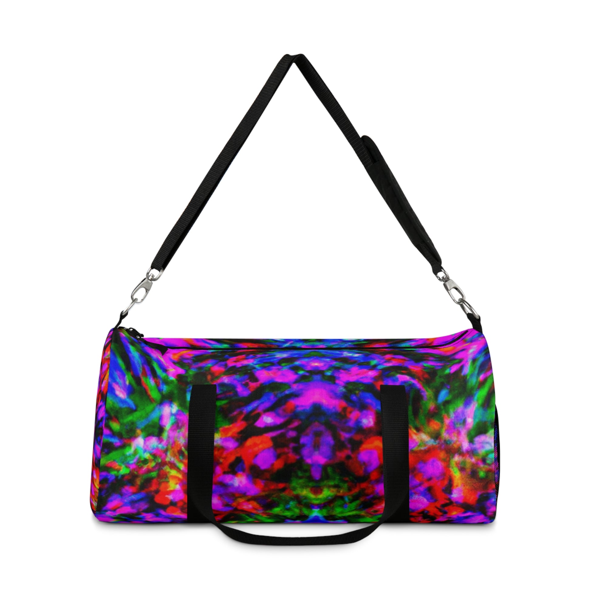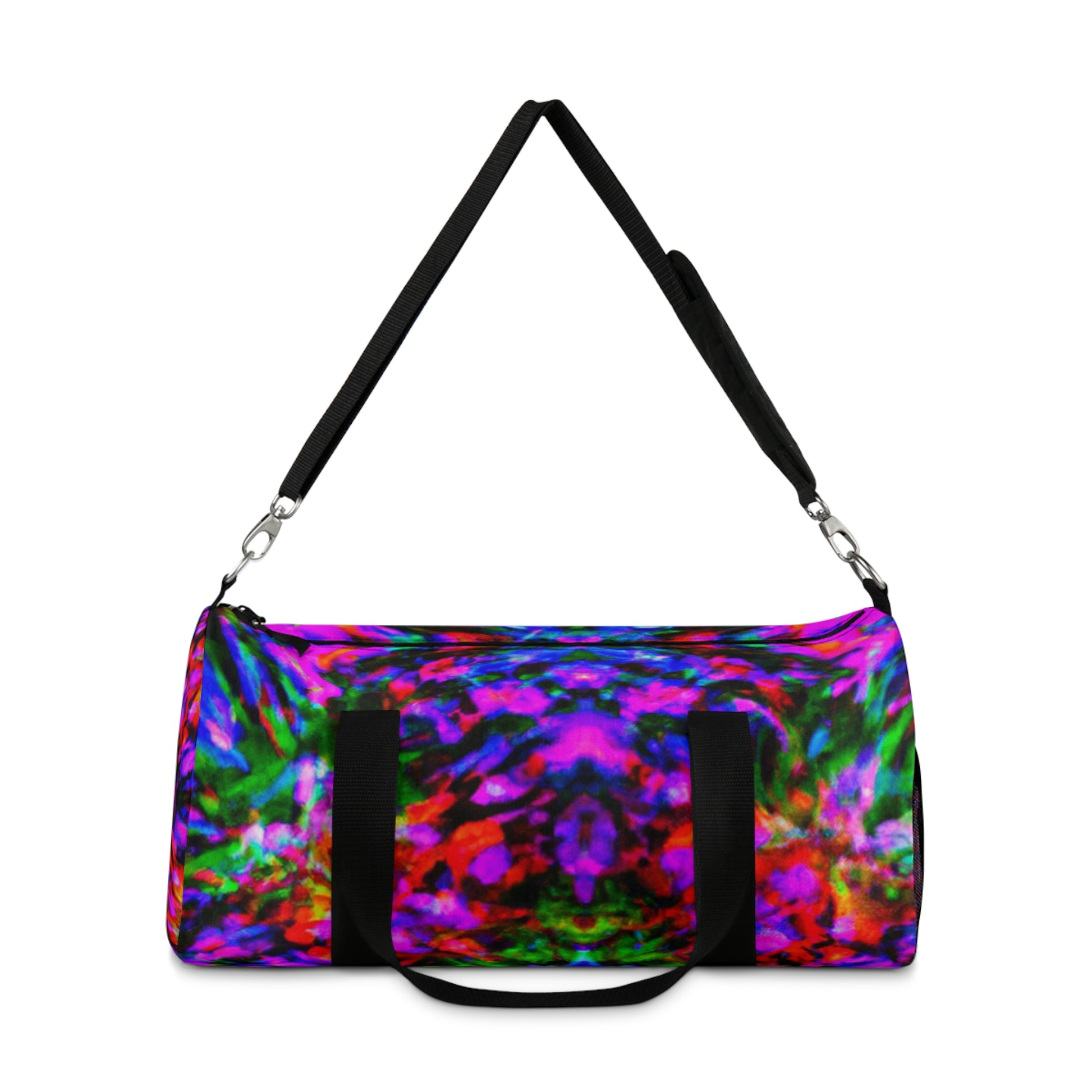This canvas dufflebag is made for travelers and style-savvy folk alike! Featuring trippy pineapple, kaleidoscope, abstract, digital art, and neon colors in a stylish HD design, you'll look fabulous no matter where you go. Showcase your bold fashion sense with this unique and eye-catching piece! #Dufflebag #Pineapple #Kaleidoscope #Abstract #Fashion #DigitalArt #Neon #HD #Travel #Style #Bold #Unique #Fashionable #EyeCatching #StyleSavvy #Trippy #StreetStyle #CasualStyle #Swag #GraphicDesign #Geometric #OnTheGo #HighDefinition #CarryAll #Travellers #BeachStyle #FestivalStyle #GymStyle
