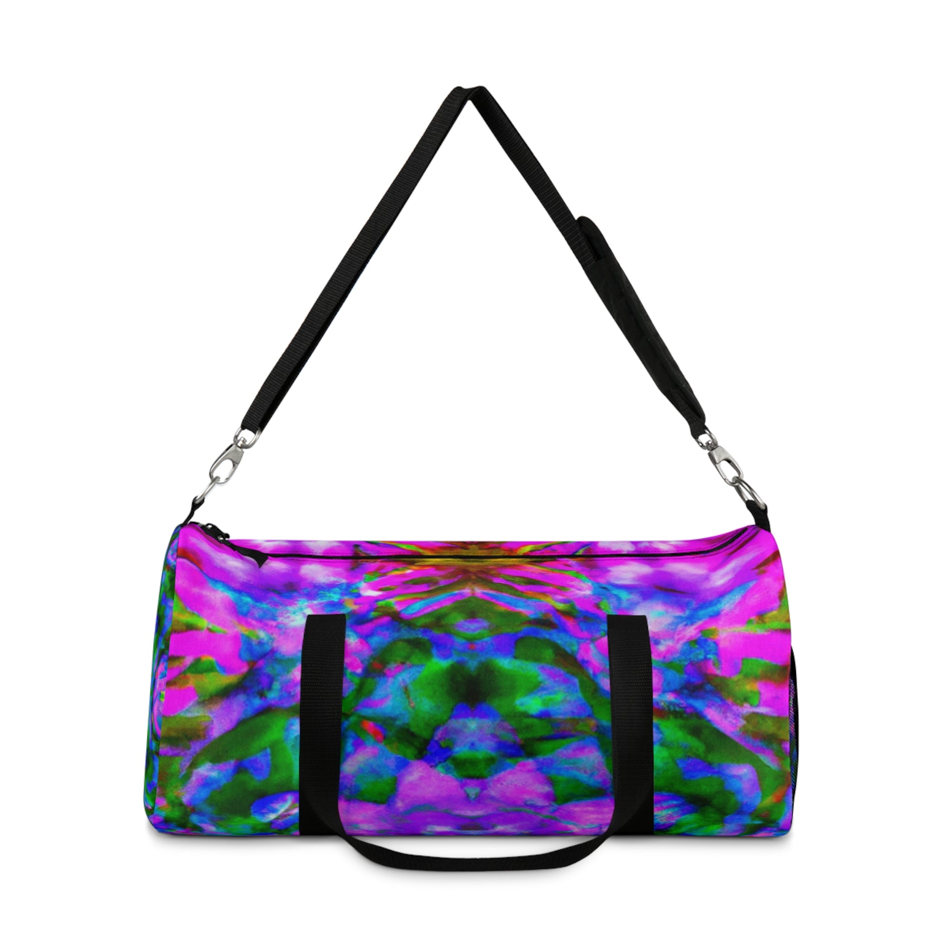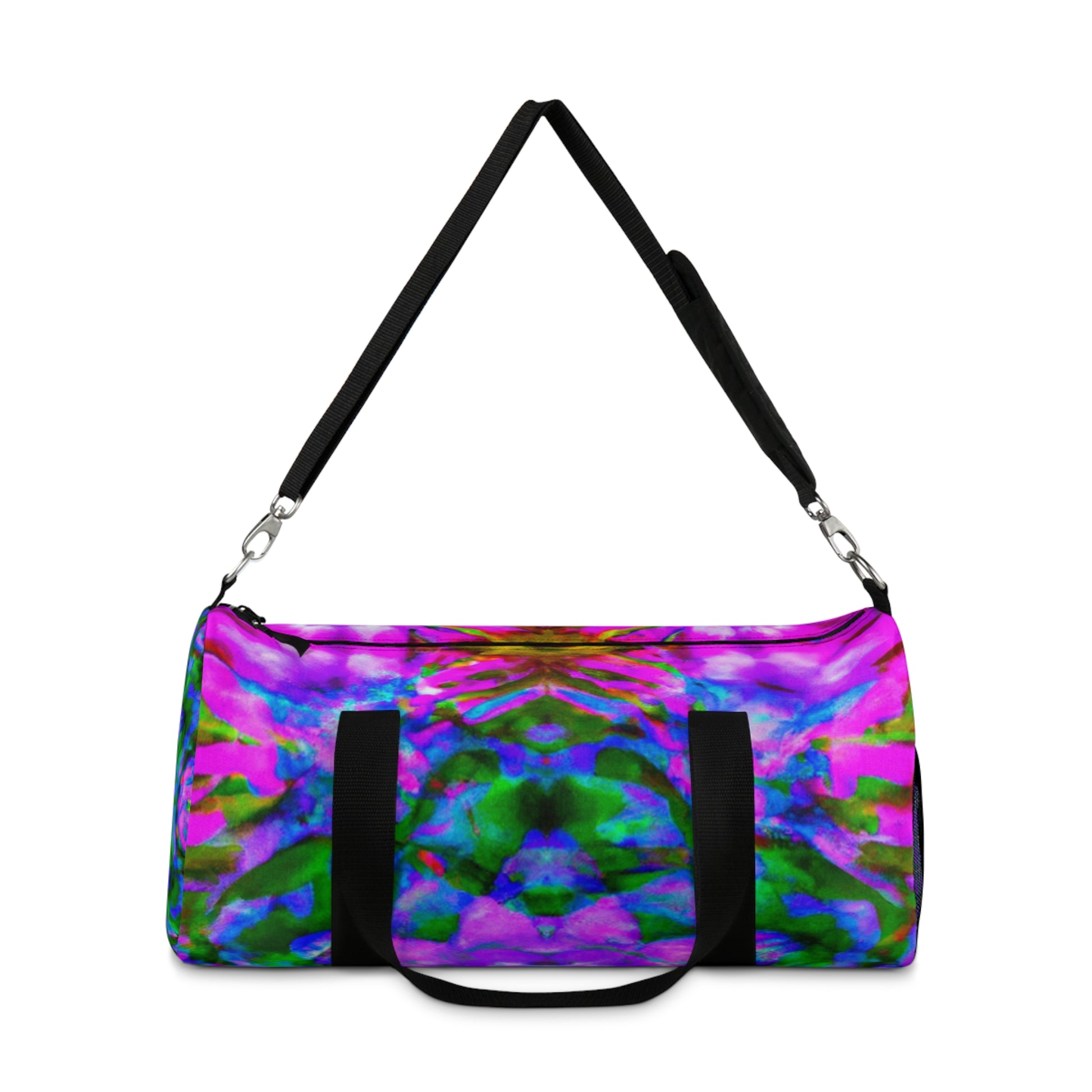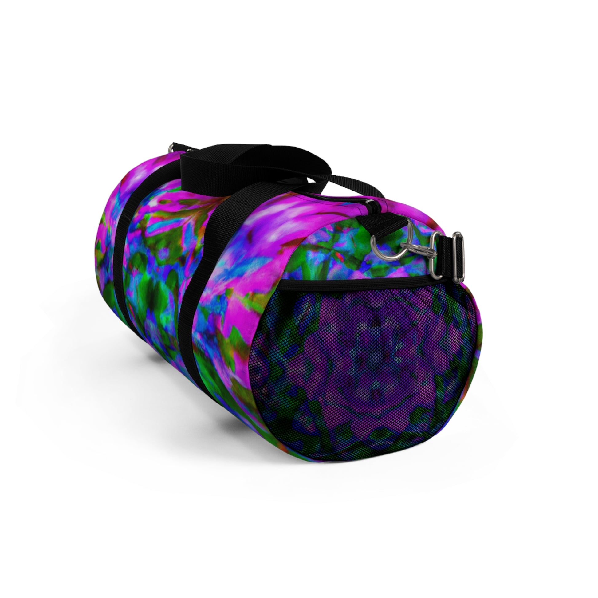 This duffle bag is a real eye-catcher! With its trippy pineapple, kaleidoscope, abstract, digital art, neon colors, and HD designs, it will stand out in any gym, locker room, or street. Its spacious design will hold all of your essentials for wherever your travels take you. #dufflebag #duffle #abstractart #digitalart #neoncolors #HD #pineapple #kaleidoscope #trippy #gym #lockerroom #travel #style #fashion #bags #bag #accessories #pineappleart #kaleidoscopeart #trippyart #streetstyle #aireyee #adultbackpack #pineapplefashion #kaleidoscopefashion #trippyfashion #digitalfashion #neonfashion