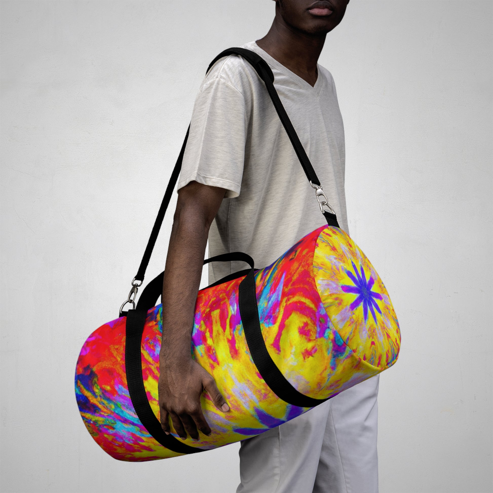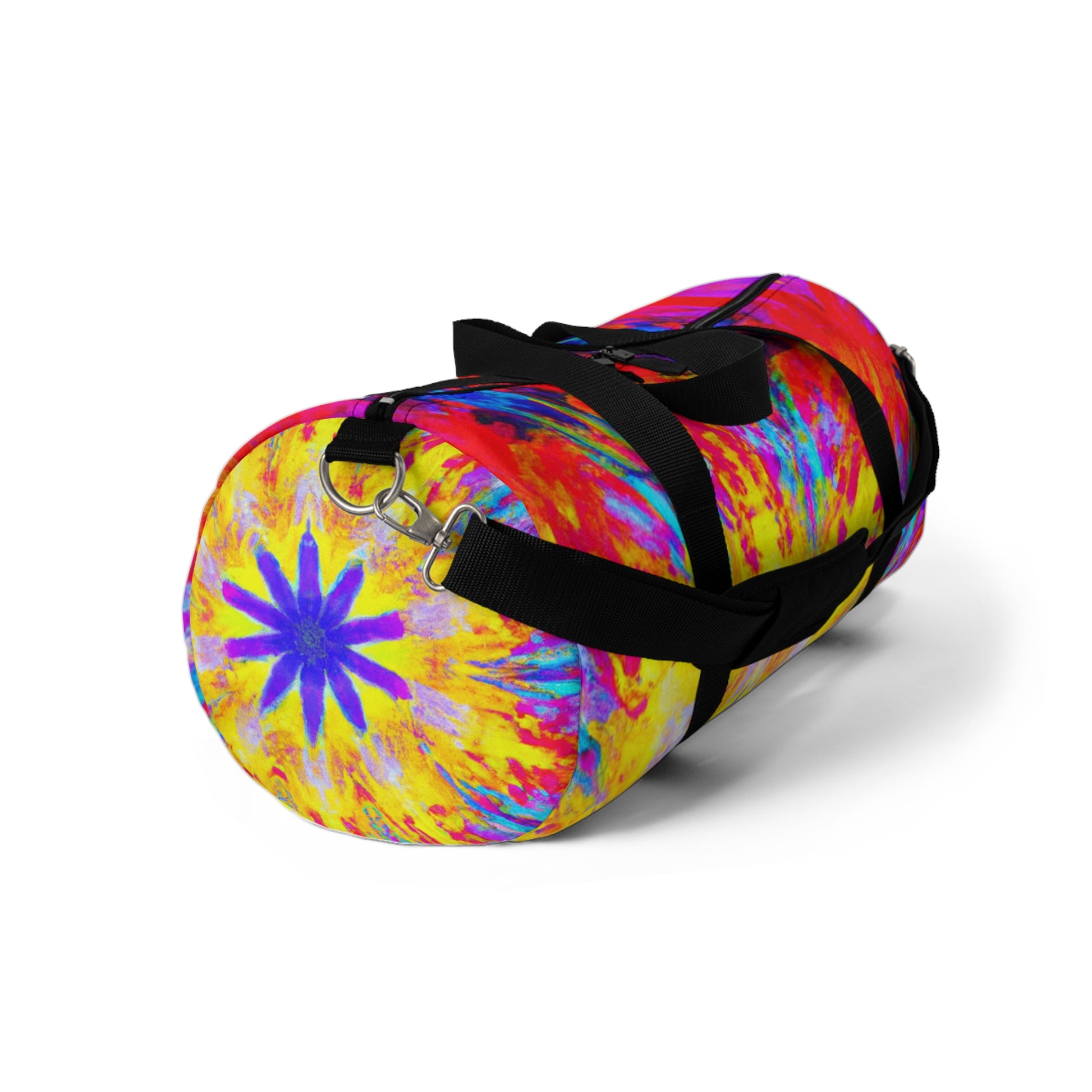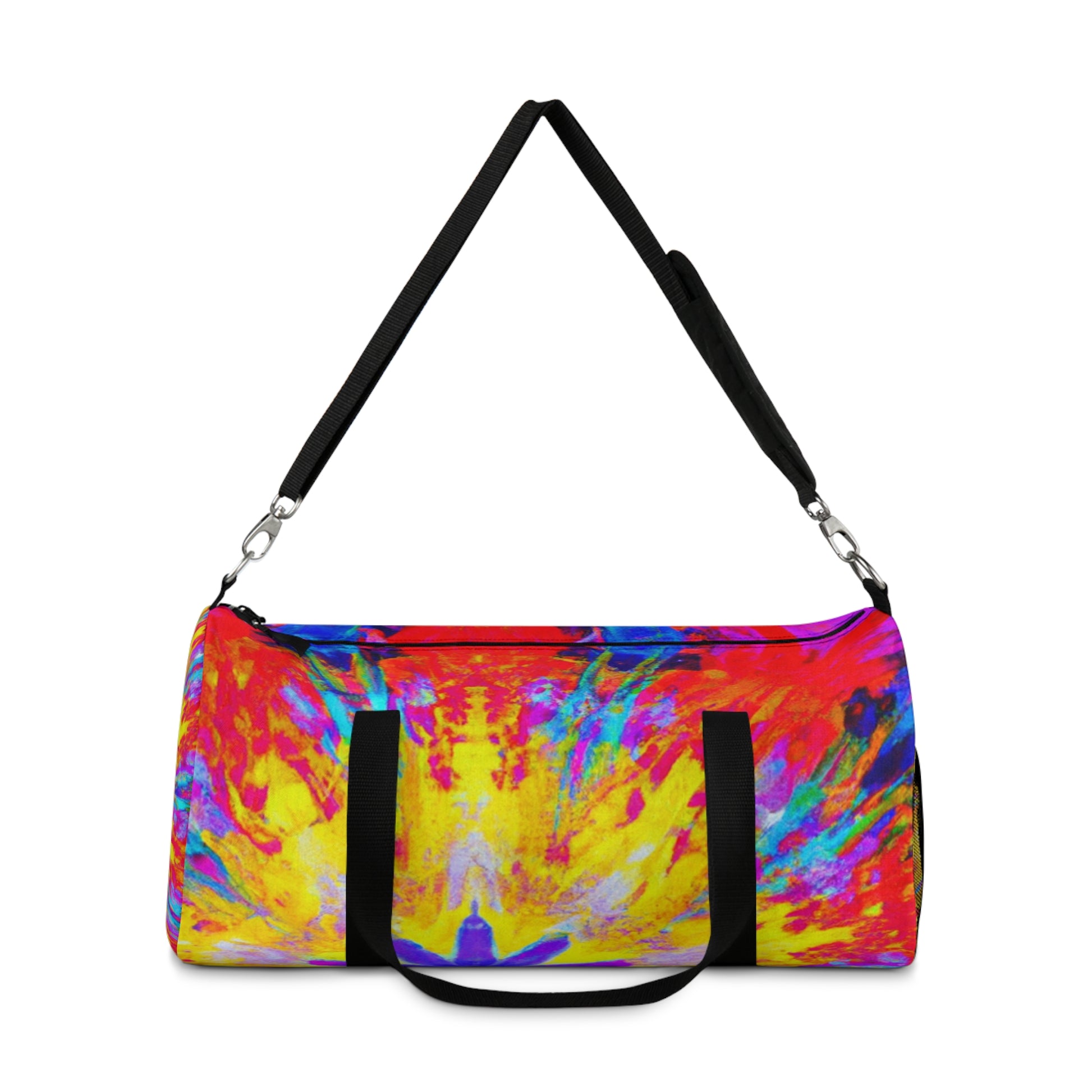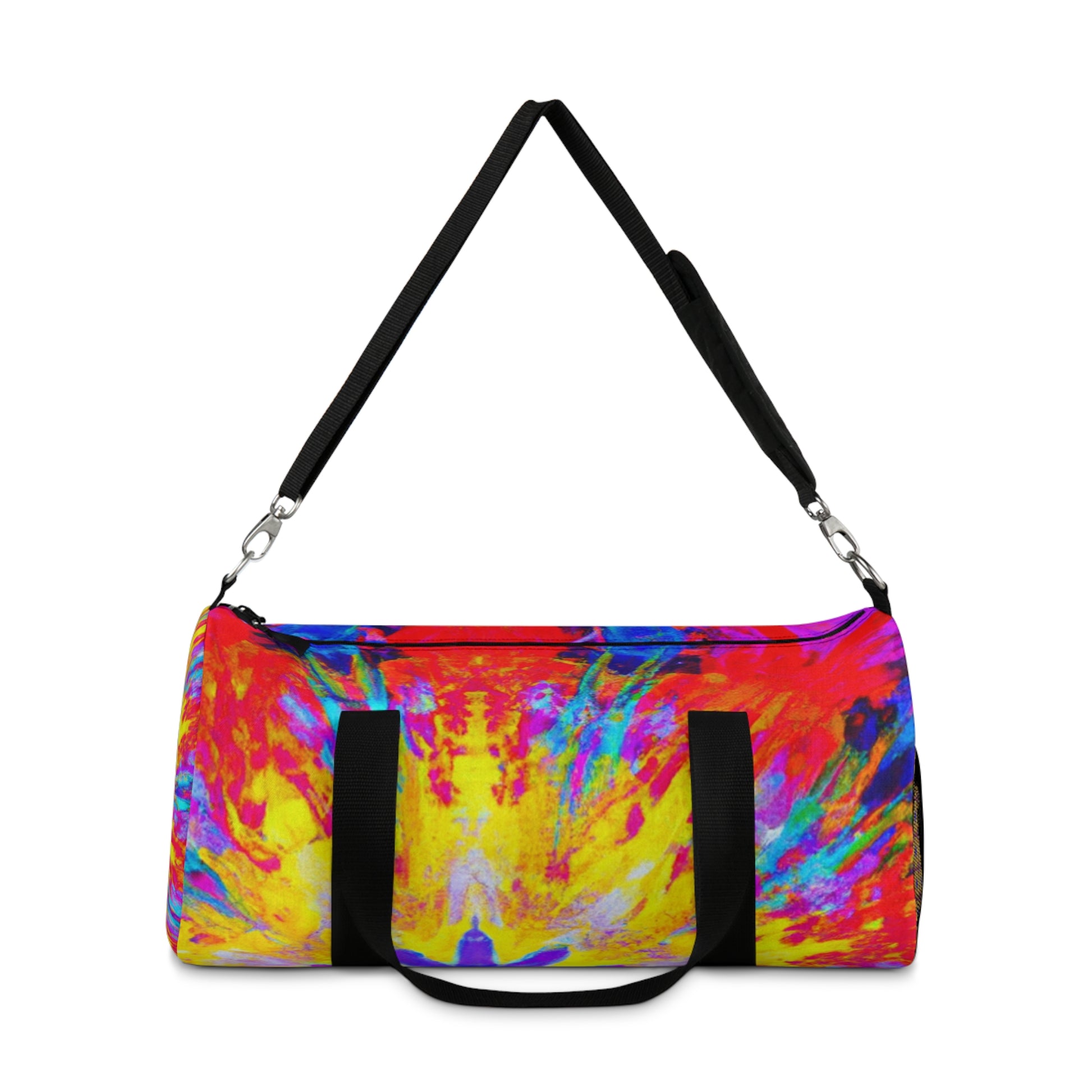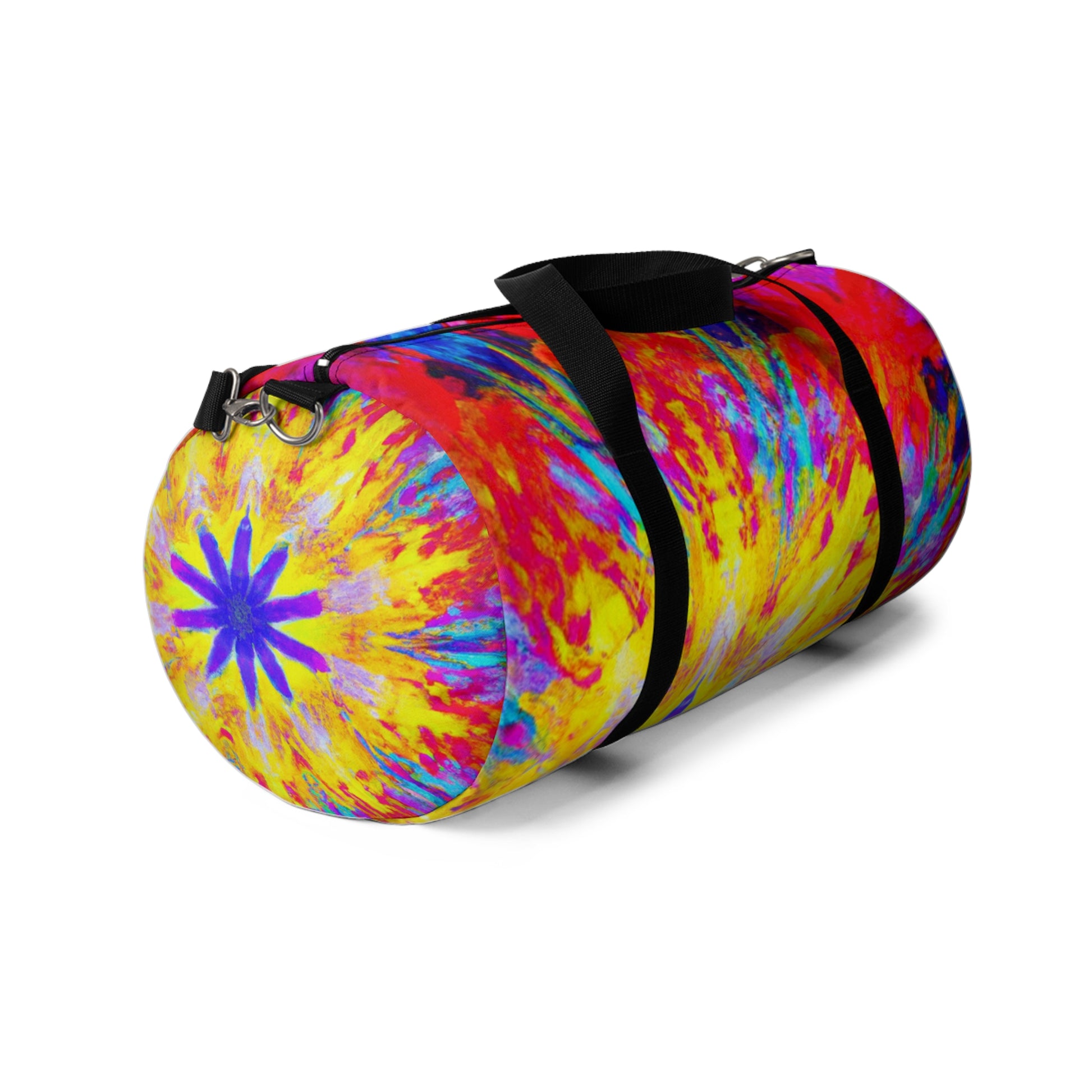 This fabulous duffle bag is one of a kind! Showcasing a vibrant mix of trippy stars, kaleidoscope patterns, abstract, digital art and 3D lines, it will definitely make a statement wherever you go! Embrace the bright colors and unique lines of this amazing accessory. #Dufflebag #TrippyStars #Kaleidoscope #Abstract #DigitalArt #VibrantColors #3DLines #UniqueDesign #Statement #BrightColors #FashionAccessory