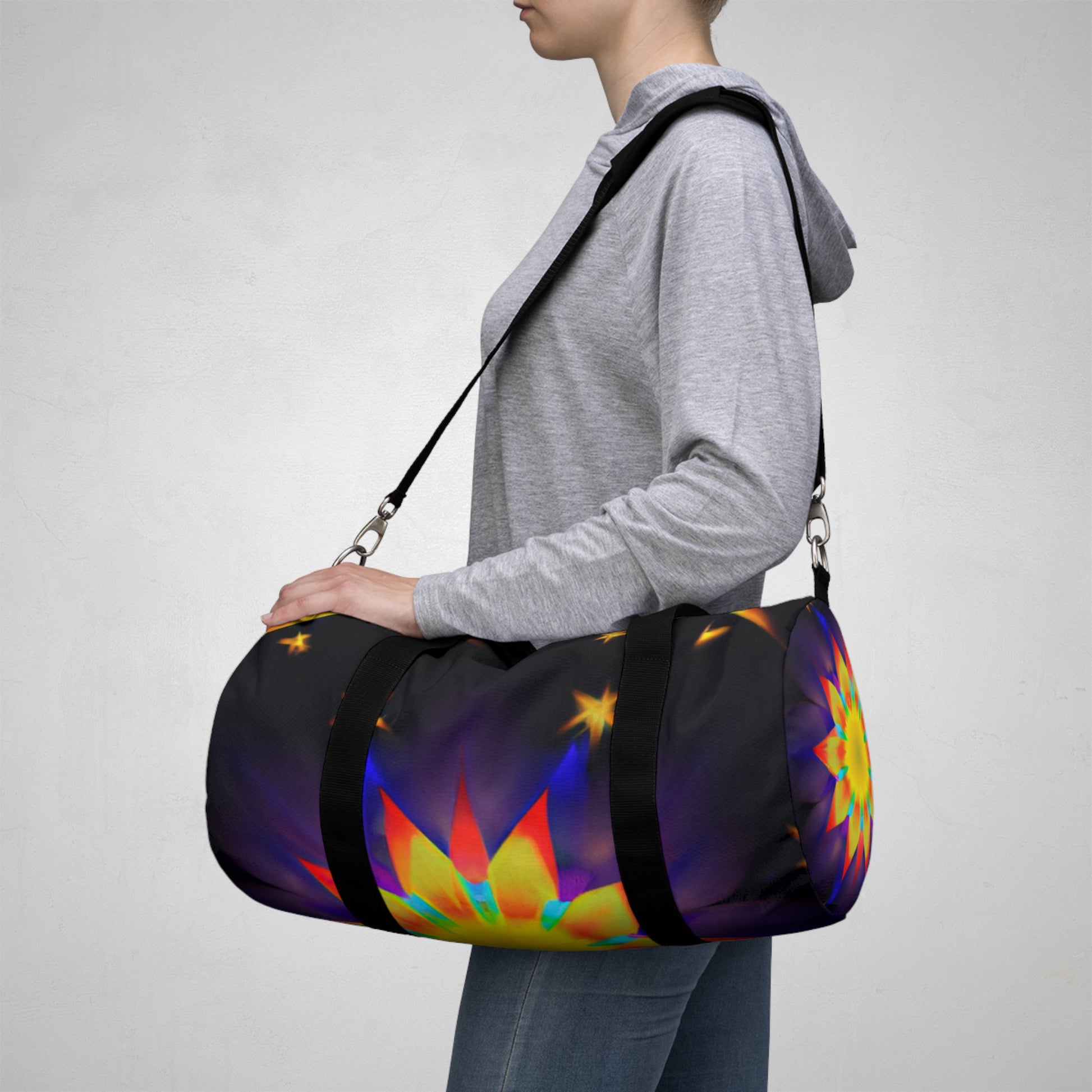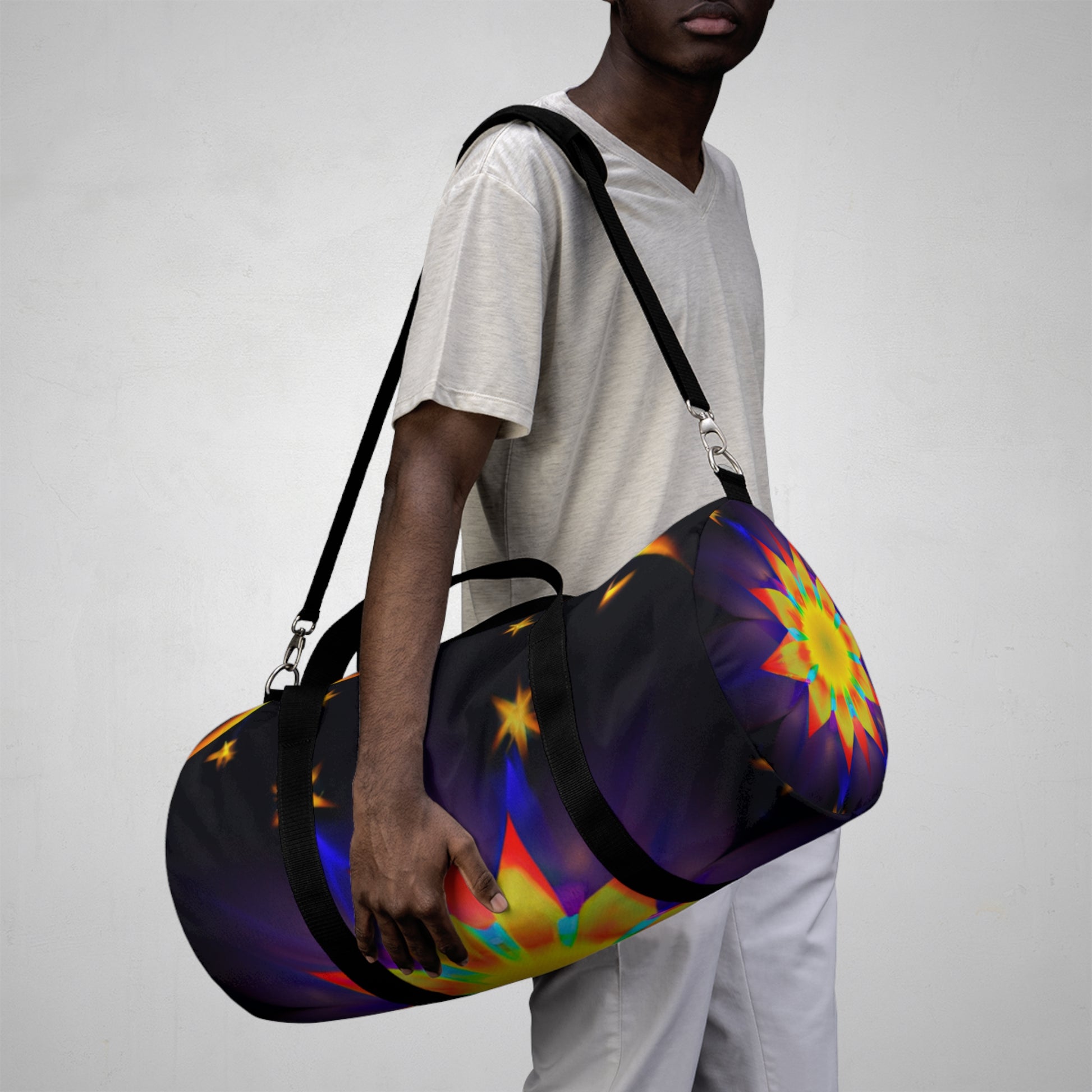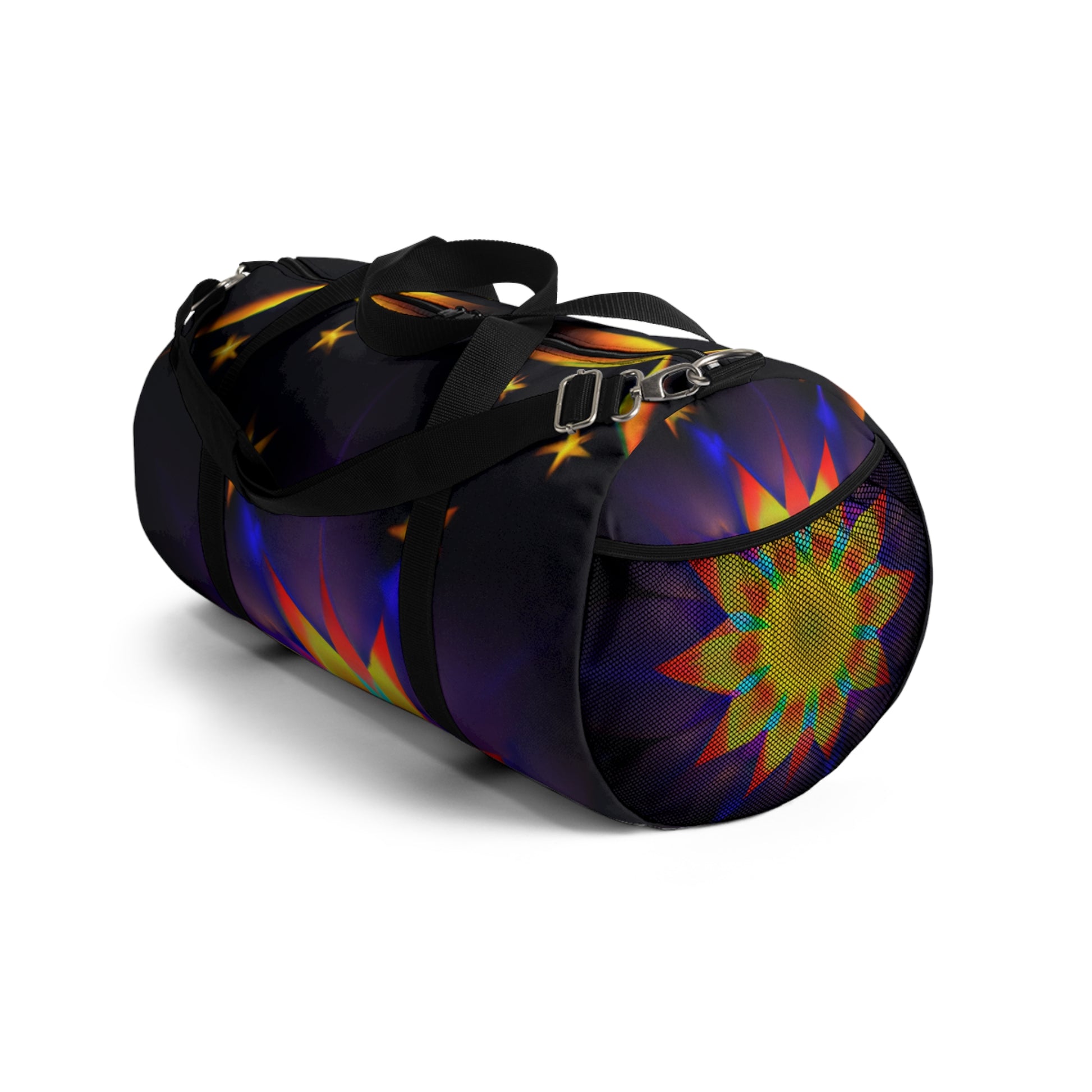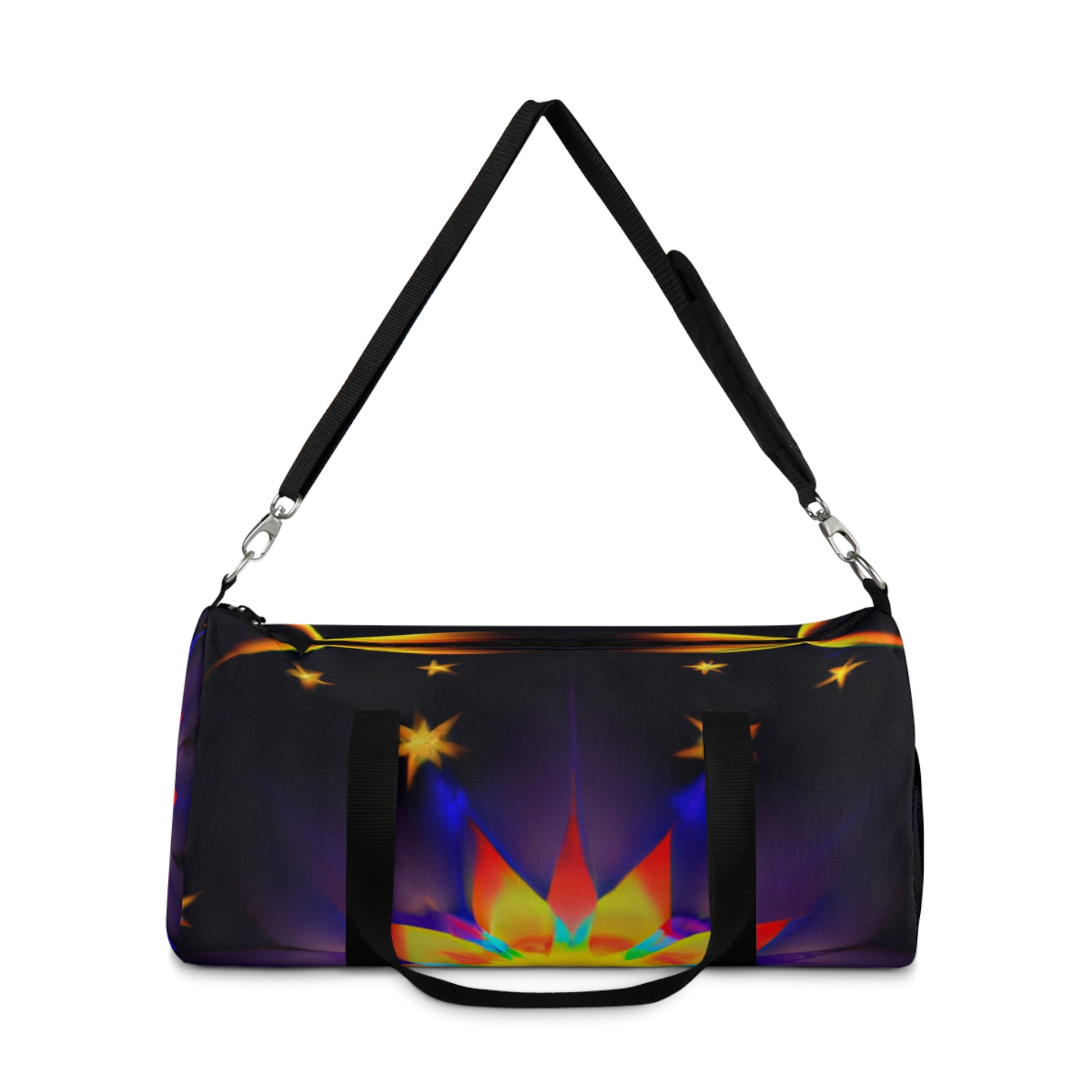 This dufflebag is vibrant, bold, and stylish! It features an eye-catching design of trippy stars, kaleidoscope, abstract, digital art, and 3D lines in vivid colors. This bag is also spacious and provides lots of storage, making it perfect for school, travel, and everyday activities. #dufflebag #trippystars #kaleidoscope #abstract #digitalart #3dlines #vividcolors #style #bags #roomy #spacious #gradeperspective #travelbag #everydaybag #cool #trendy #multipleuses #eye-catching #onpoint #fashionable #essential #sturdy #complete #functional #durable #reliable