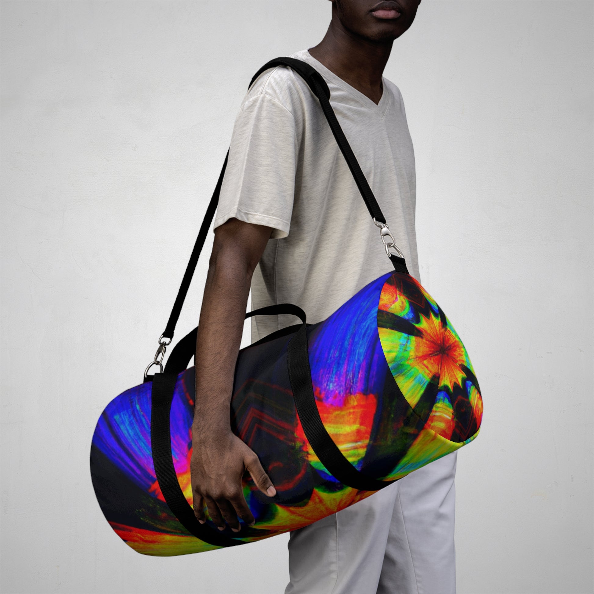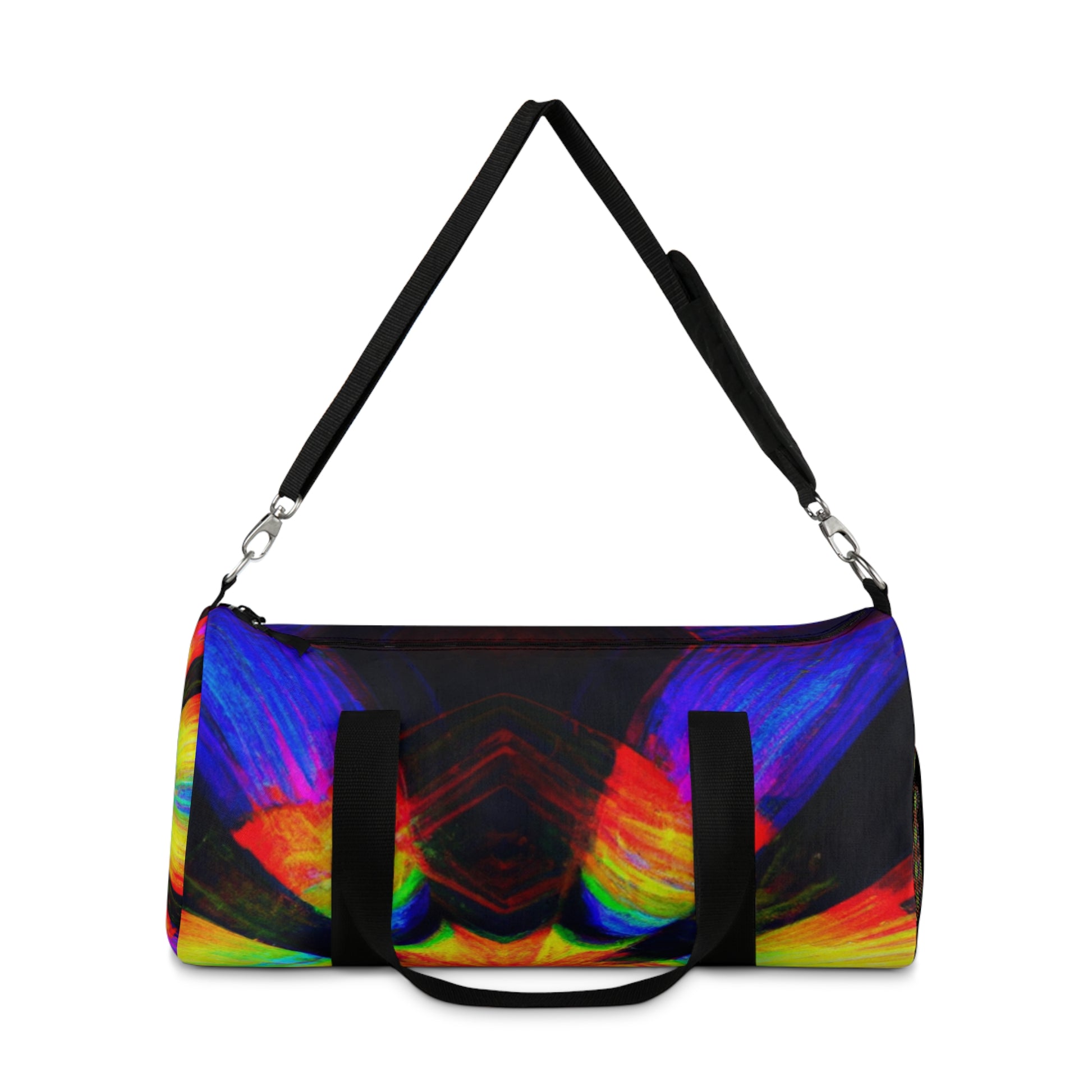This multi-colored duffle bag brings the perfect combination of chic style and fun! Its design showcases trippy stars, kaleidoscope, abstract, digital art, and eye-catching 3D lines in vibrant colors - sure to get you noticed wherever you go. The soft material provides a comfortable carrying experience so you can take your necessities on the go with ease. #Duffelbag #Kaleidoscope #Abstract #Art #Digitalart #Trippystars #Vibrantcolors #3Dlines #Style #Fashion #Functional #Comfortable #Streetstyle #Colors #Design #Glam #Multicolor #Lifeontherun #Organizer #Portable #Versatile #Graphicdesign #Bold #Vivid #Modernart #Colorful #Unique #Trendy