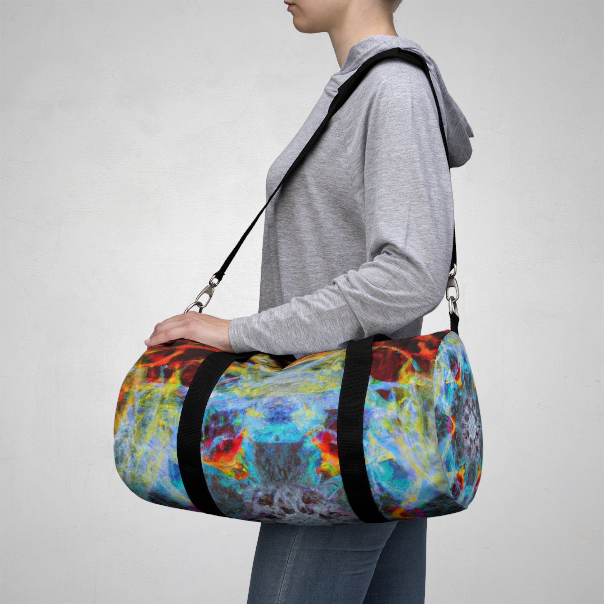 This unique bag features a vibrant and colourful abstract design, with trippy stars, kaleidoscope, digital art and 3D lines all boldly displayed. It’s standout style makes it perfect for trips and everyday use. It has plenty of space to store all your necessary items and great for making a style statement. #DigitalArt #Kaleidoscope #Vibrant #3DLines #TrippyStars #AbstractArt #AbstractDesign #Aesthetic #UniqueStyle #DuffleBag #StyleStatement #Bold #FashionForward #CoolDesign #Colorful #CarryAll #Vivid #BoldDesign #DaytoDay #GraphicDesign #Trendy #UniqueDesign #Artistic #OnTheGo #EverydayStyle #Stylish #CasualLook #TrippyVibes