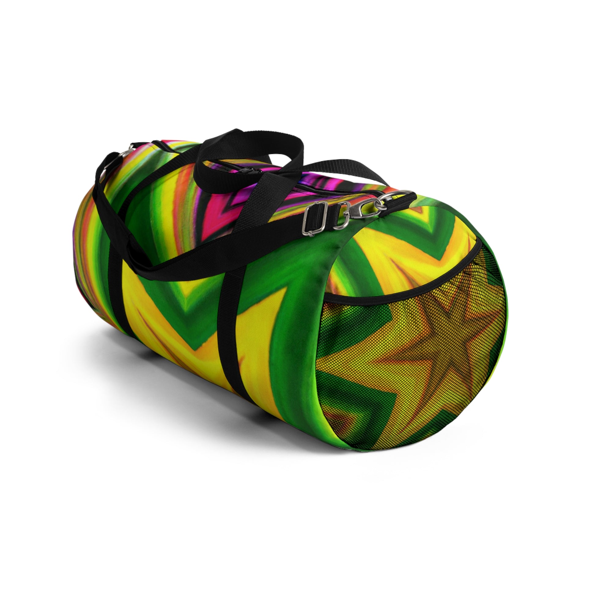 This trendy dufflebag will add a unique flair to your outfit. The design features an eye-catching blend of Trippy stars, kaleidoscope, abstract digital art, vibrant colors and 3D lines. Showcase your style and be the centre of attention with this bold bag today! #dufflebag #digitalart #3Dlines #trippystars #kaleidoscope #vibrantcolors #abstract #bag #fashion #style #unique #eye-catching #bold #attention #outfit #center #trendy #colorful #mix #durable #quality #on-trend #swag #accessorize #statement #flair #and #mixitup