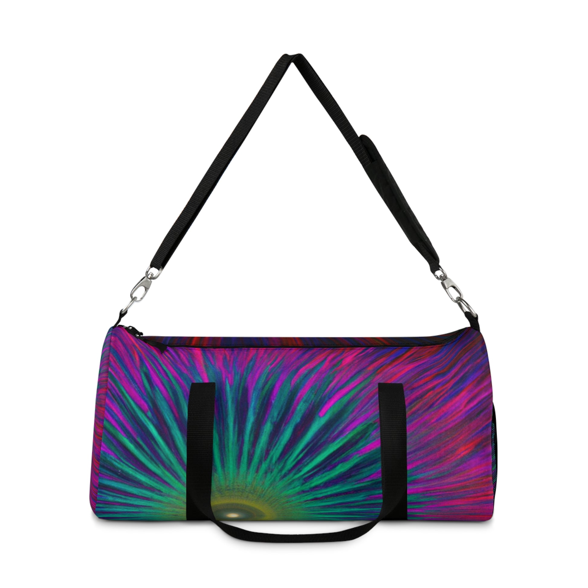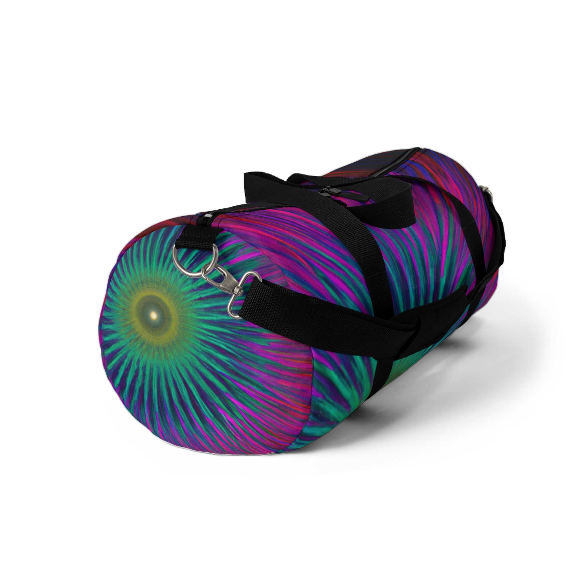 This dufflebag is sure to turn heads with its eye-catching design! Features include trippy stars, kaleidoscope, abstract, digital art, vibrant colors, and 3D lines that all come together to create a unique and exciting look. With its water-resistant exterior and adjustable shoulder strap, you can keep your stuff organized and secure wherever you go! #dufflebag #style #trendy #bag #kaleidoscope #stars #abstract #digitalart #3Dlines #vibrantcolors #ukmade #waterresistant #shoulderstrap #unique #travelbag #weekender #carryall #fashionista #personaltouch #explore #adventure #styleconscious #fun #stylish #instastyle #wanderlust #travelinstyle #musthave #bagstyle