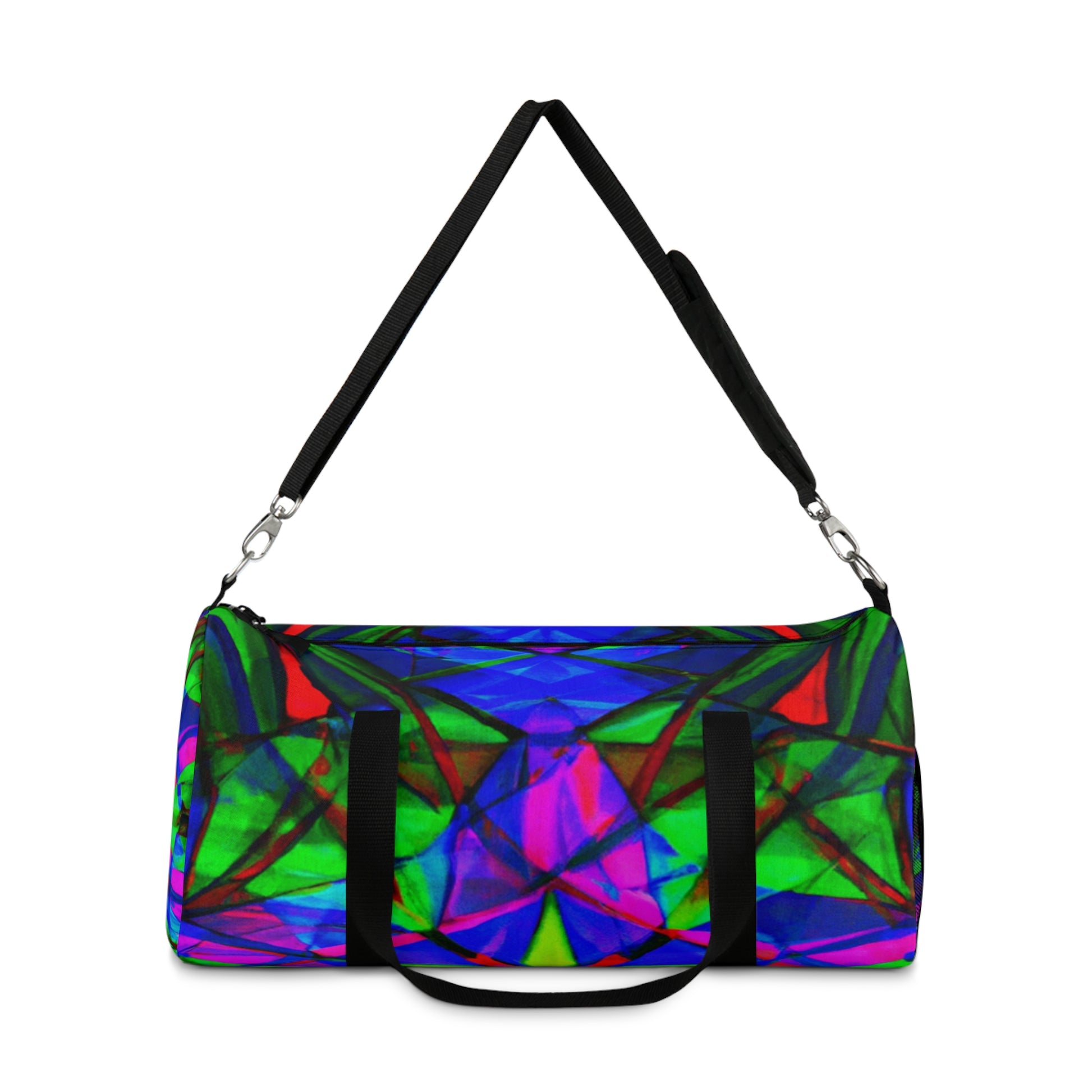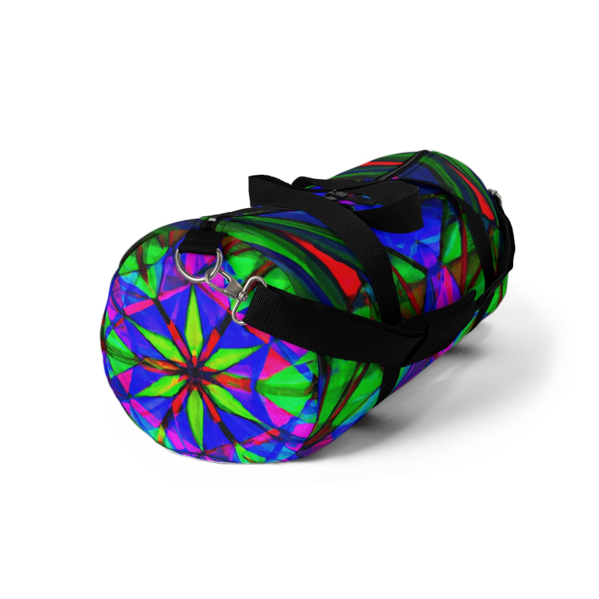 This dufflebag features a one-of-a-kind design that will stand out from the rest! It showcases trippy stars, kaleidoscope, abstract, digital art, vibrant colors, and 3D lines designs for the perfect 3D look. It has plenty of storage space to store your items in style and comfort! #dufflebag #style #comfort #3D #trippy #vibrant #abstractart #digitalart #kaleidoscope #stars #lines