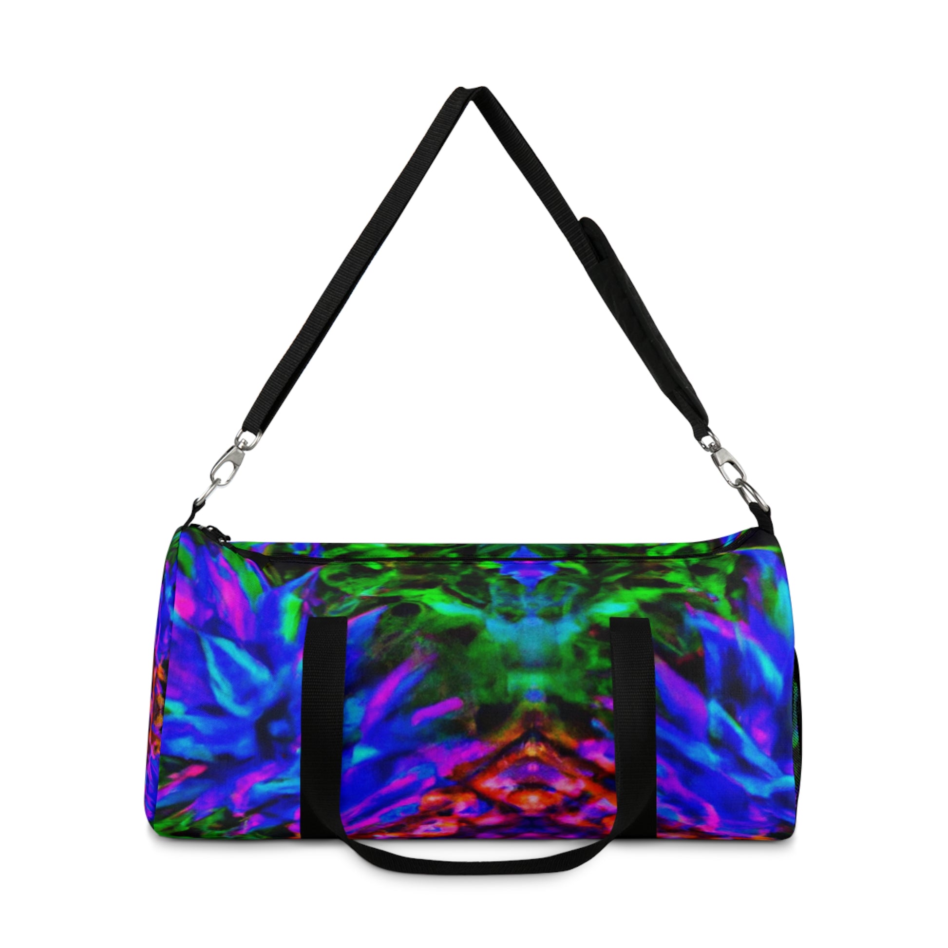 Pick up this one-of-a-kind dufflebag made with trippy pineapple, kaleidoscope, abstract, digital and neon art designs. With its bright, vibrant color combination and HD print, you can show off your unique and creative style. Stand out from the crowd with this unique bag! #neoncolors #trippy #abstract #digitalart #pineapple #neon #style #standout #unique #creative #kaleidoscope #dufflebag #carryall #vibrant #hd #style #fashion #flair #travel bag #trending #classy #eye-catching #passion #stylish #artistic #art