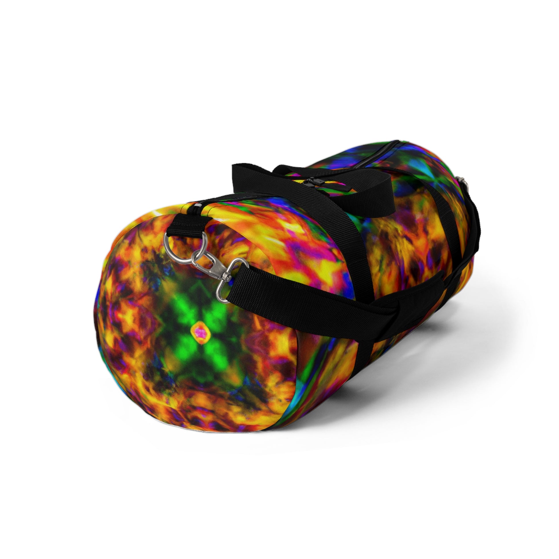 This trendy duffle bag is sure to make a statement! Its bright neon colors, abstract digital art, and trippy pineapple, kaleidoscope, and abstract designs will really stand out. The HD designs make it perfect for a day trip! #dufflebag #neoncolors #trippy #pineapple #kaleidoscope #abstract #digitalart #HD #bag #statementpiece #hdprint #brightcolors #fashionable #style #trendy #unique #neonhues #kaleidoscopeart #absractdesigns #tripstyle #daytrip #HDprinting #uniquestyle #styleup #colorfulbag #cottonbag #onlineshopping #neondesigns