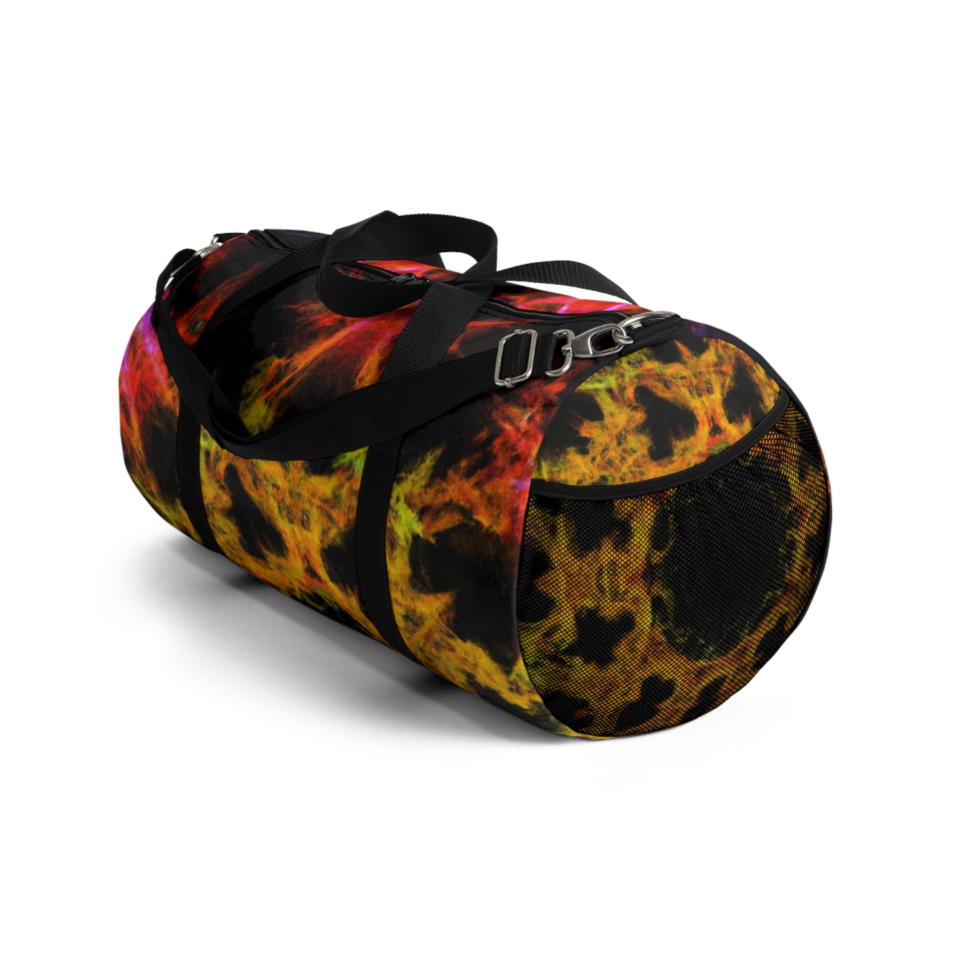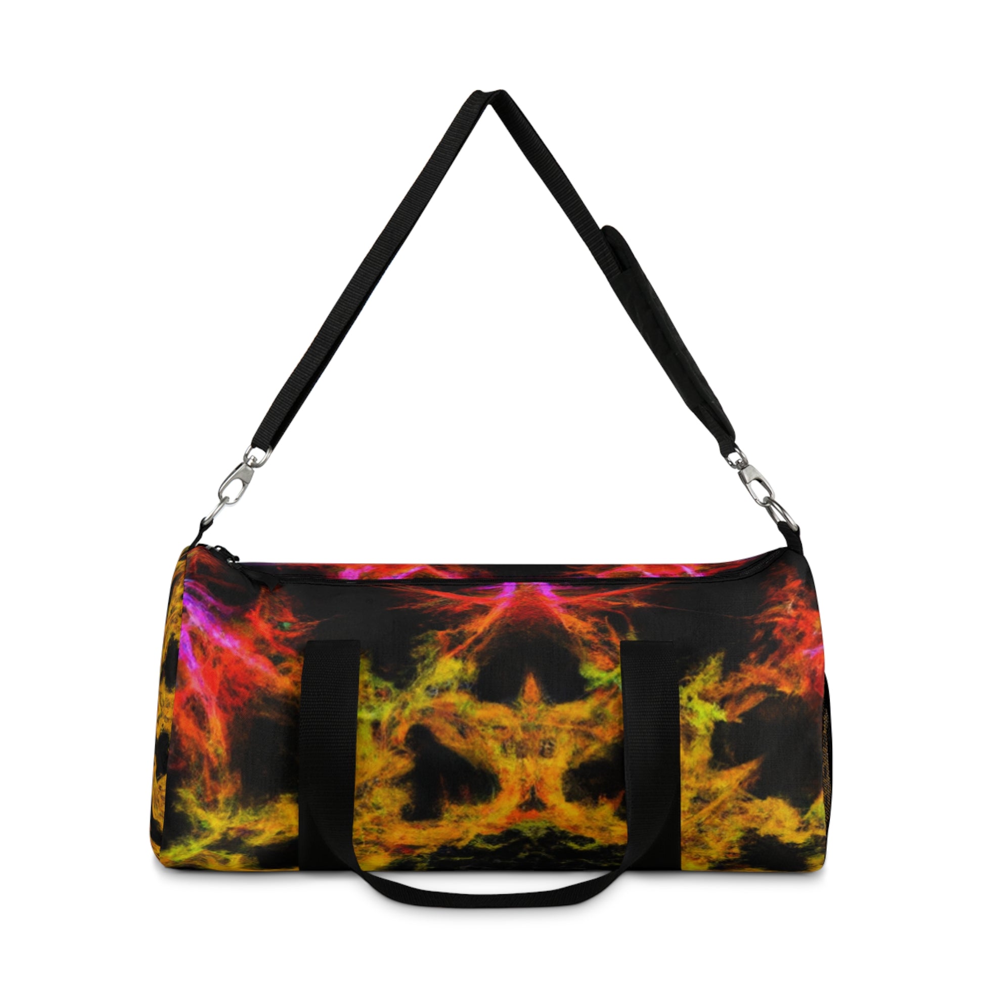 This duffle bag is designed to stand out in any crowd! Boasting a vibrant cloth printed with vibrant colors and wild surrealist art designs, this bag has a 3D texture and bright stars, kaleidoscopes, abstract, digital art, and 3D lines. It's perfect for any occasion and adds a touch of fun to any outfit. #dufflebag #stars #kaleidoscope #abstract #digital #vibrant #colors #3dlines #travelbag #onthergo #surrealism #neon #unique #streetstyle #fun #outstanding #eyecatching #showstopper #styleitup #festivalstyle #dontforgetyourbag #travelinstyle #boldlook #statementpiece #functionalbag #beoriginal #trippystyle
